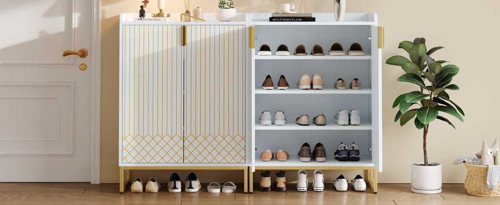Shoe Cabinets, Modern Storage with Gold Legs & Doors, White