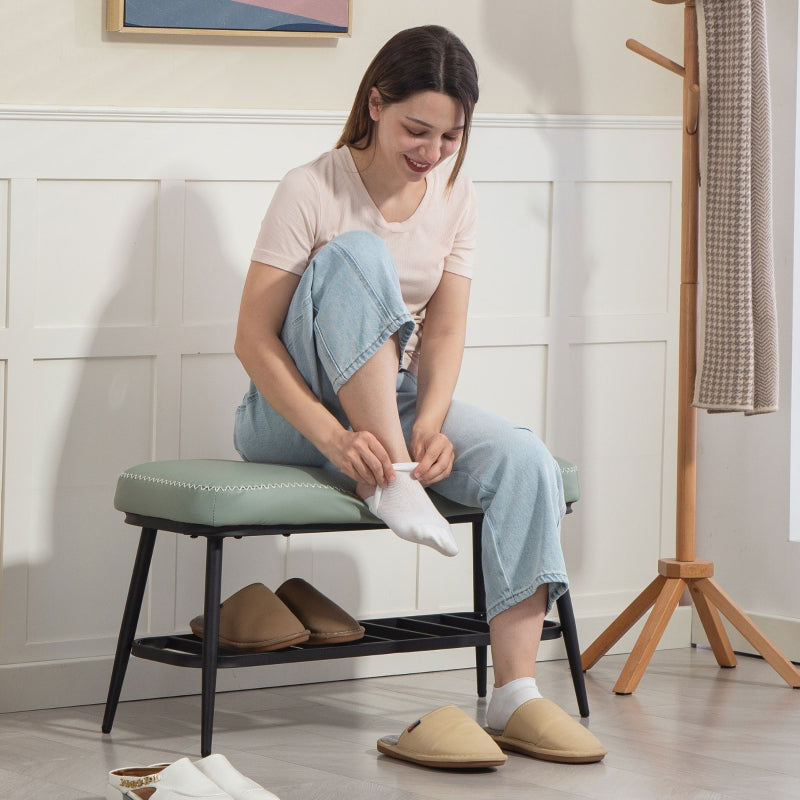 Enhance your home with the modern touch of this green PU leather shoe bench, designed to blend effortlessly with any home decor.