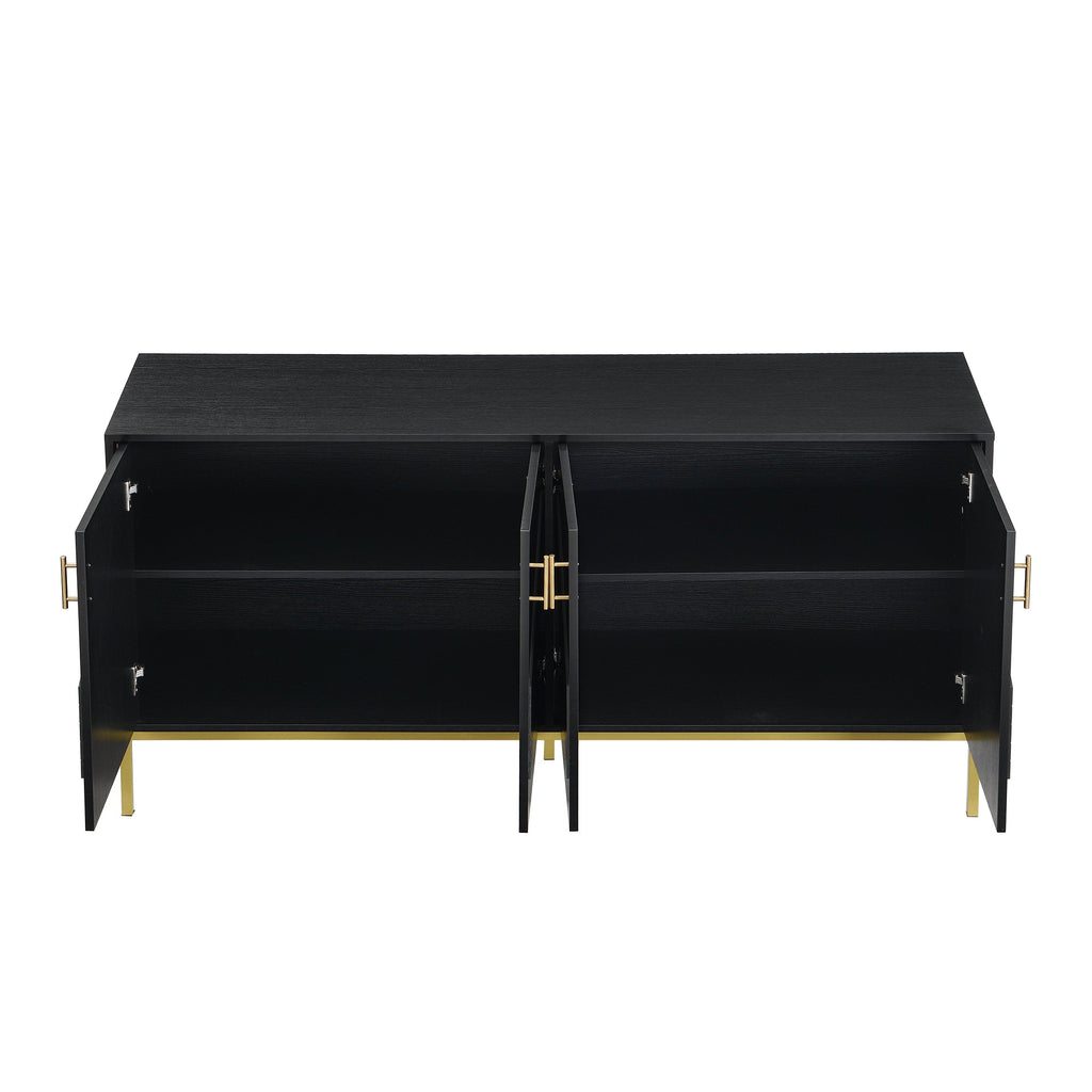 Sideboard, 4-Door Modern Large Capacity with Adjustable Shelves, Black and Gold MDF