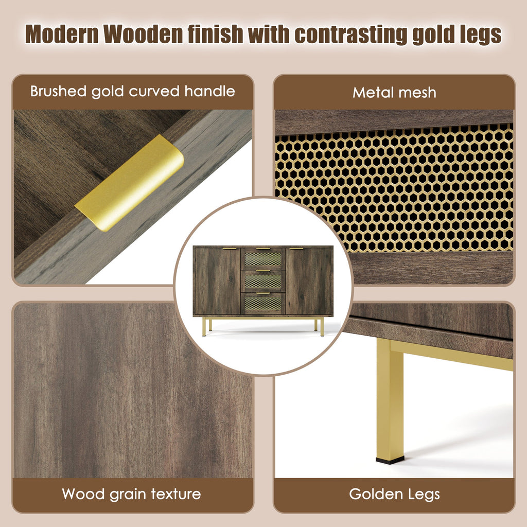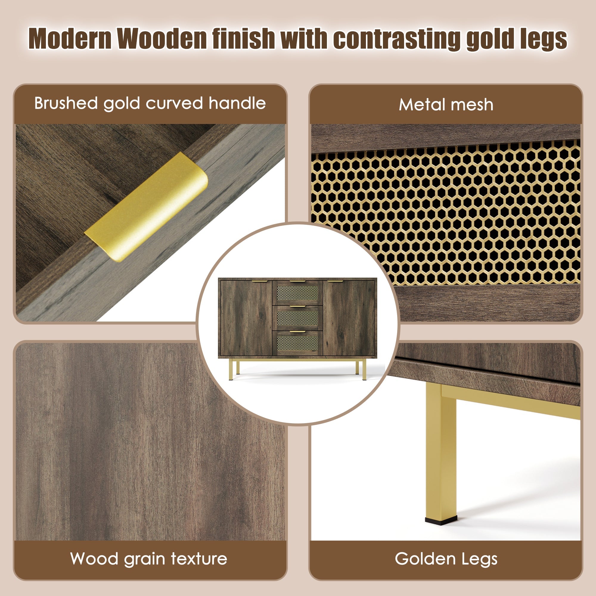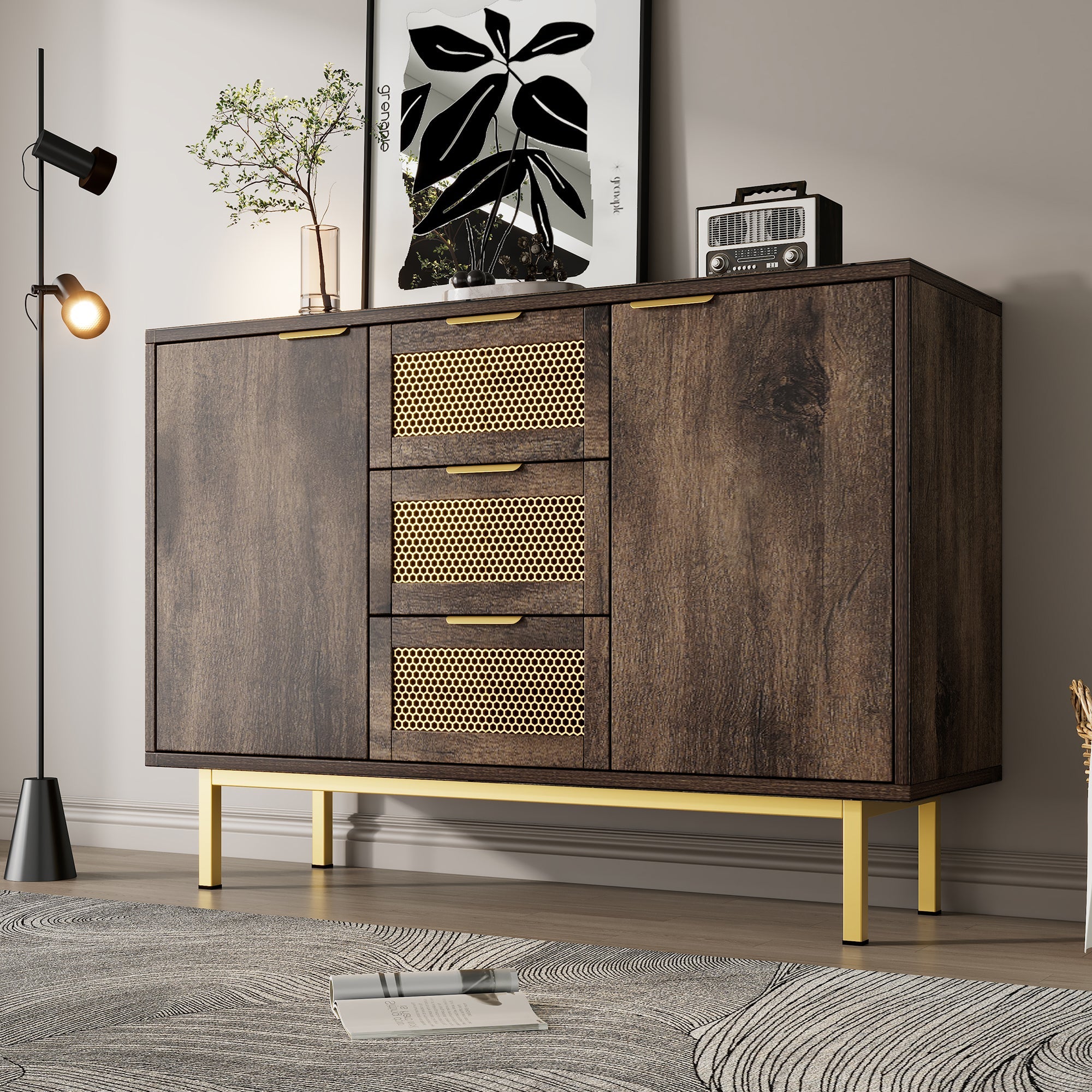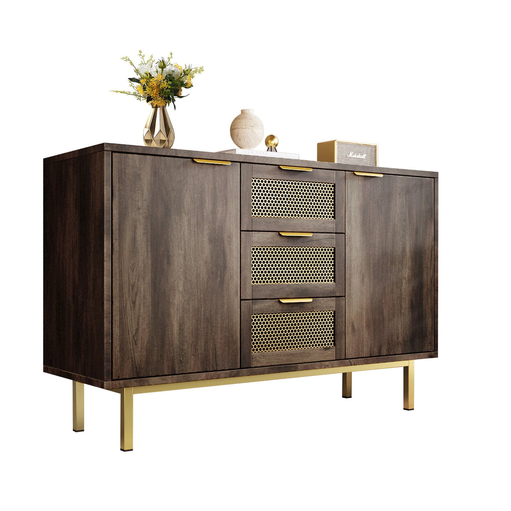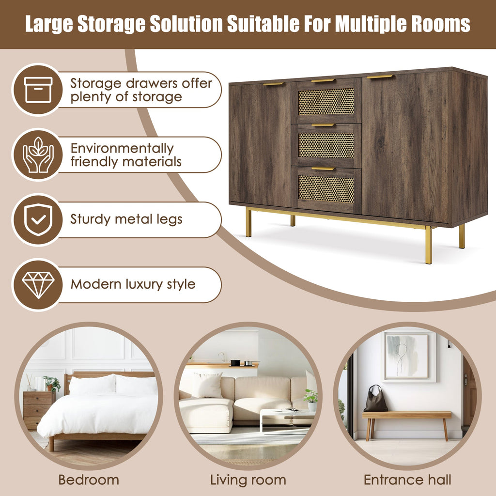 Sideboard Cabinet Dresser with 3 Drawers and 2 Doors, Multipurpose, Dark Brown