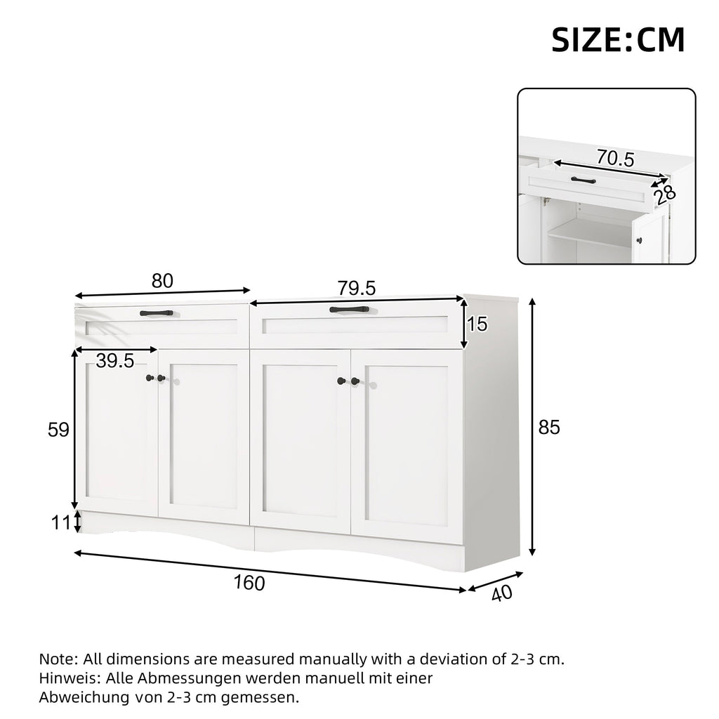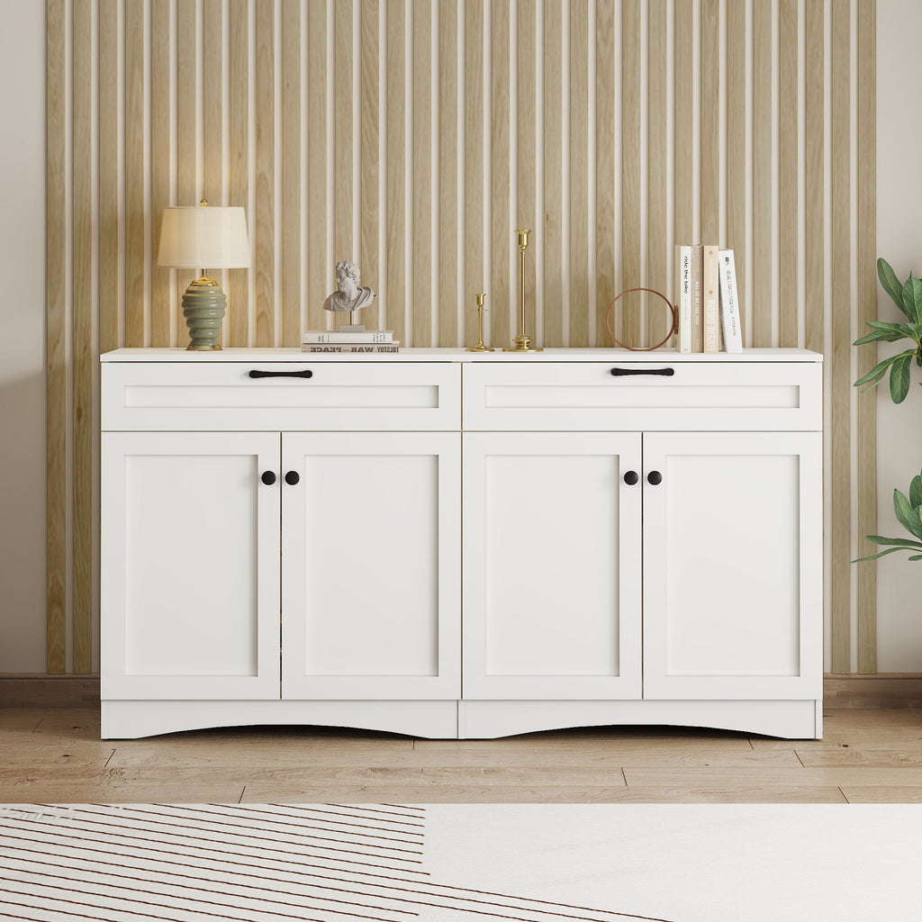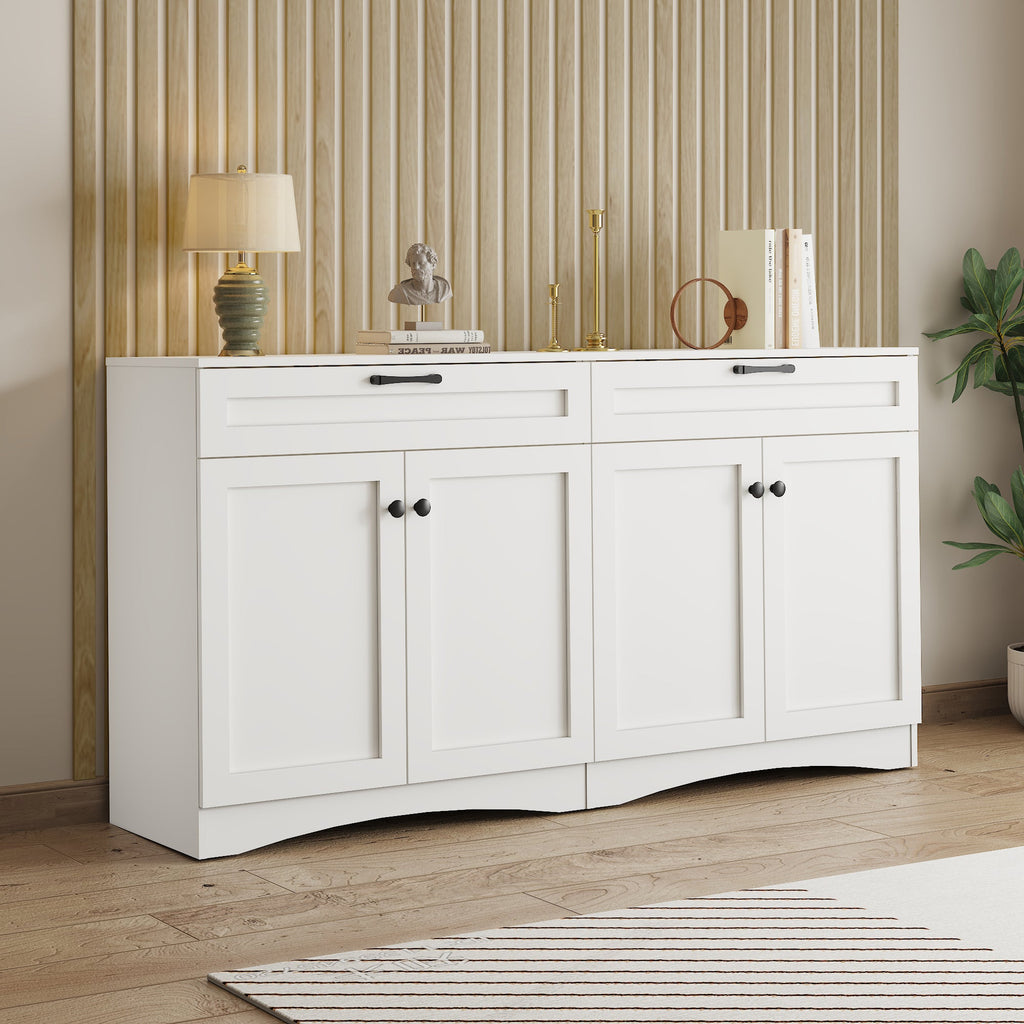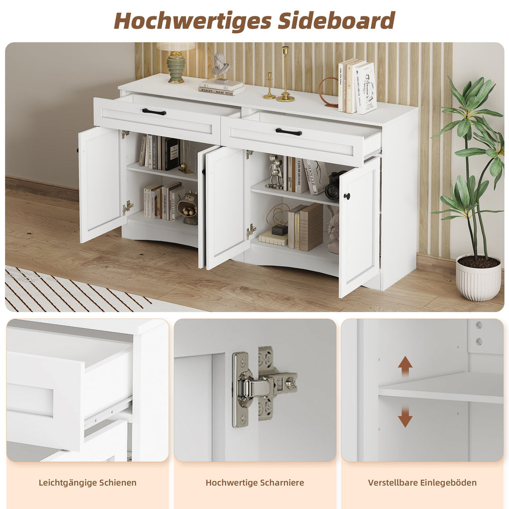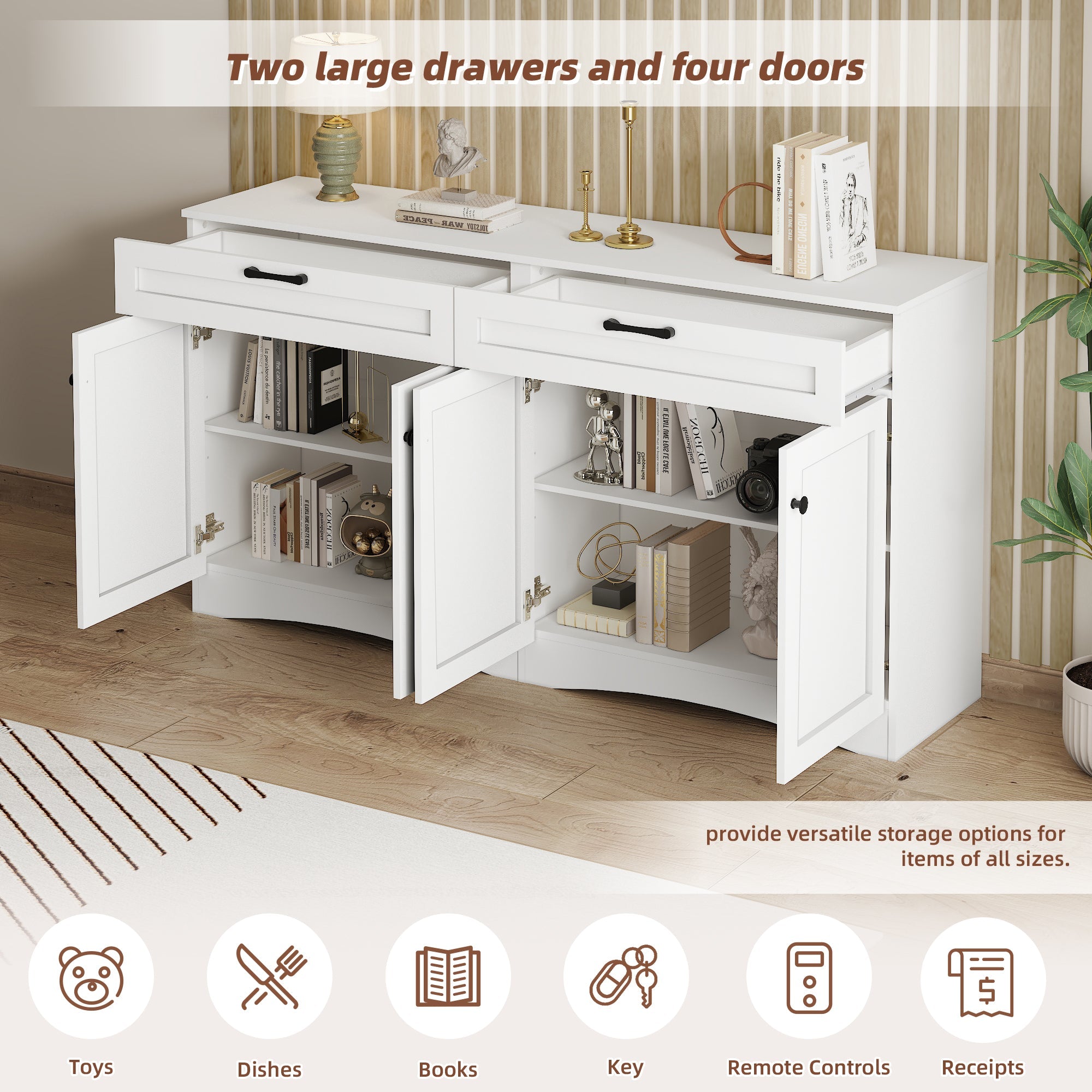 Sideboard, Living Room 2-Drawer with 7 Storage, White