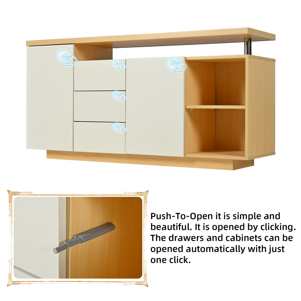 Easy Access: The 2 doors and 3 drawers open easily with a push-button mechanism.
