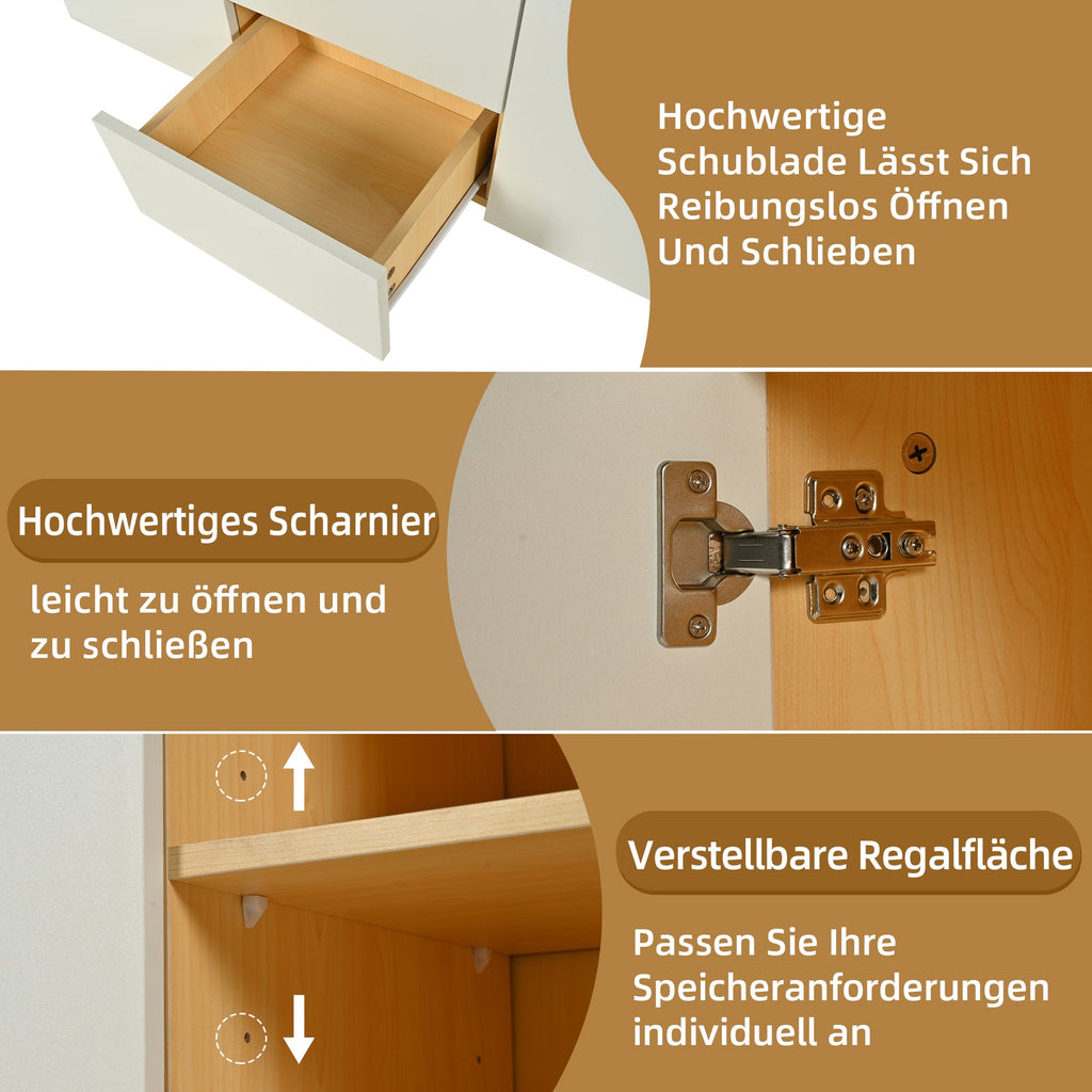 Versatile Storage: 2 cabinet doors, 3 drawers, and 2 open compartments offer ample storage space.