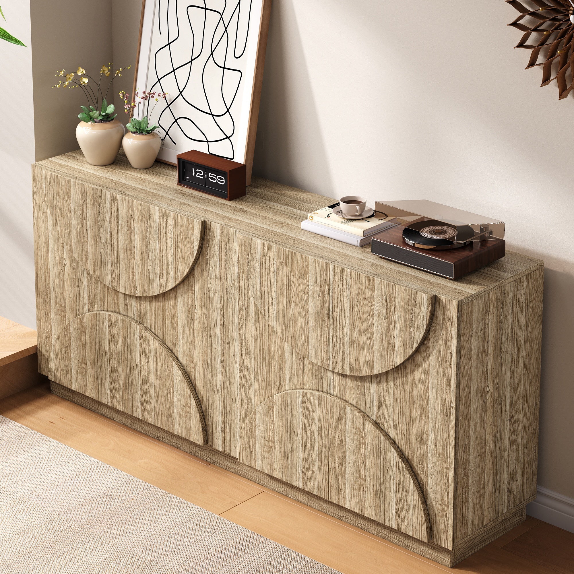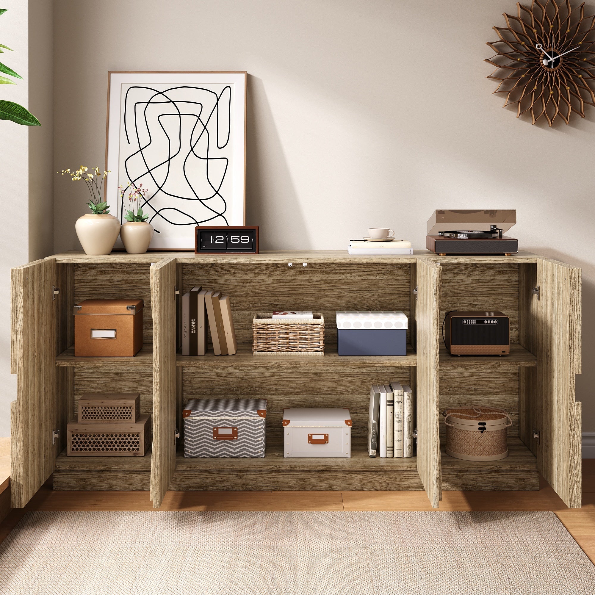 Sideboard with Shelves, Rebounder, Natural Wood