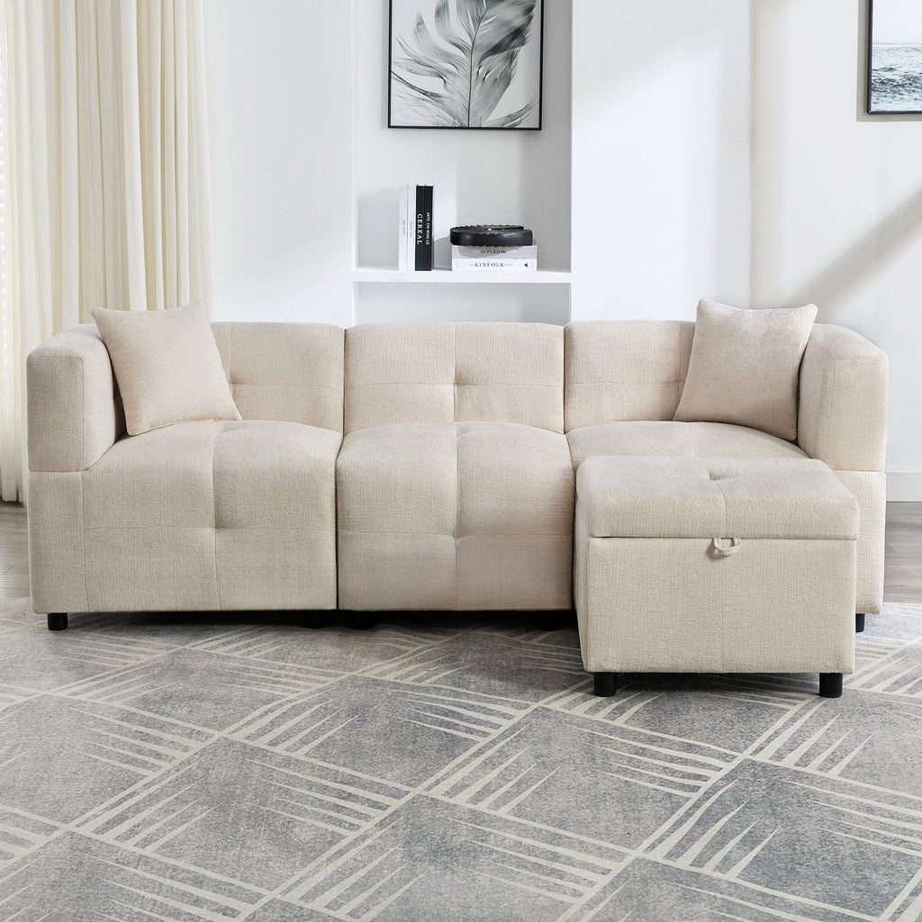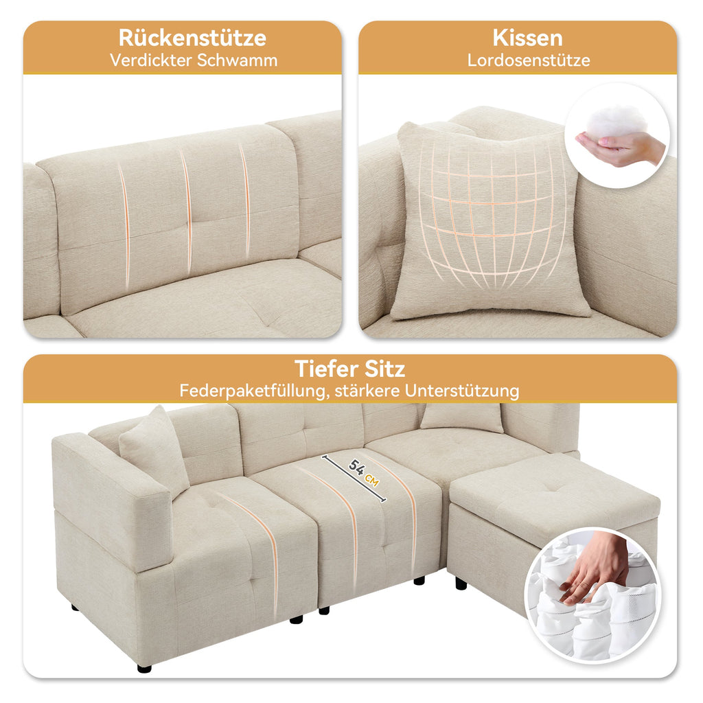 Sofa, 3-Seater L-Shaped Corner with Storage & Removable Footstool, 2 Cushions