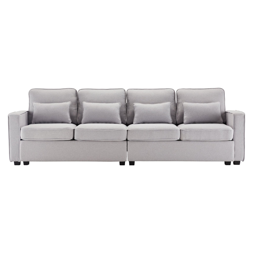 Sofa, 4-Seater with Armrest Pockets & 4 Pillows, Linen Fabric
