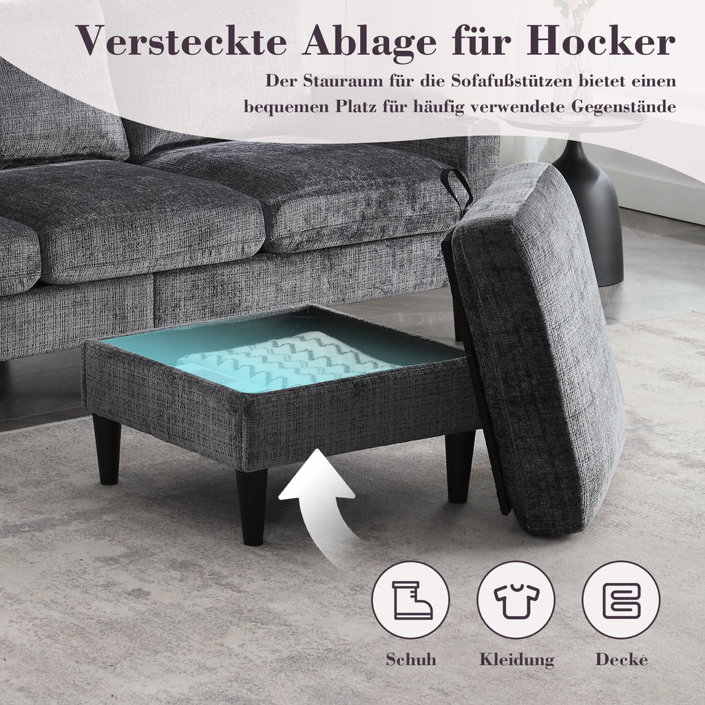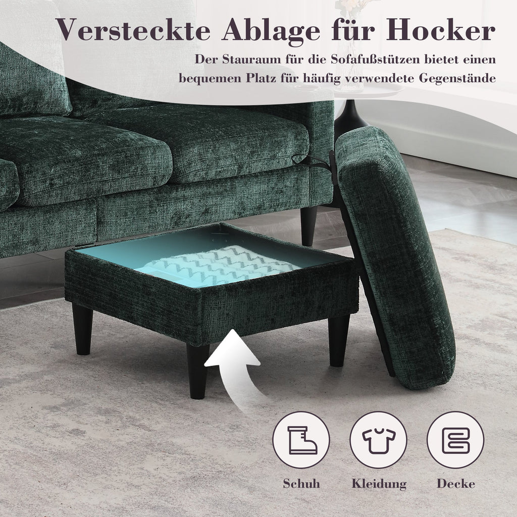 Sofa, 4-Seater with Footstool & Storage, Velvet