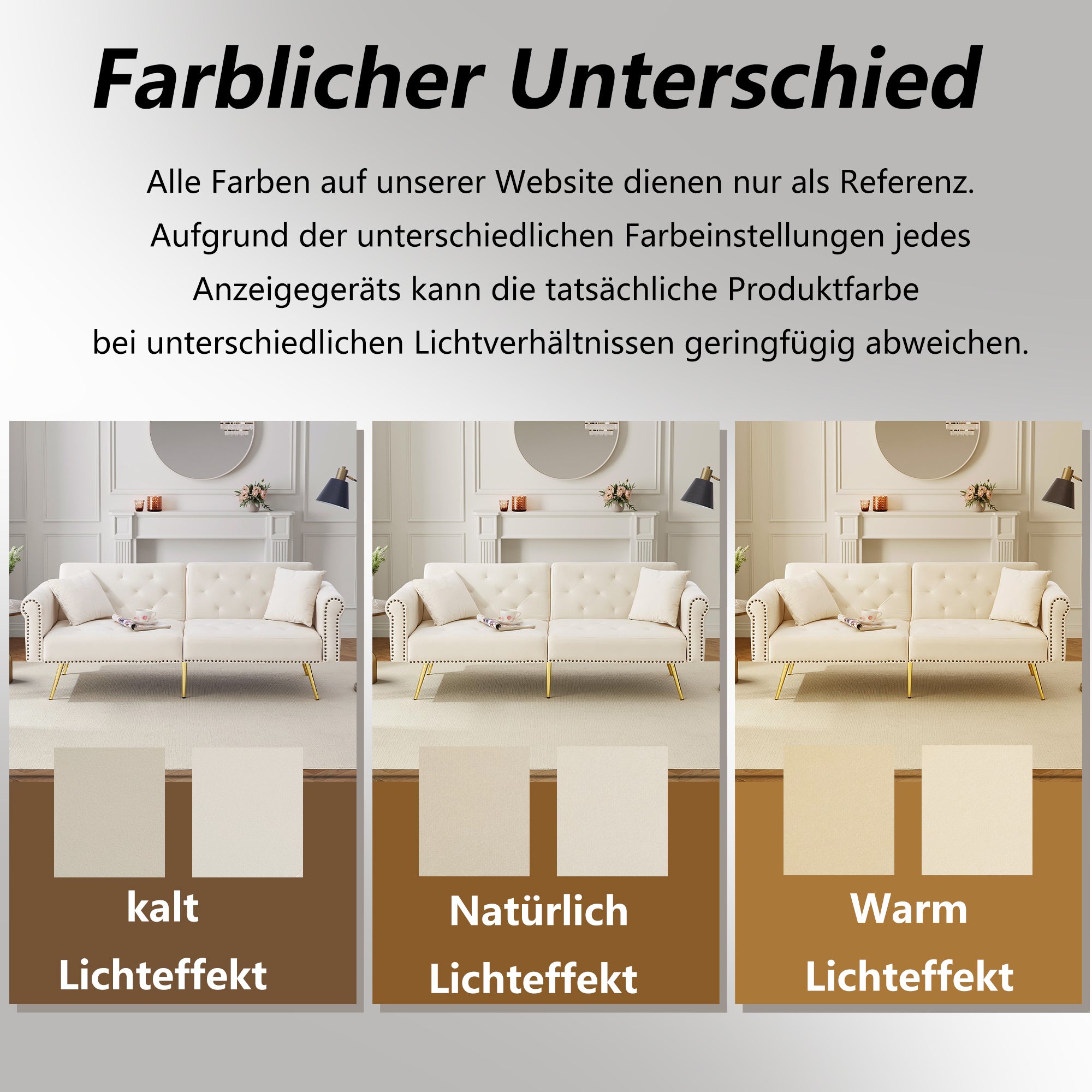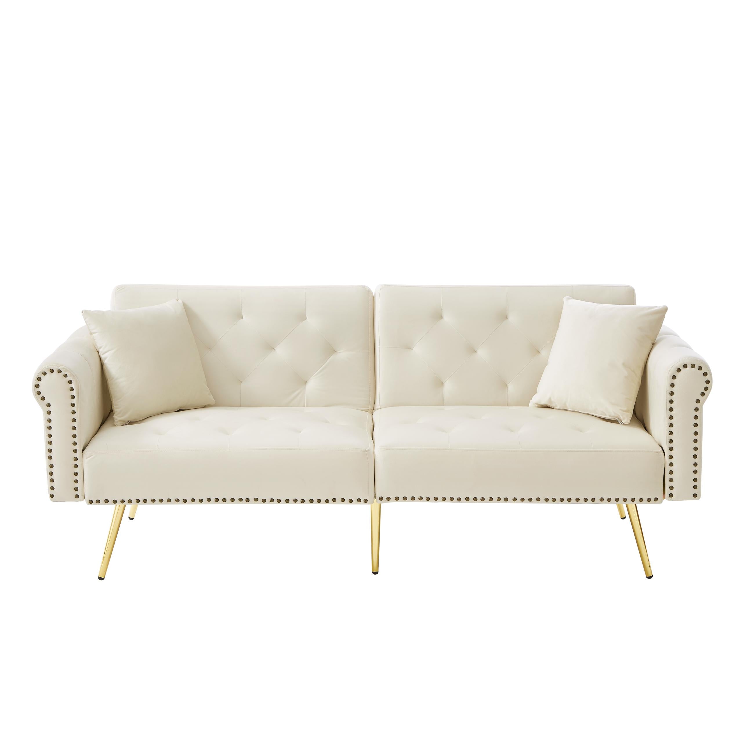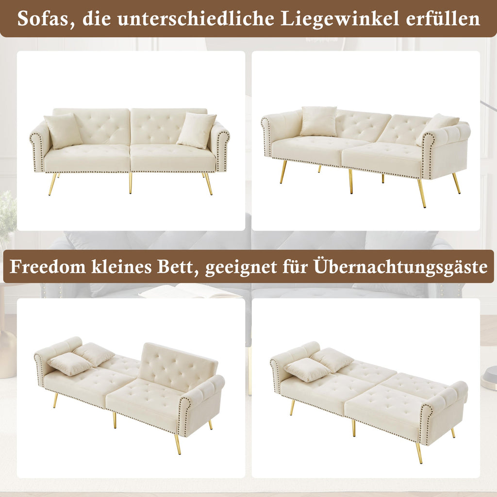 Sofa Bed, 2-Seater Modern with 3-Level Adjustable Backrest & Gold-Plated Metal Feet, Velvet