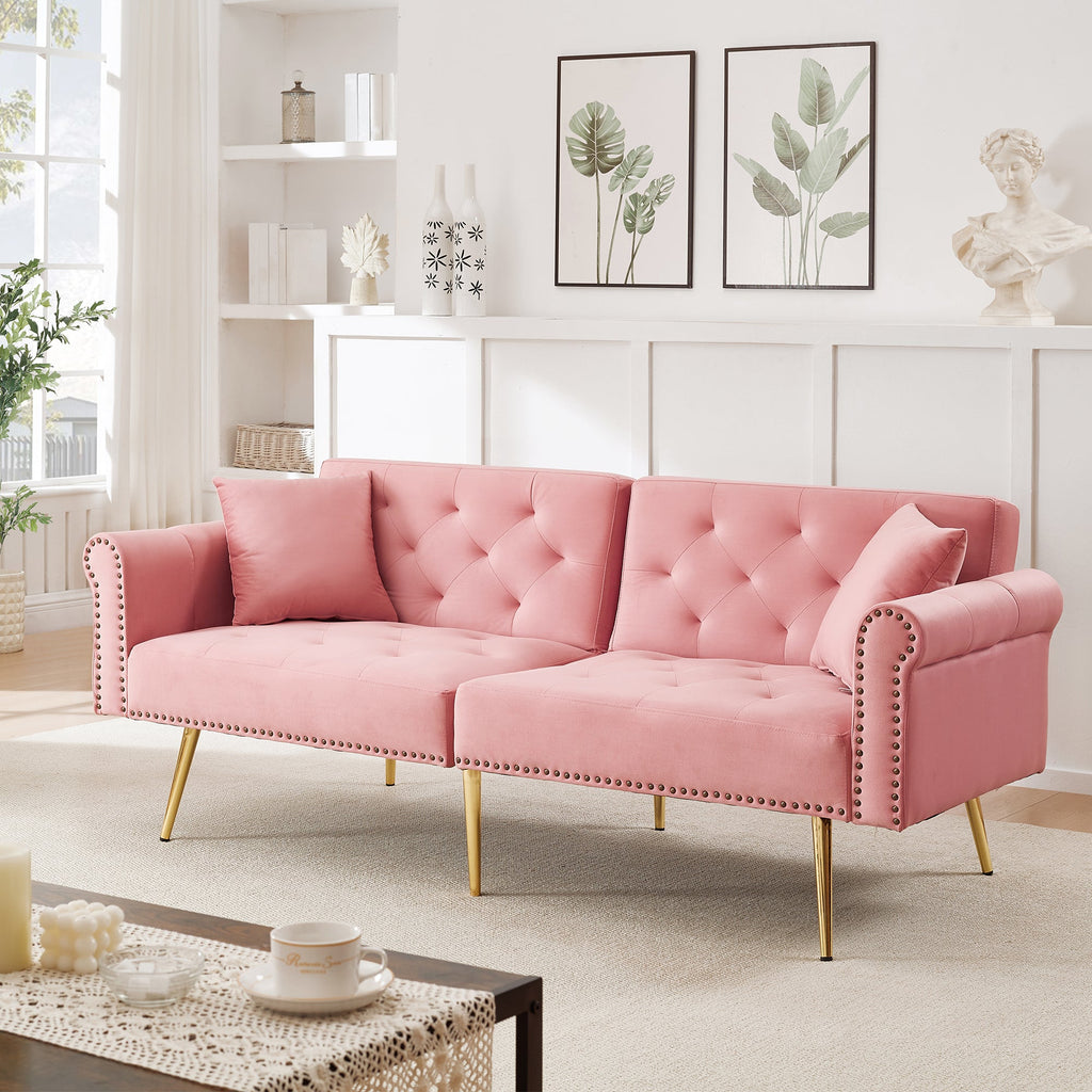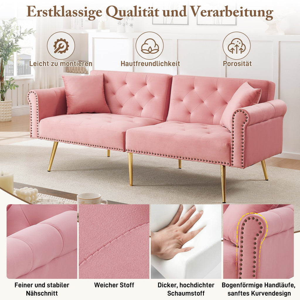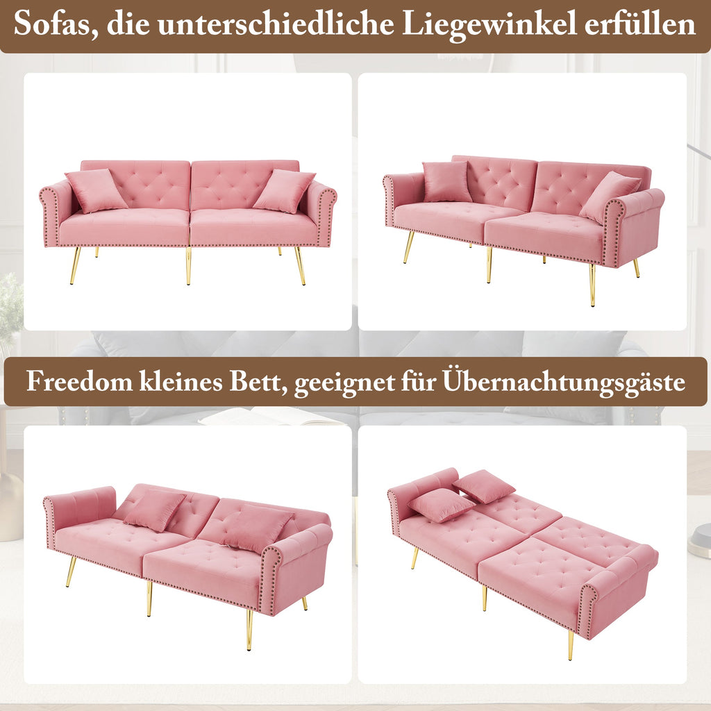 Sofa Bed, 2-Seater with 3-Level Adjustable Backrest & Gold-Plated Metal Feet, Velvet
