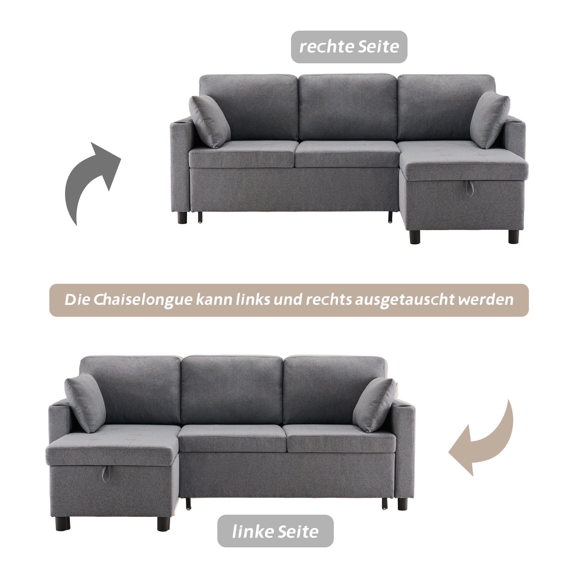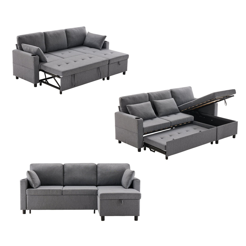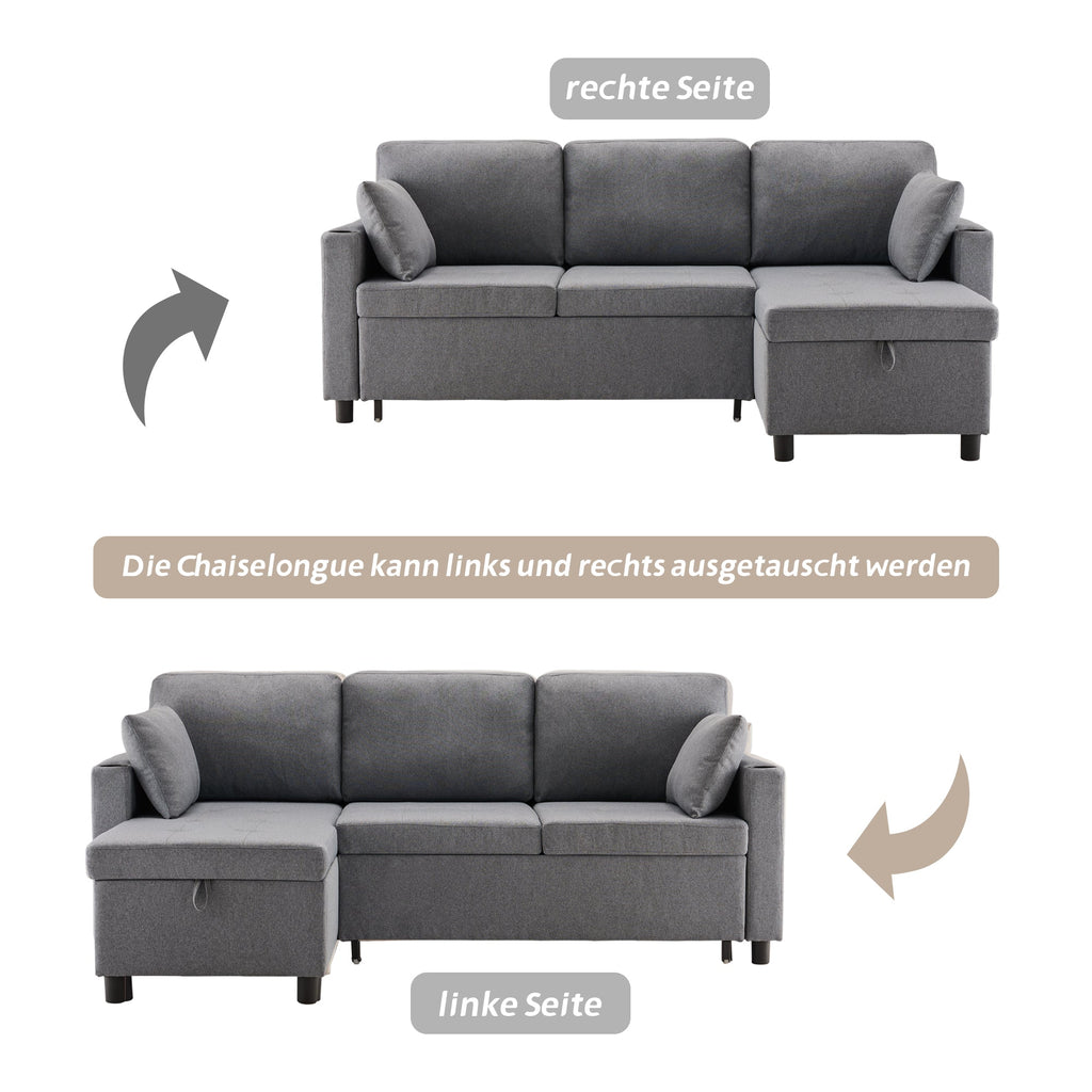 Sofa Bed L-Shaped Corner Sofa 3 Seater Pull Out with Storage, Grey
