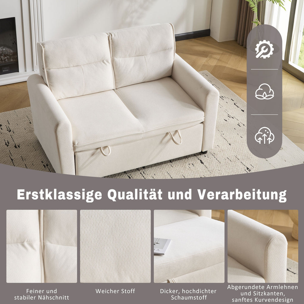 Sofa Bed, Modern 2-Seater Foldable with Pull-Out & Adjustable Backrest