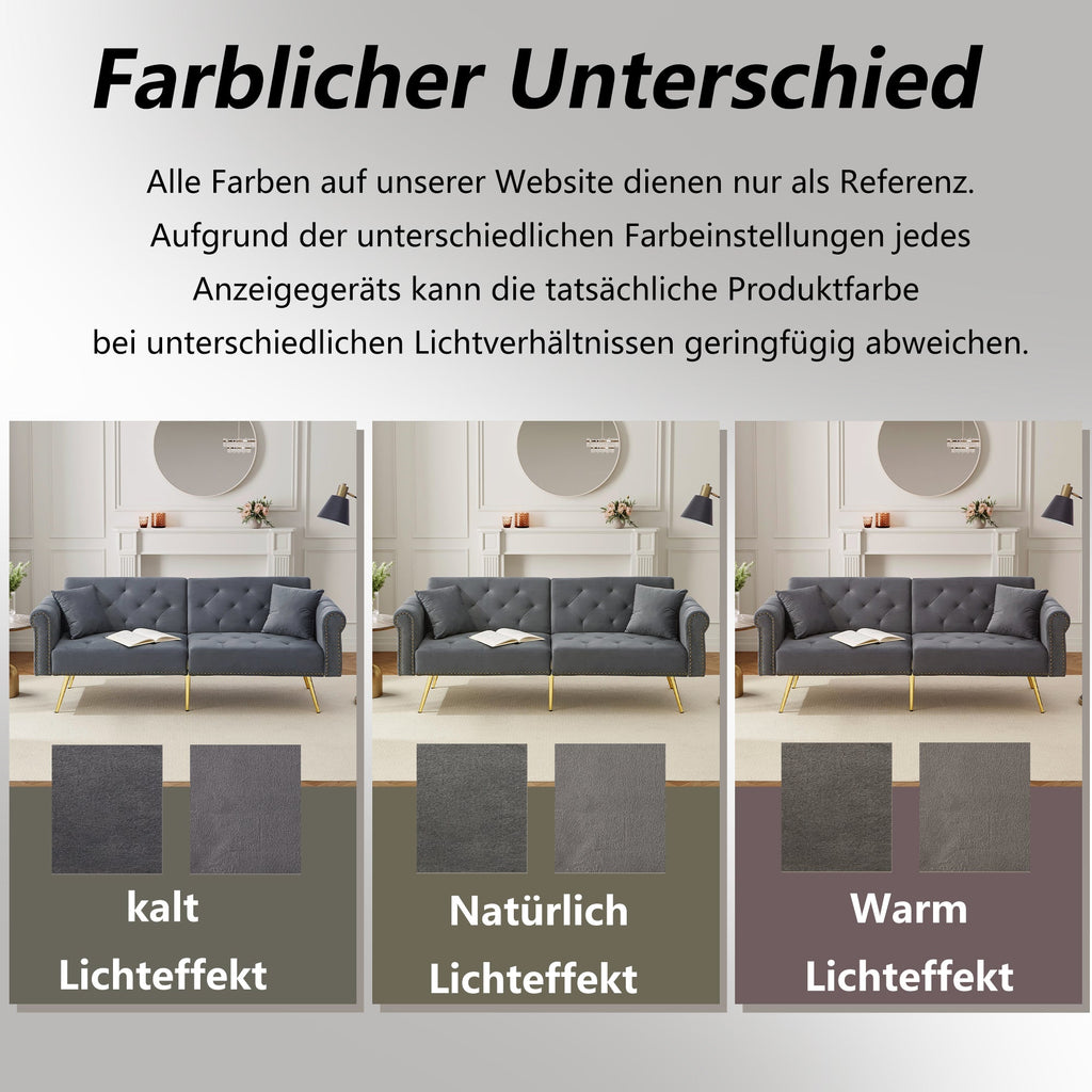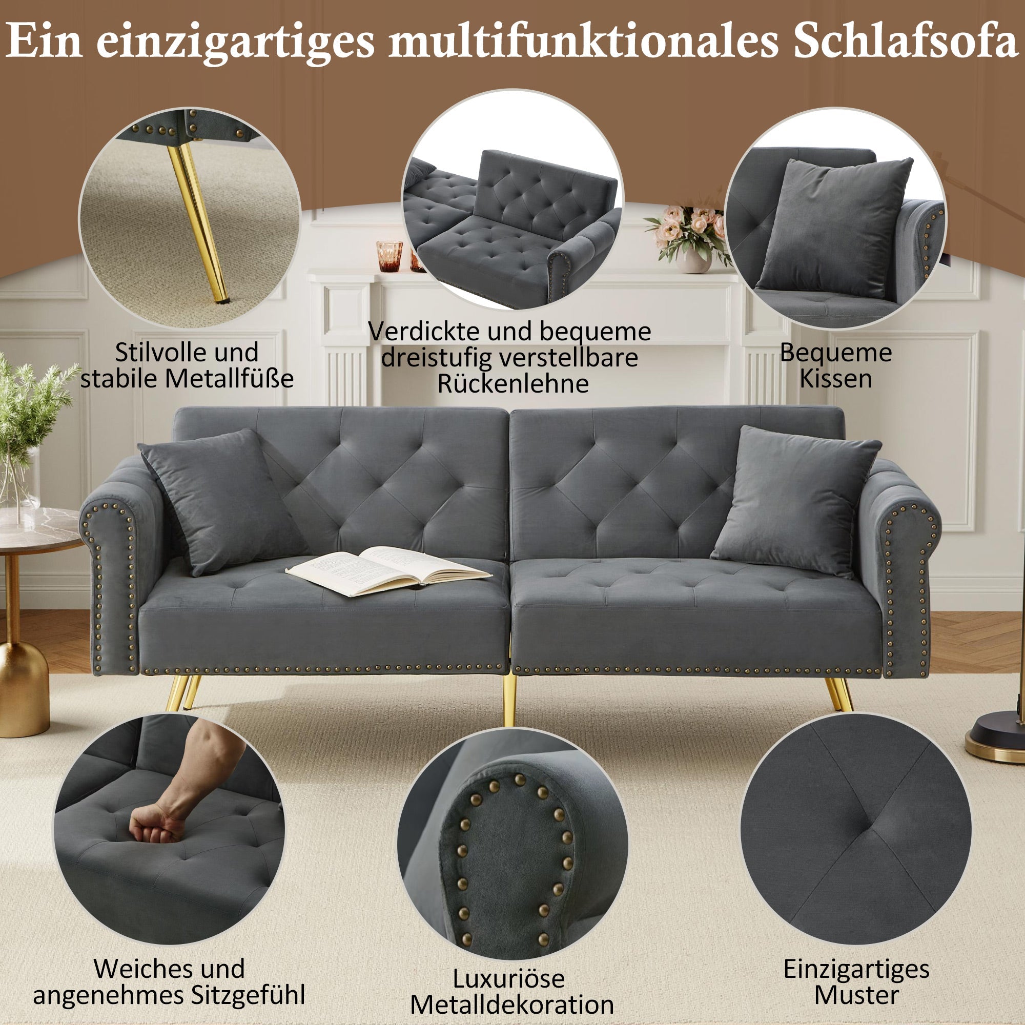 Sofa Bed, Modern 2-Seater with 3-Level Adjustable Backrest, Velvet