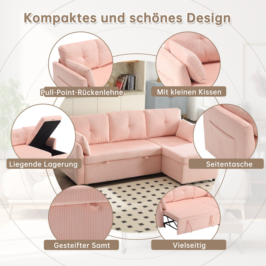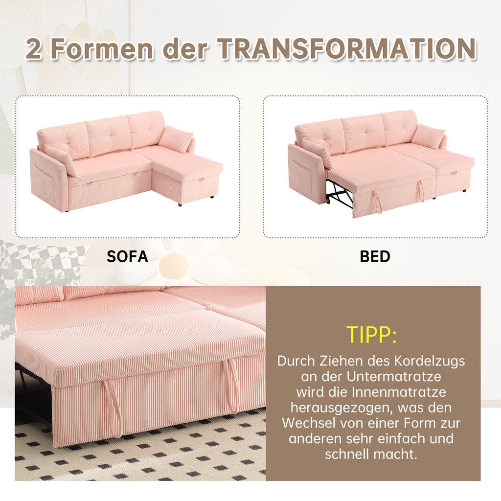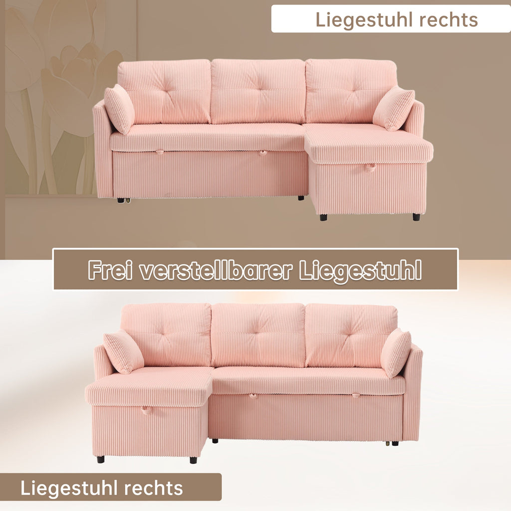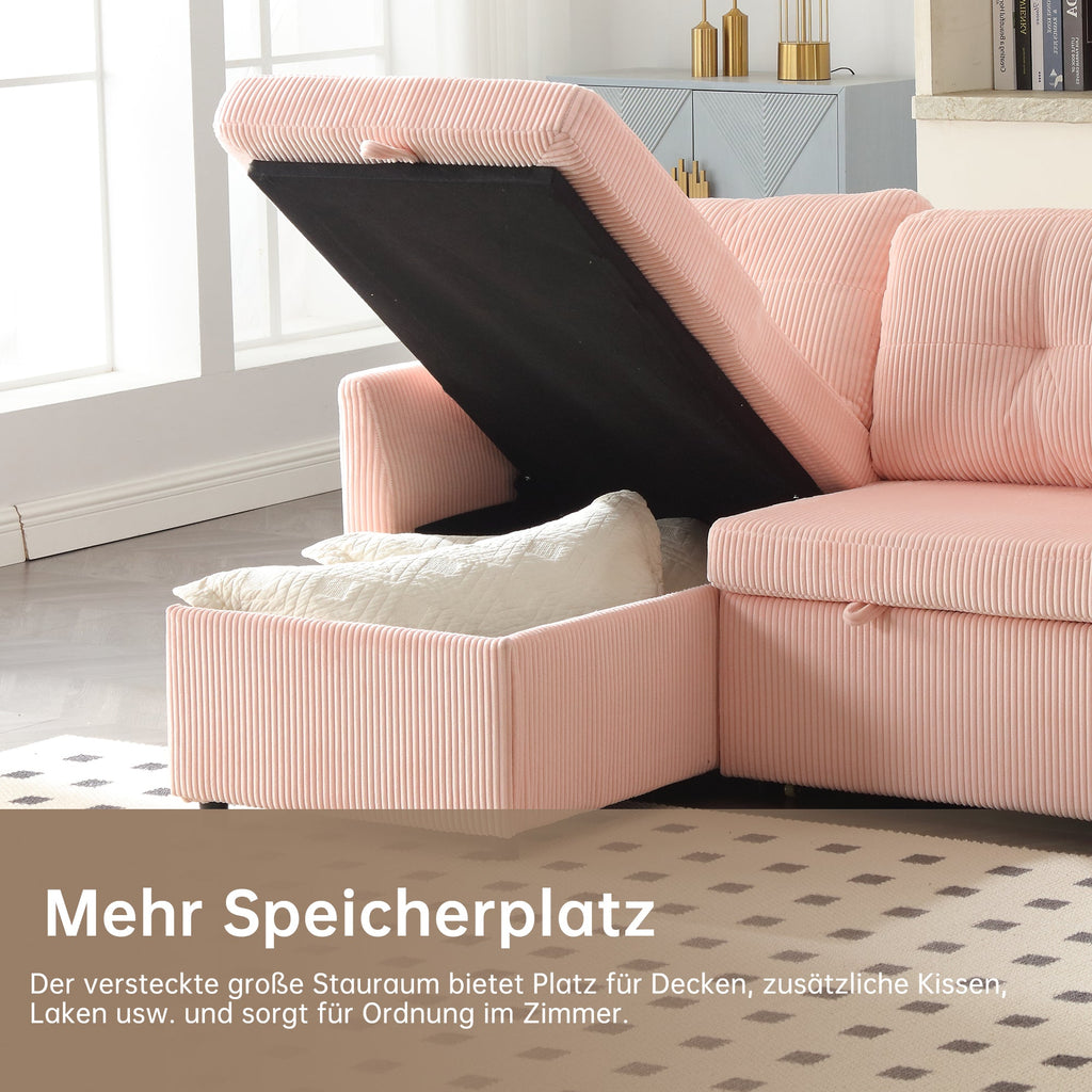 Sofa Bed, Multi-functional with Storage, Pull-out & Chaise Lounge, L-Shaped Sectional