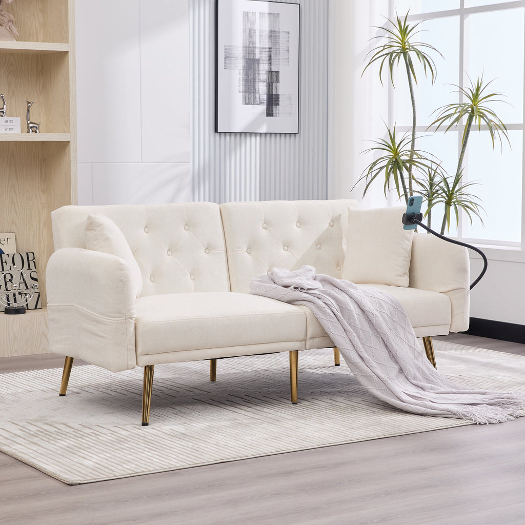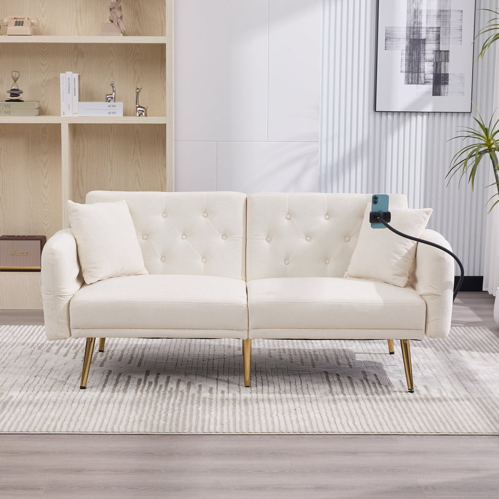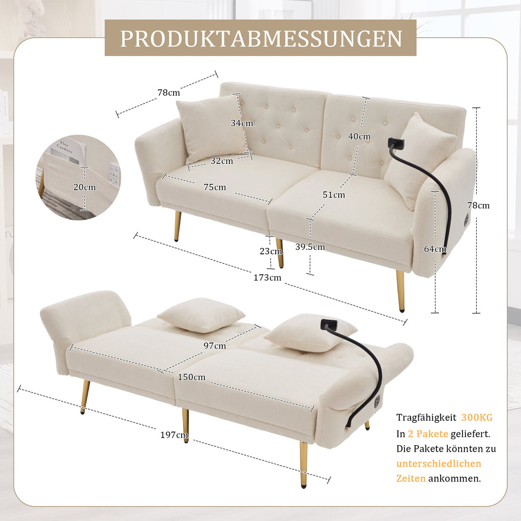 Sofa Bed, Multifunctional Adjustable Backrest USB Ports Phone Holder Metal Legs, Metal