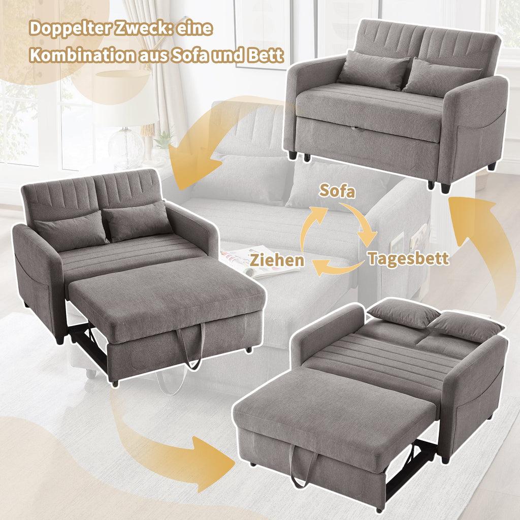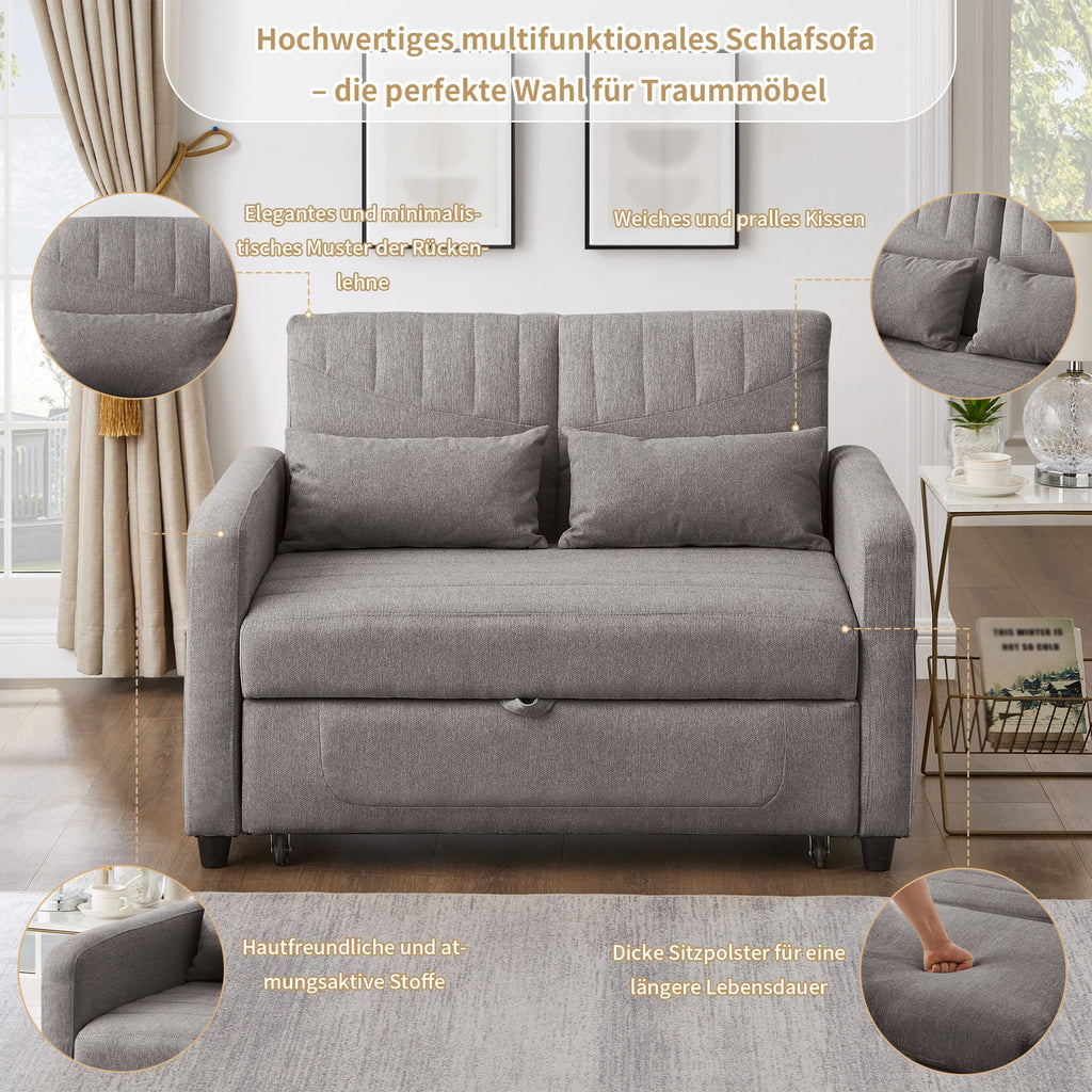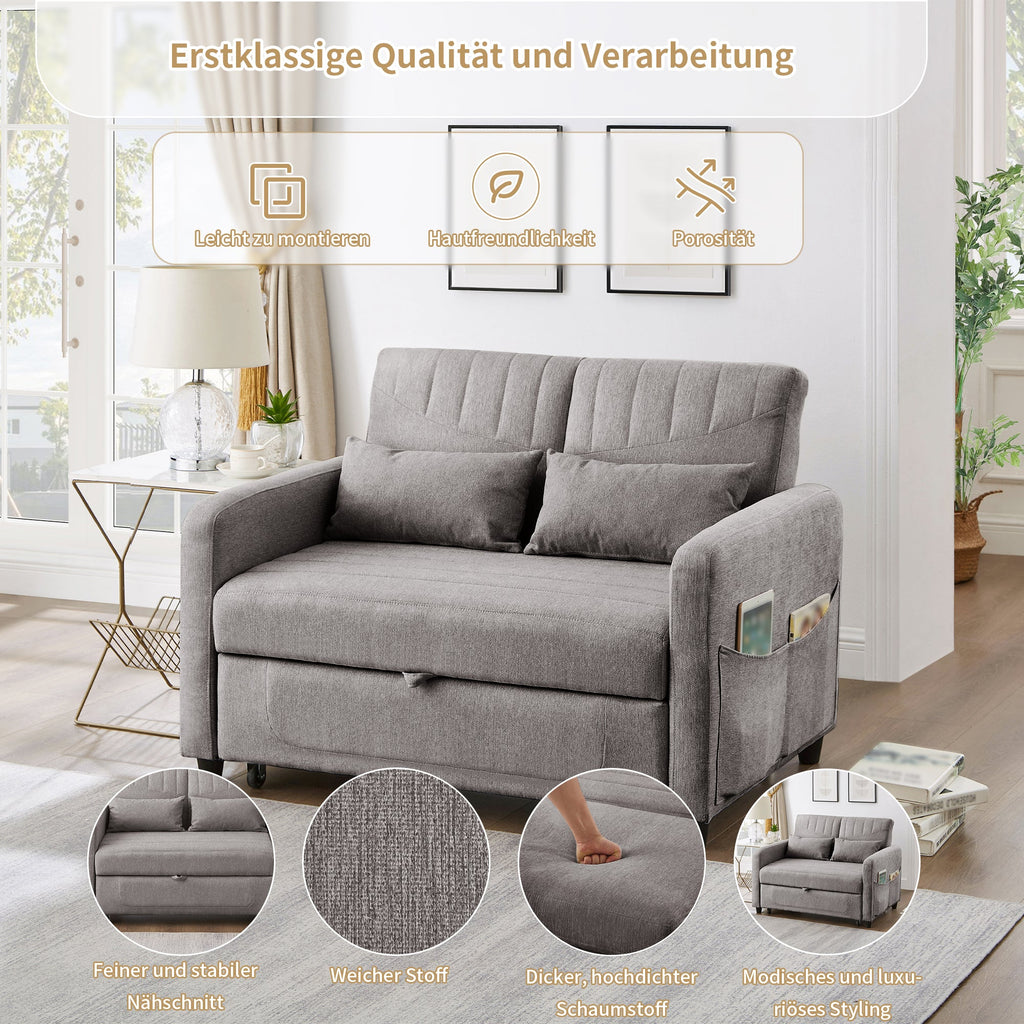 Sofa Bed, Two-Seater Folding Extendable with Adjustable Backrest, Cotton Linen