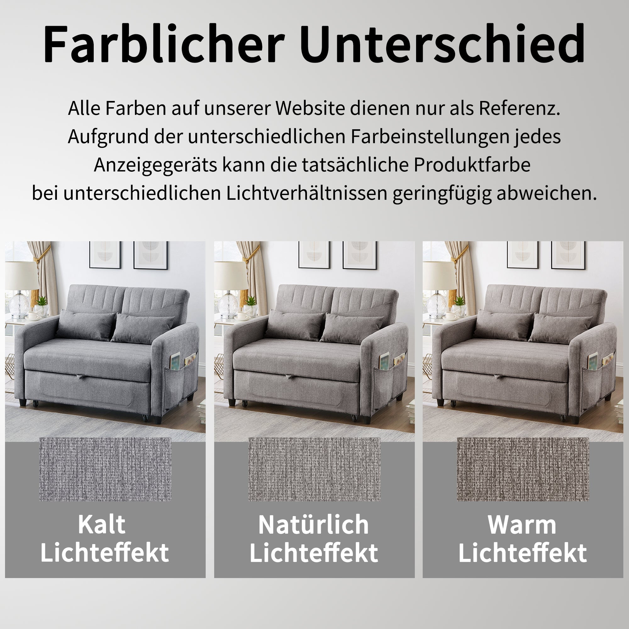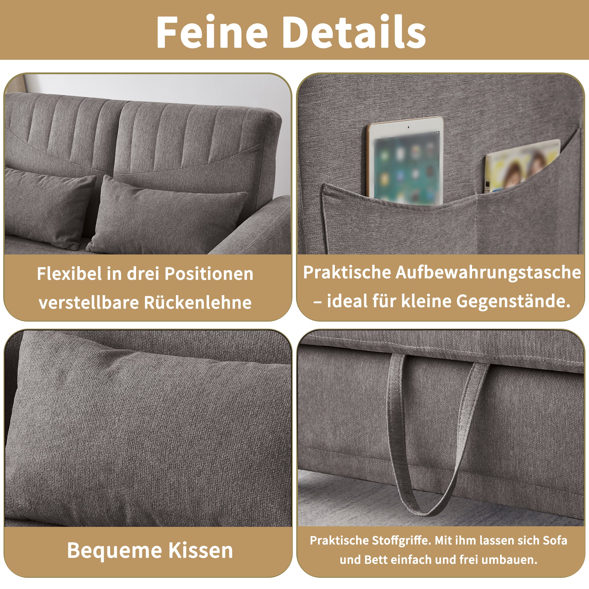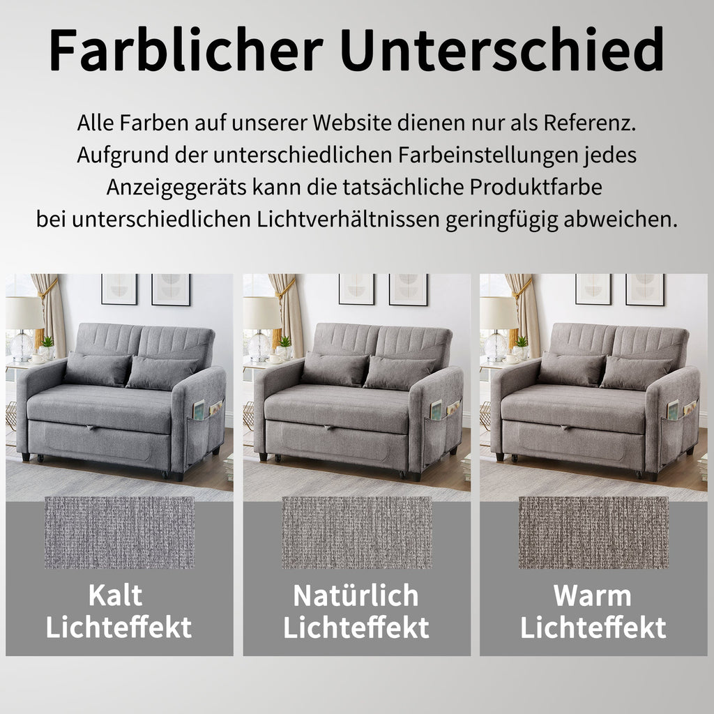 Sofa Bed, Two-Seater Folding Extendable with Adjustable Backrest, Cotton Linen