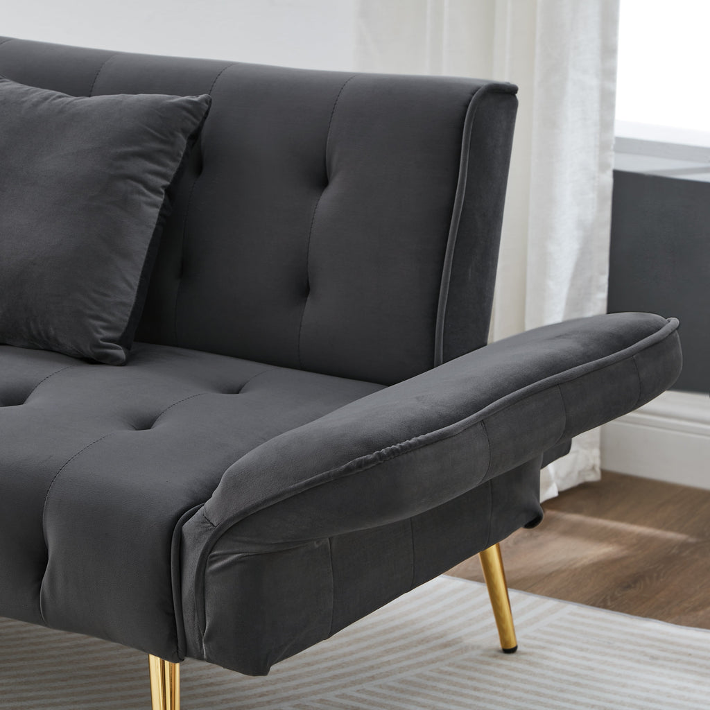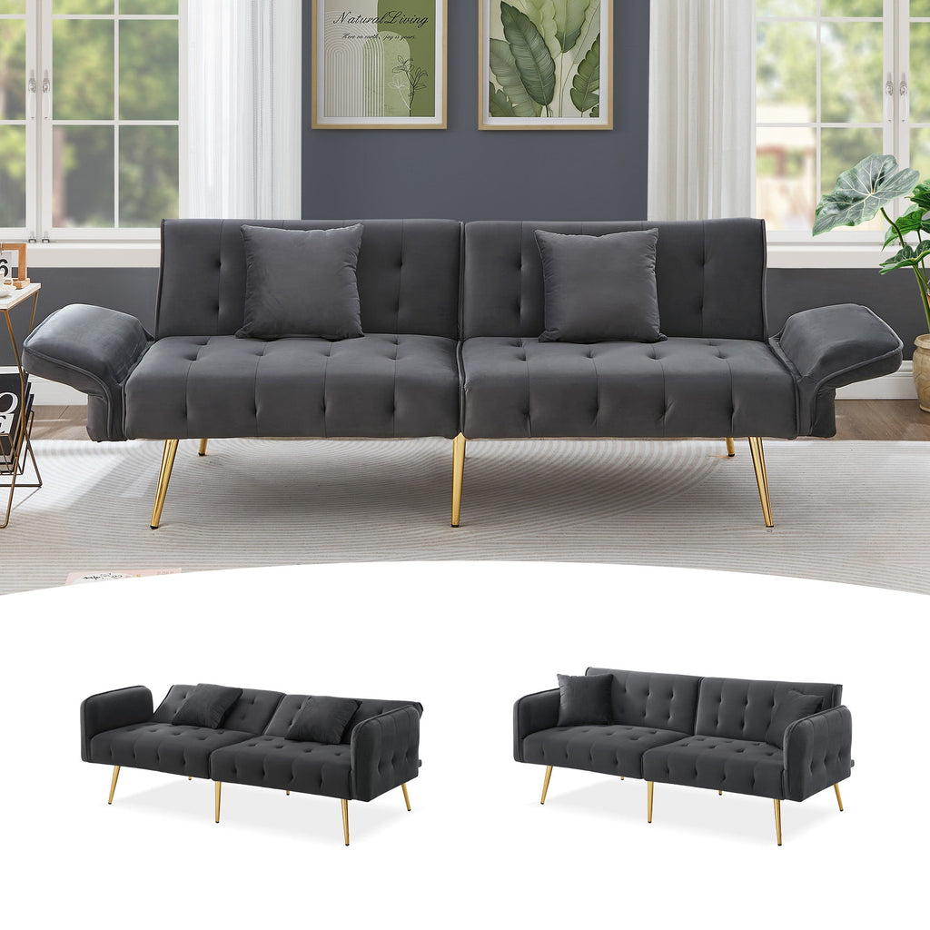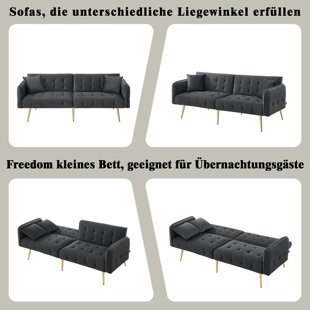 Sofa Bed, Two-Seater Multifunctional with Adjustable Backrest & Armrests, Velour