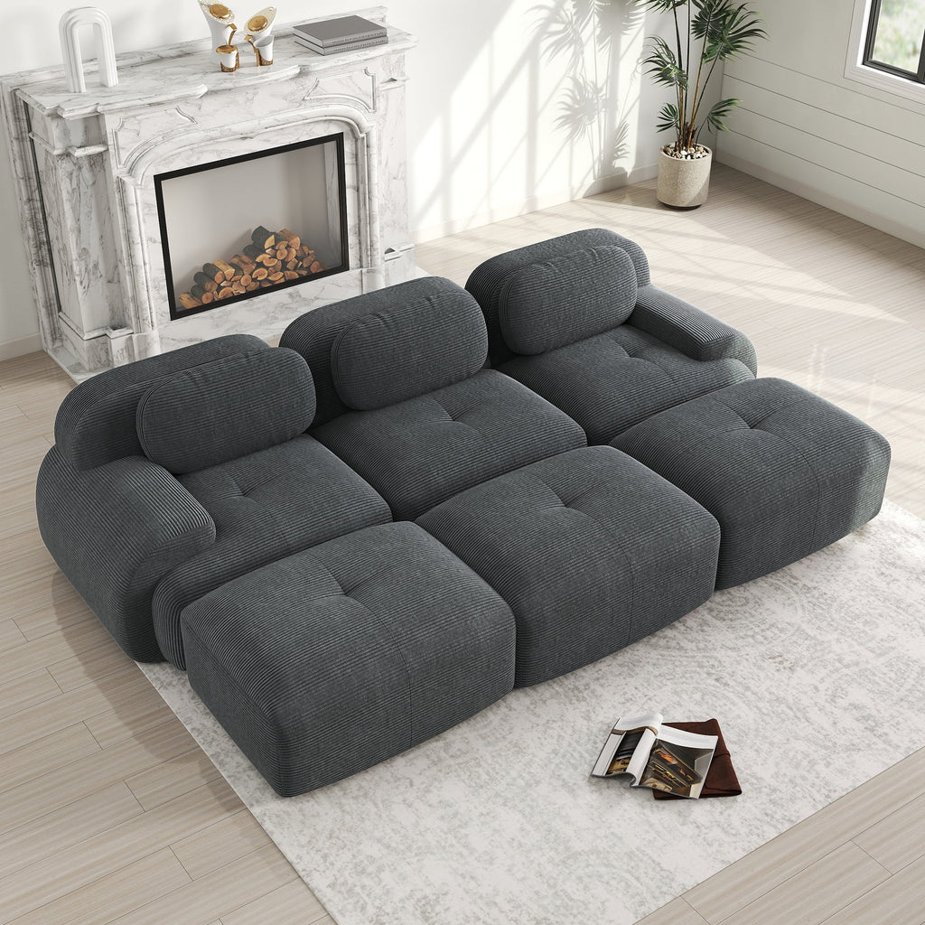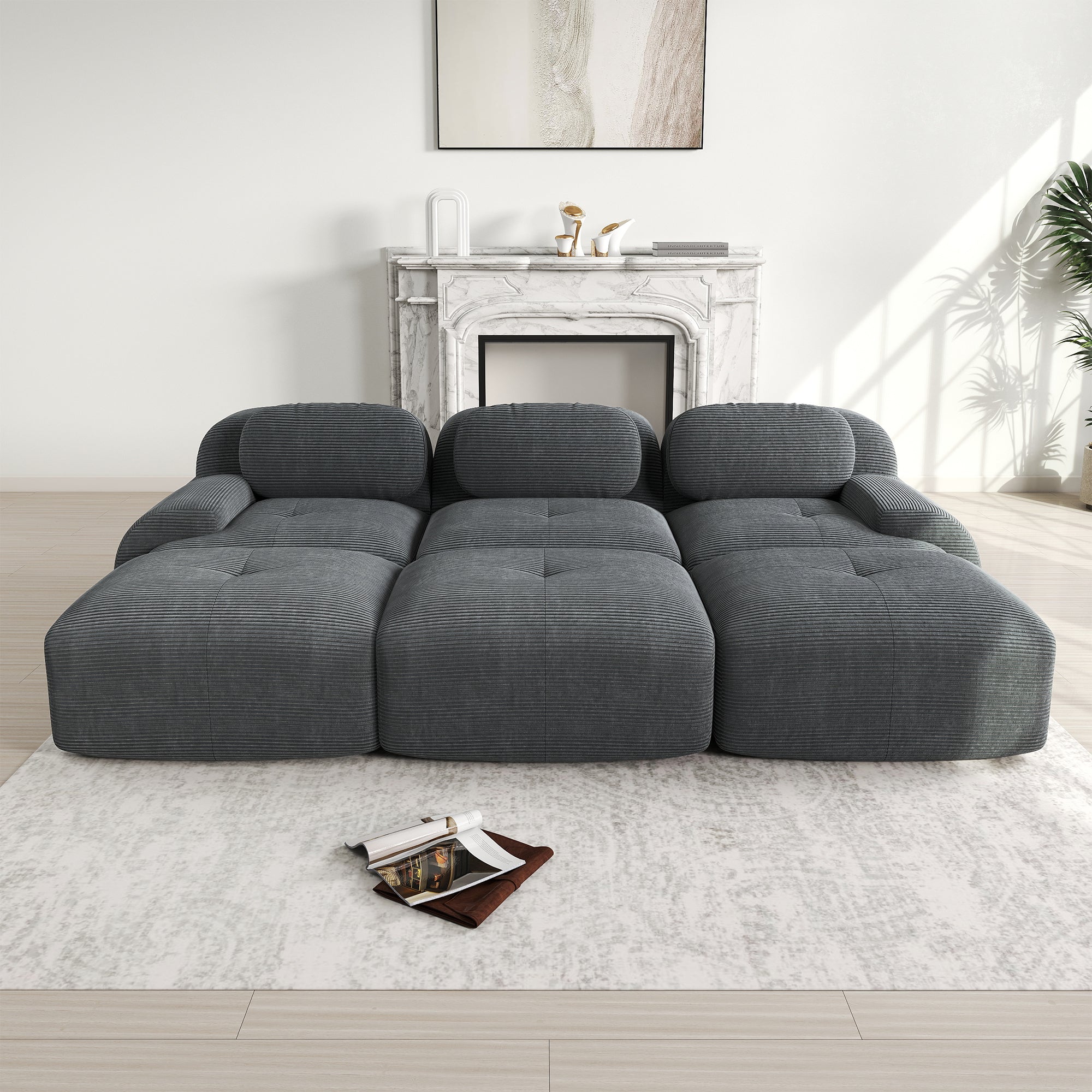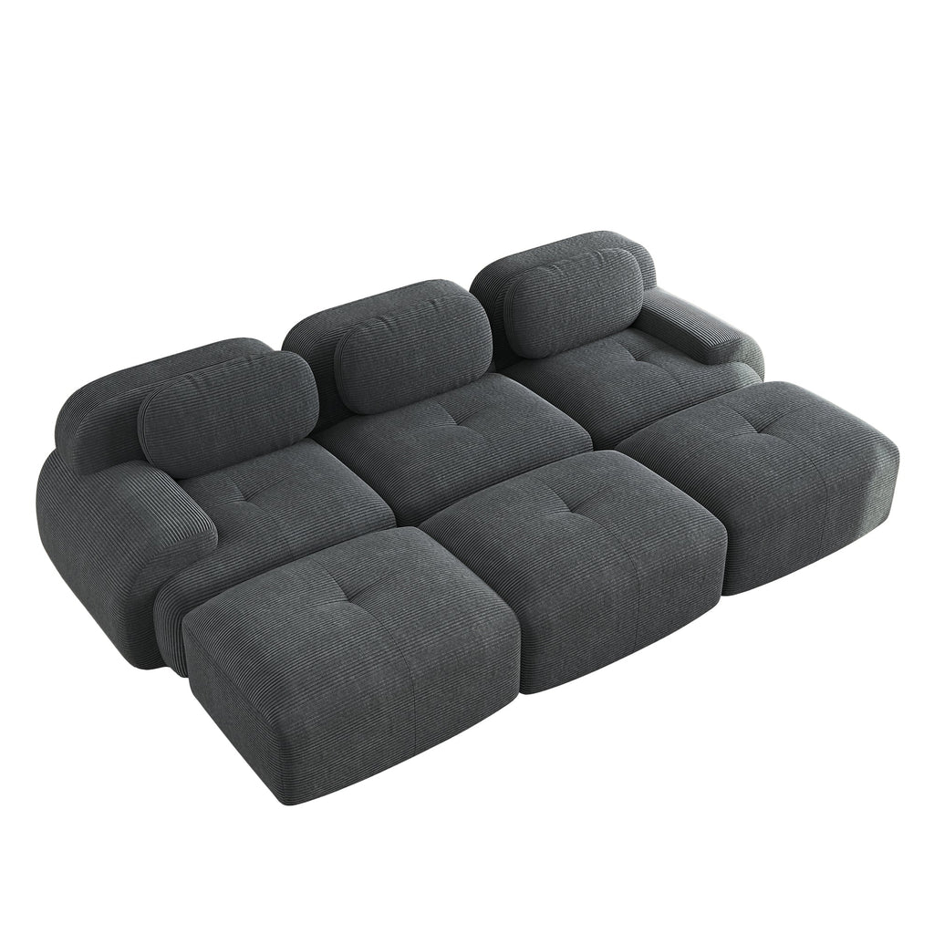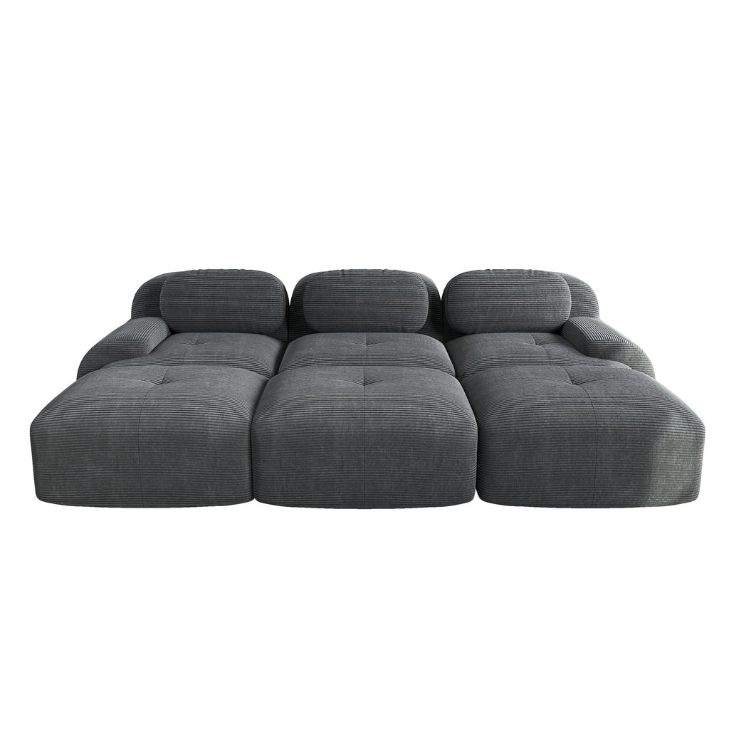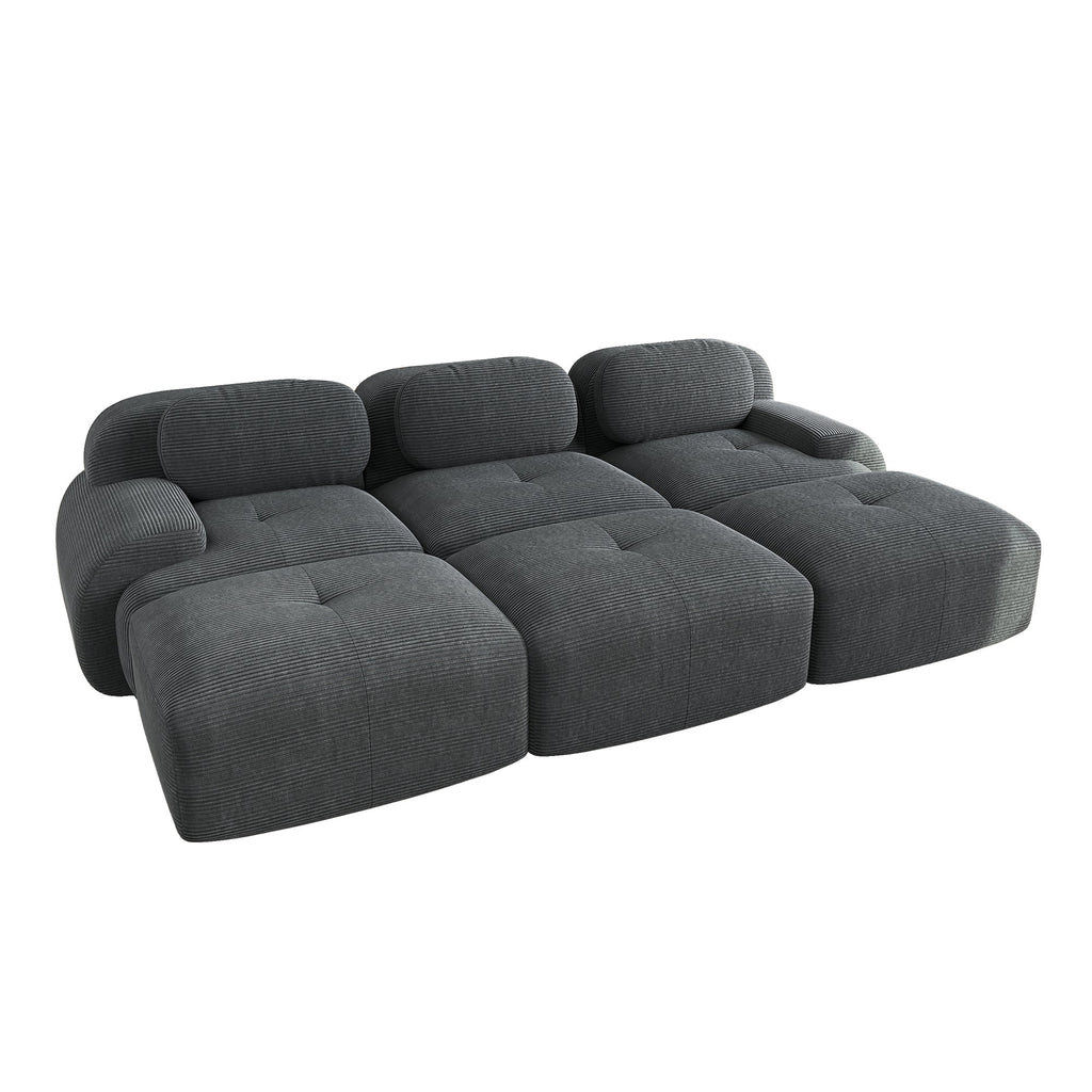 Sofa, Modular 3-Seater with 3 Ottomans, Ultra-Wide Armrests, Grey Corduroy