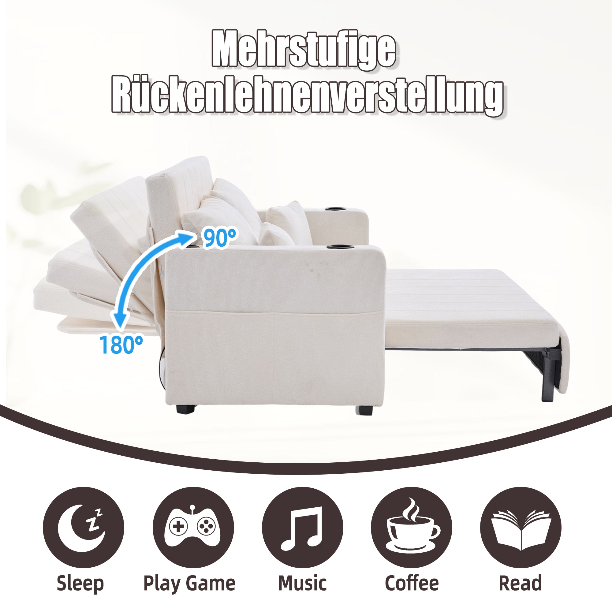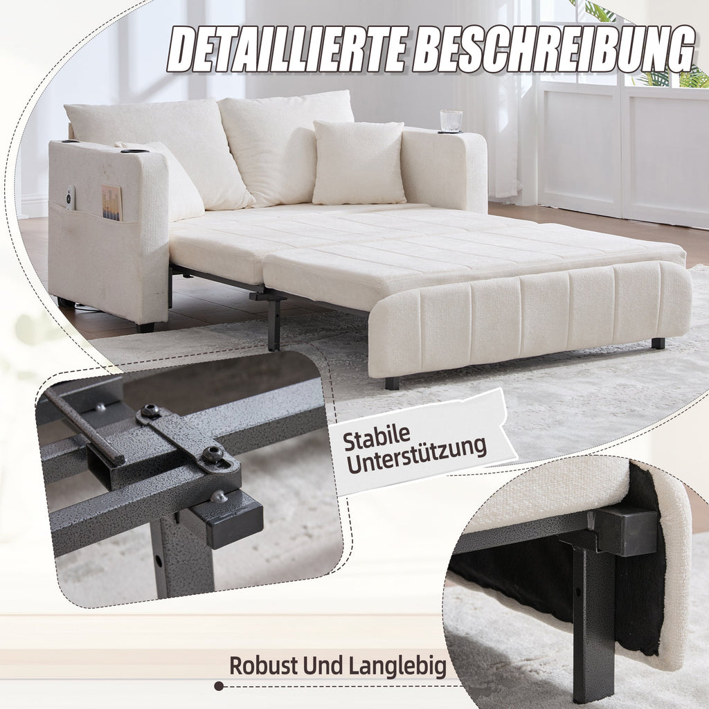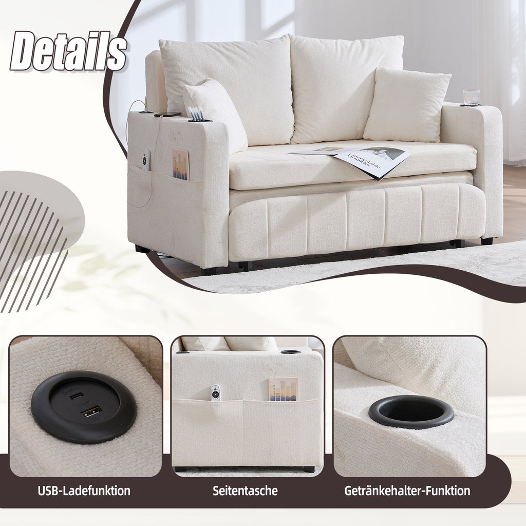 Sofa, Multifunctional Folding Pull-Out with USB & Cup Holder, Fabric