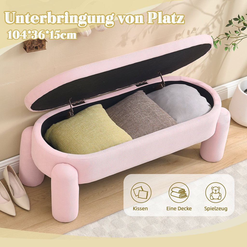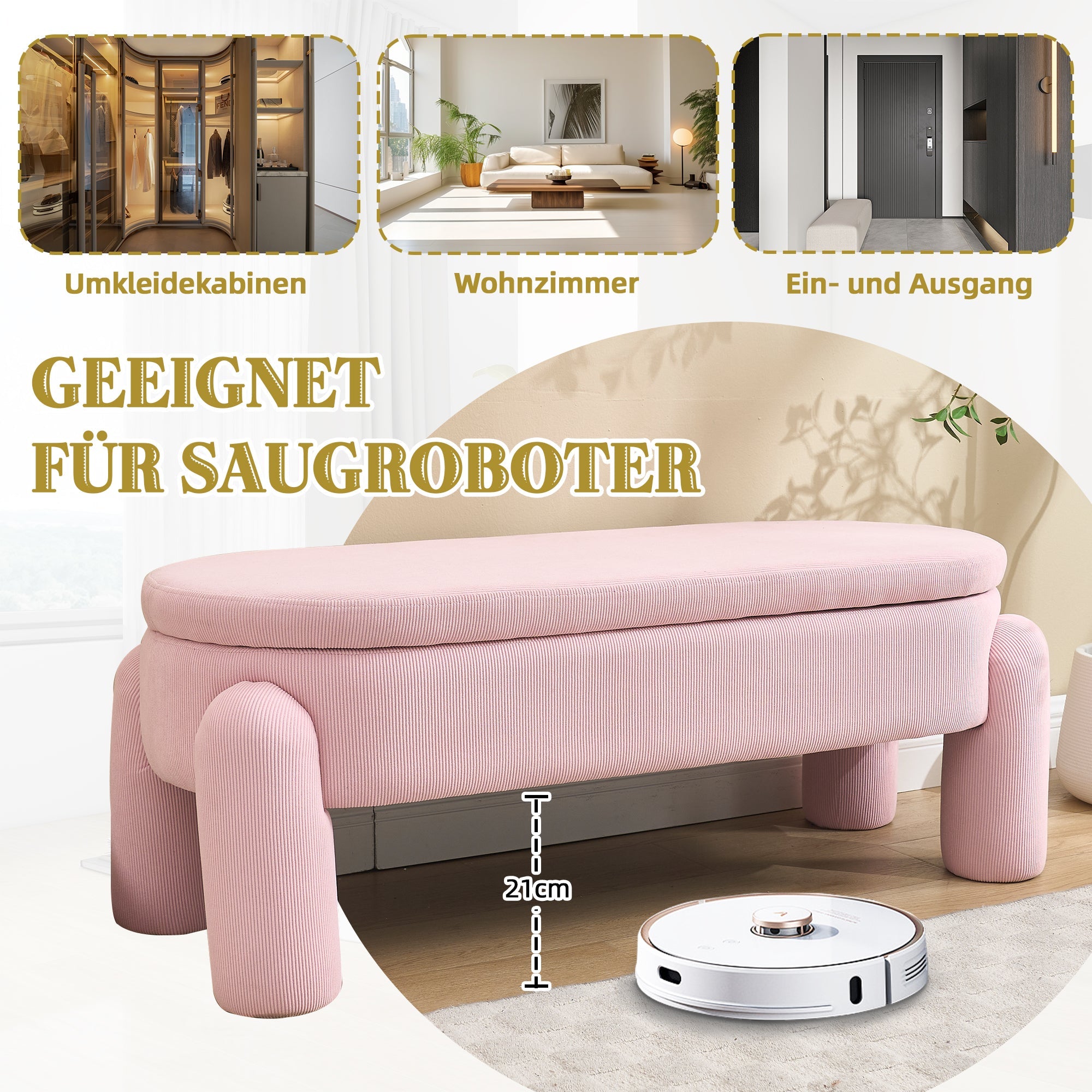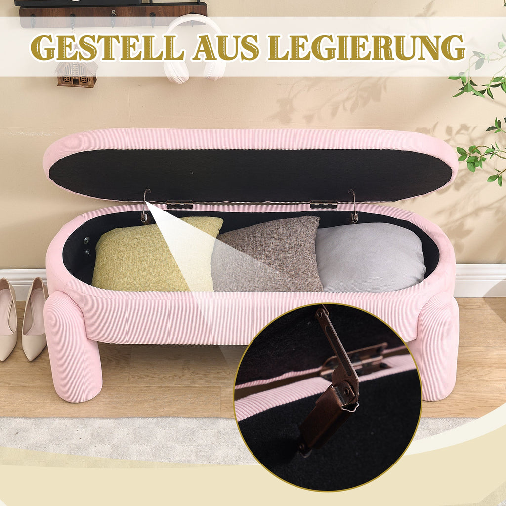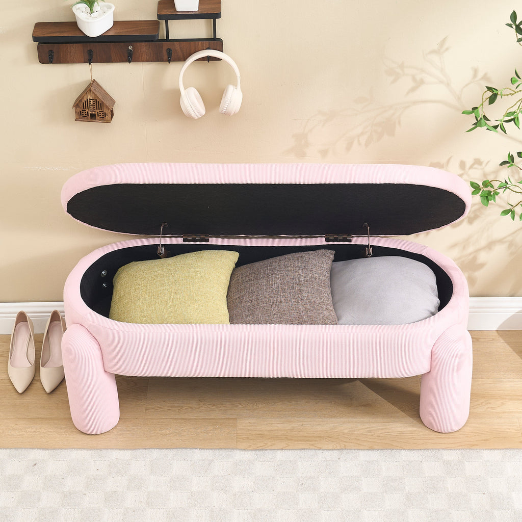 Storage Bench, Modern with Chenille Fabric & Solid Wood Frame, Pink