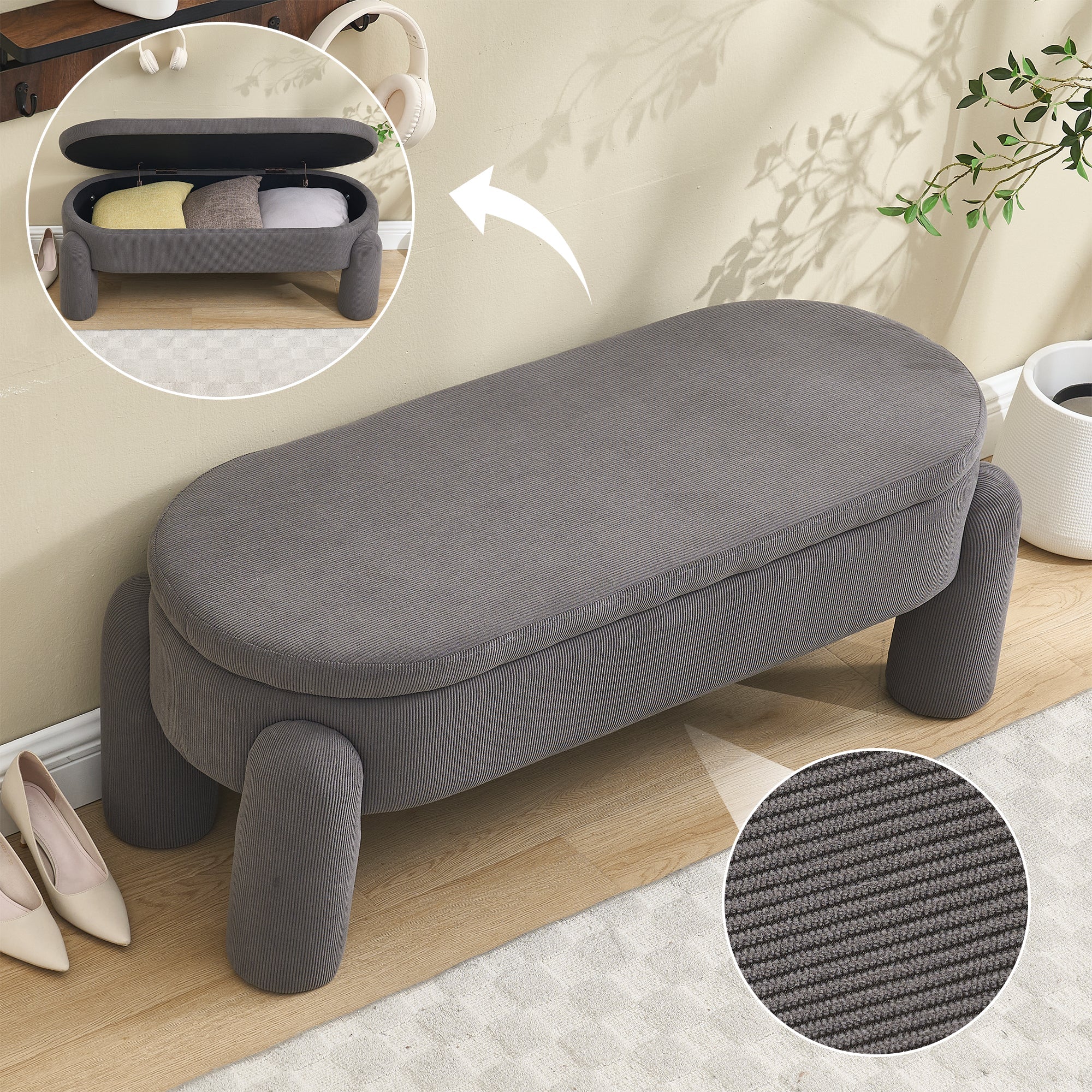 Storage Bench, Modern with Storage & Solid Wood Frame, Chenille Fabric Gray