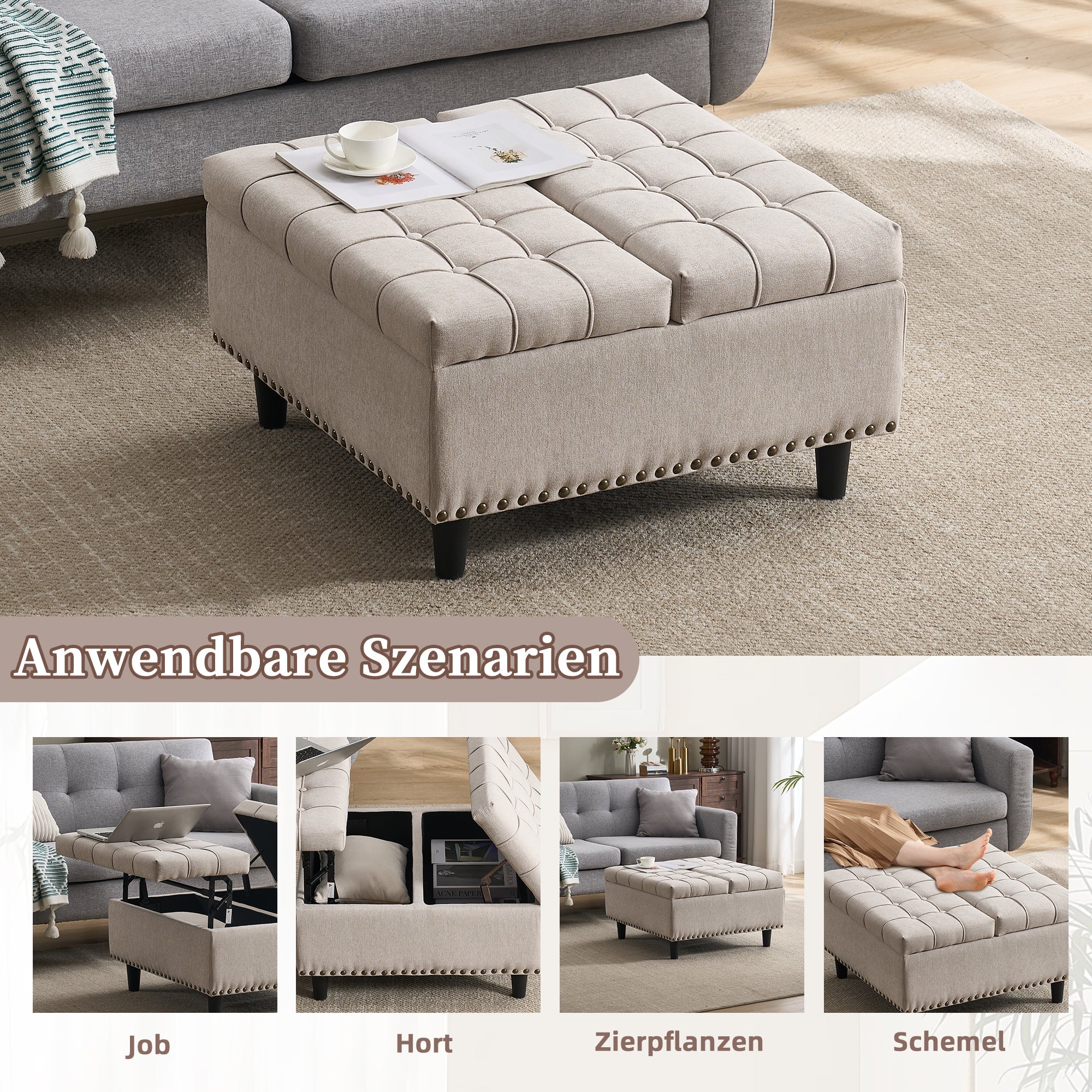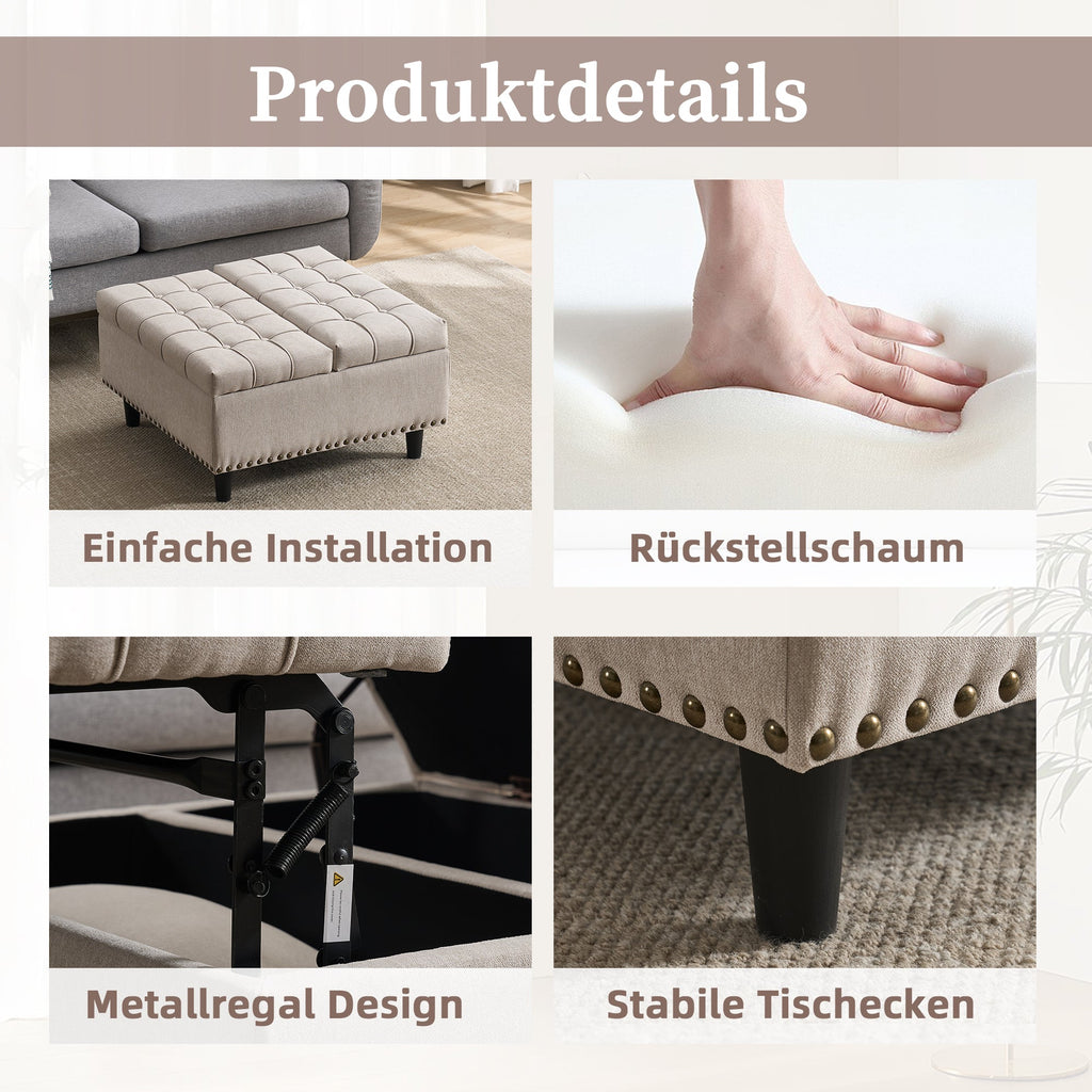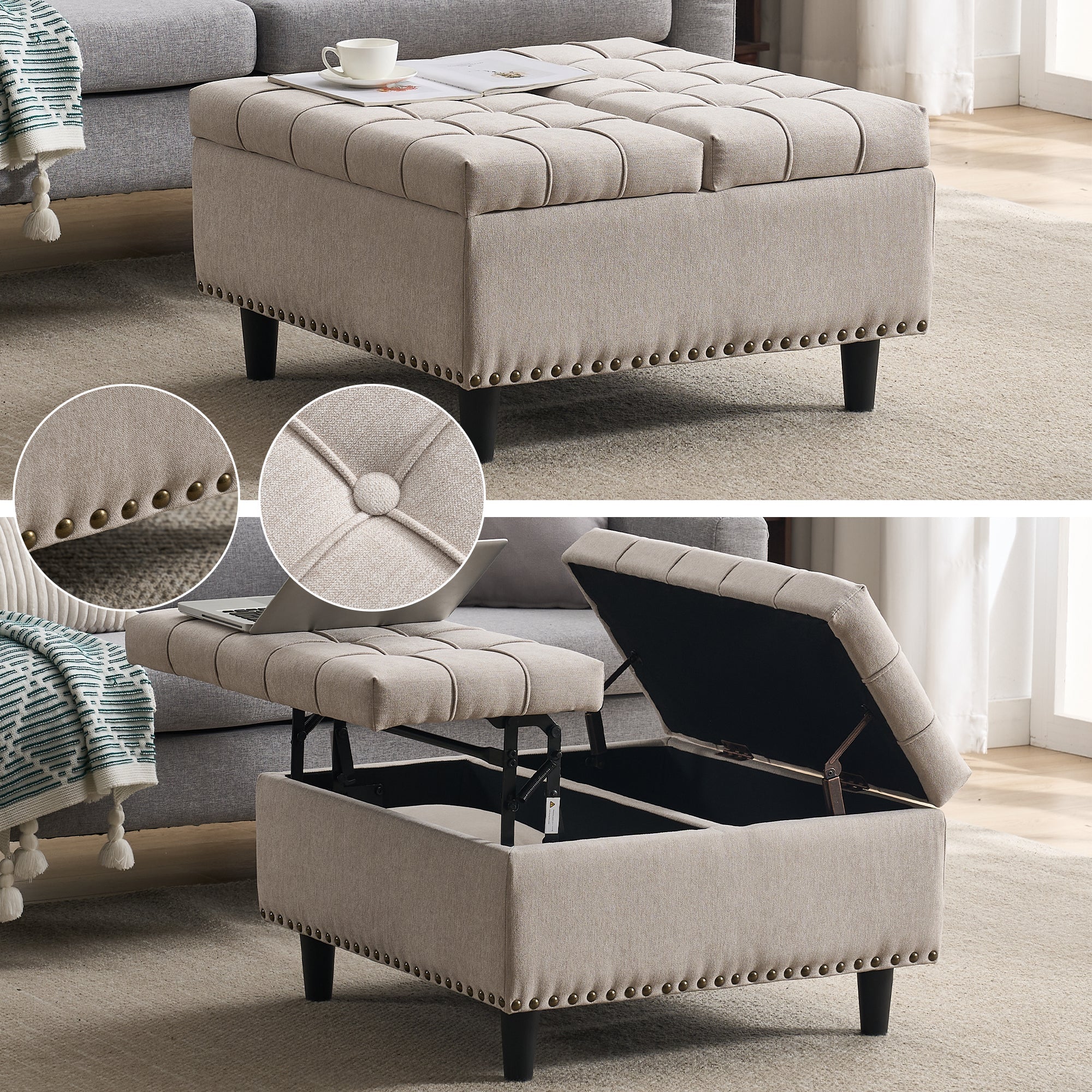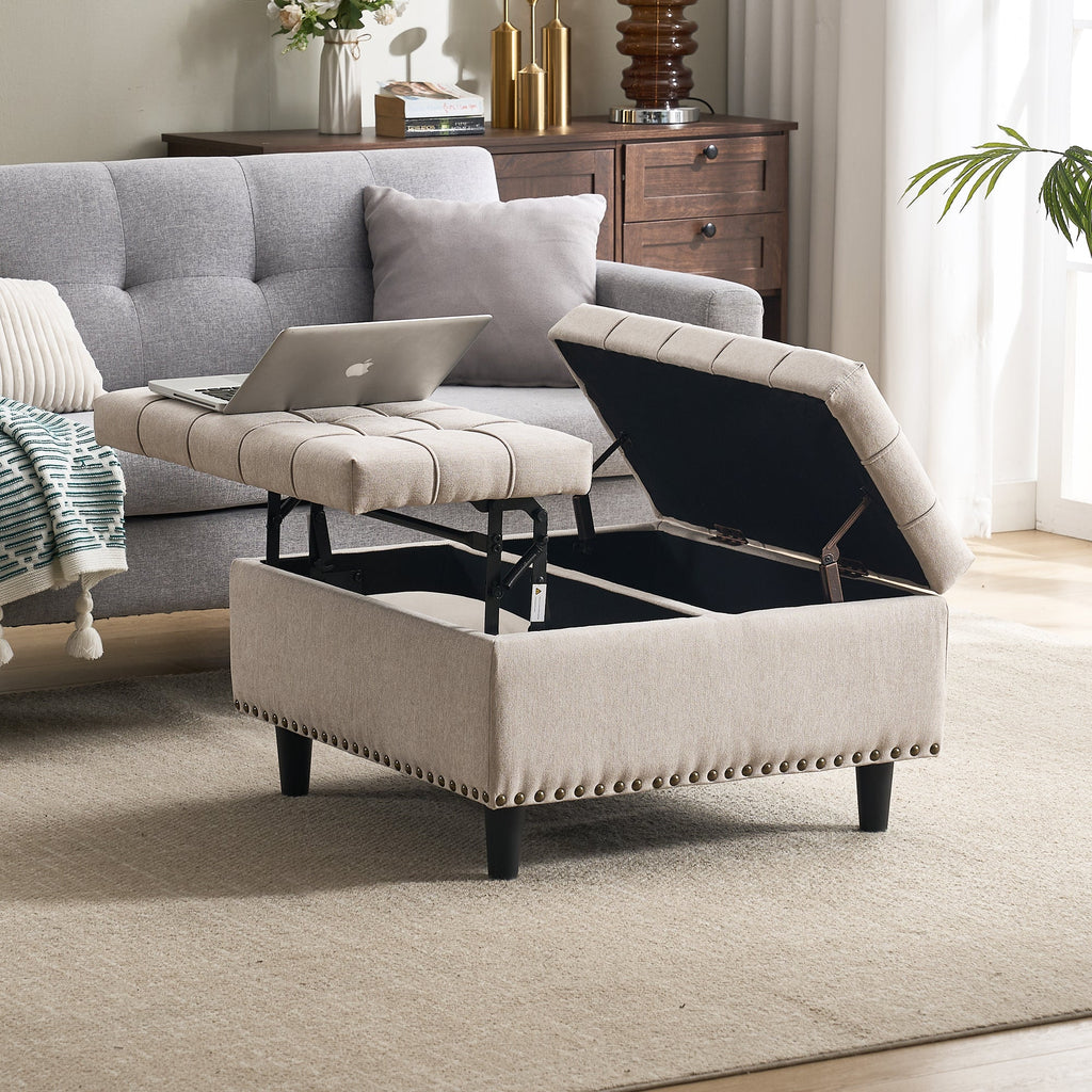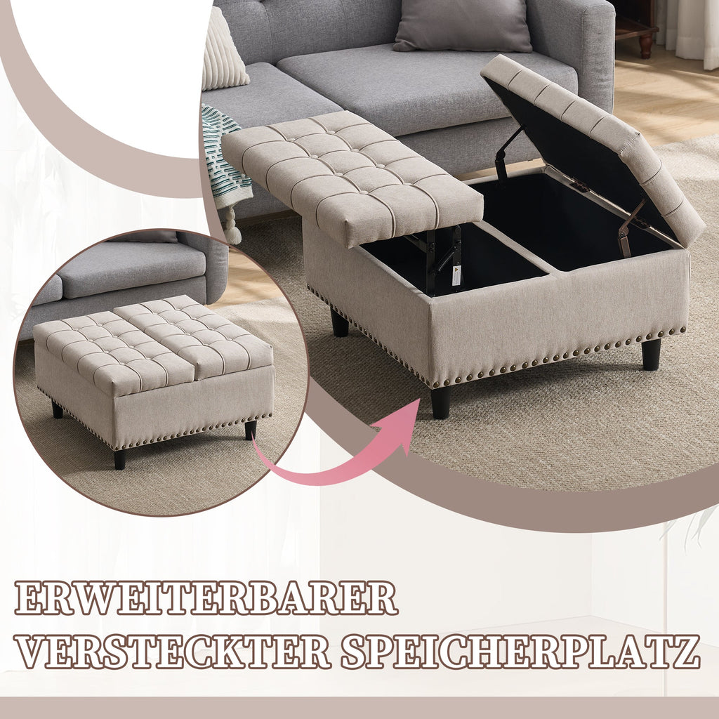 Storage Chair, Large Square Liftable Bench with Space, Beige