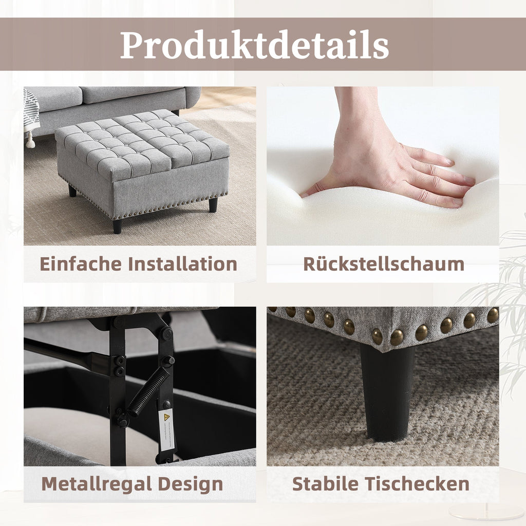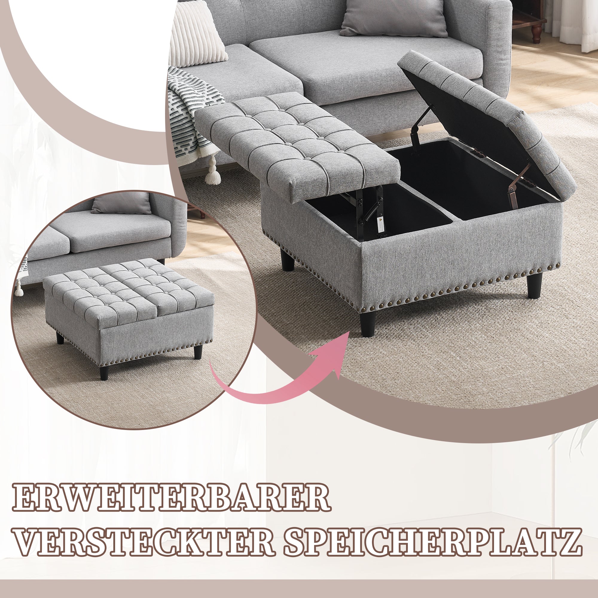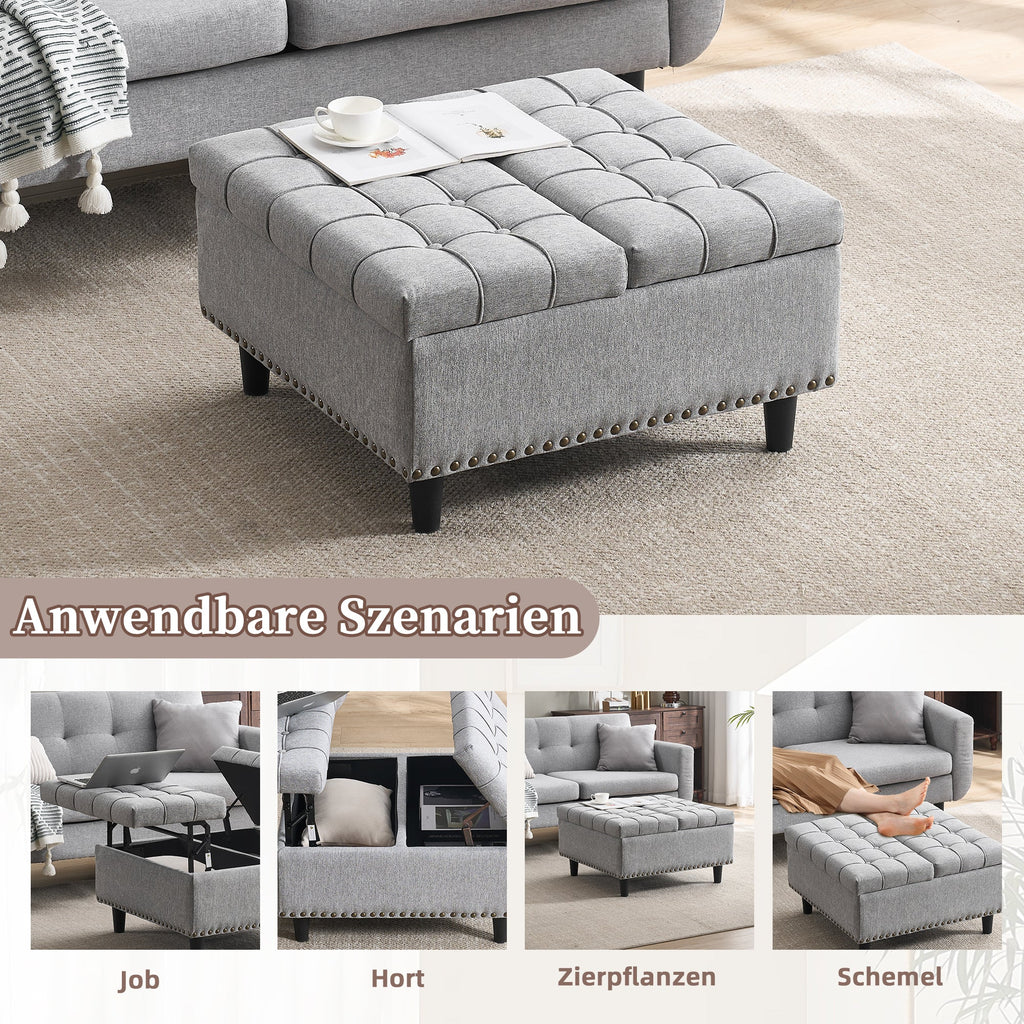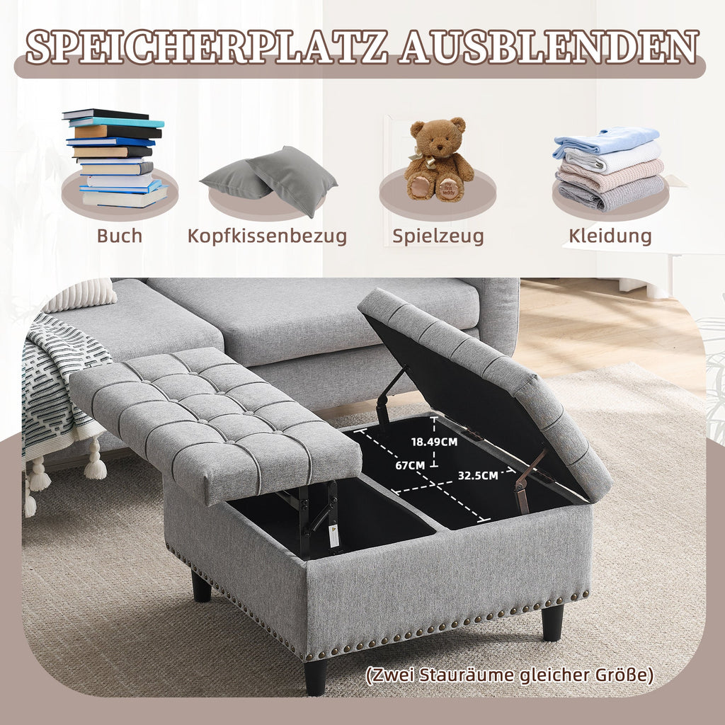 This versatile storage chair features a multi-level design with two compartments that open on both sides, making it ideal for various living spaces. Crafted with a classic all-wood frame and comfortable inner sponge padding, this high-quality chair offers excellent support, stability, and resistance to damage, with a maximum load capacity of 130 kg. Its exquisite design and various color options add a touch of charm, making it a perfect addition to any room. The chair is upholstered in high-quality, skin-friendly, breathable, dustproof, and wear-resistant fabric for ultimate comfort and durability.