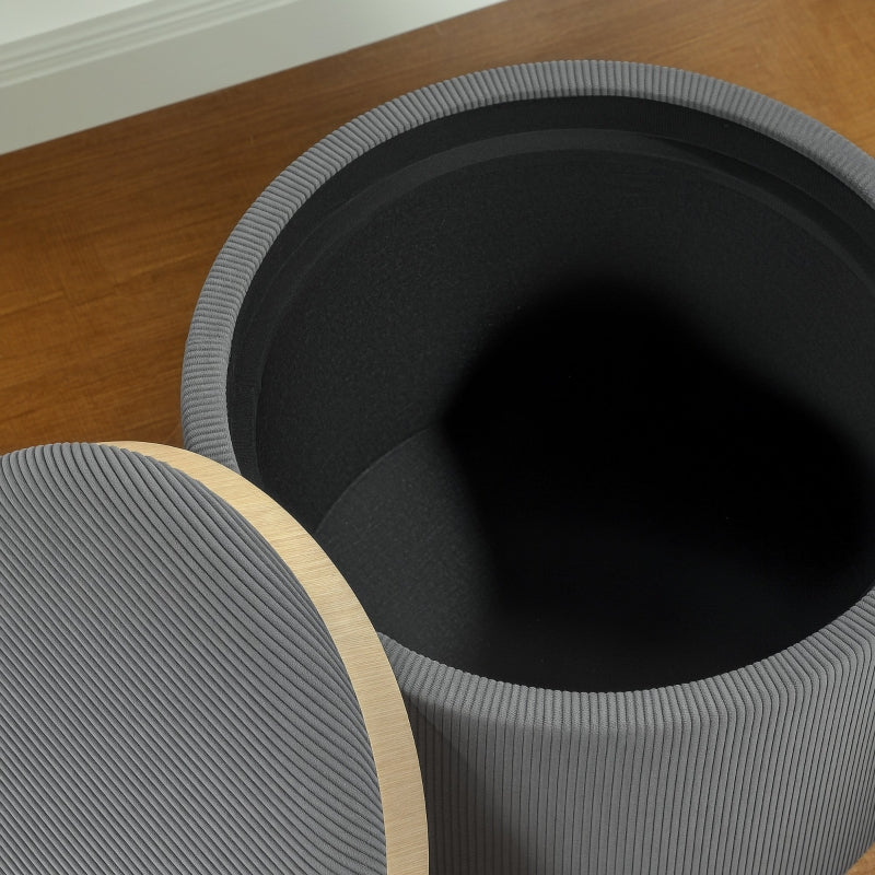 Storage Stool, Round Footstool Upholstered Coffee Table, Corduroy Grey