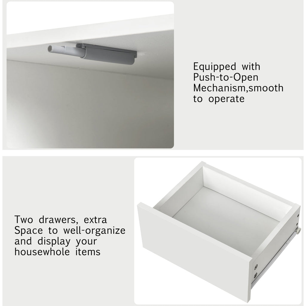 Coffee Table with 2 Drawers. This modern design cabinet with 2 drawers offers ample storage space for your daily necessities. It cleans your tabletop and keeps remote controls, cups, magazines, books, and other small items organized.