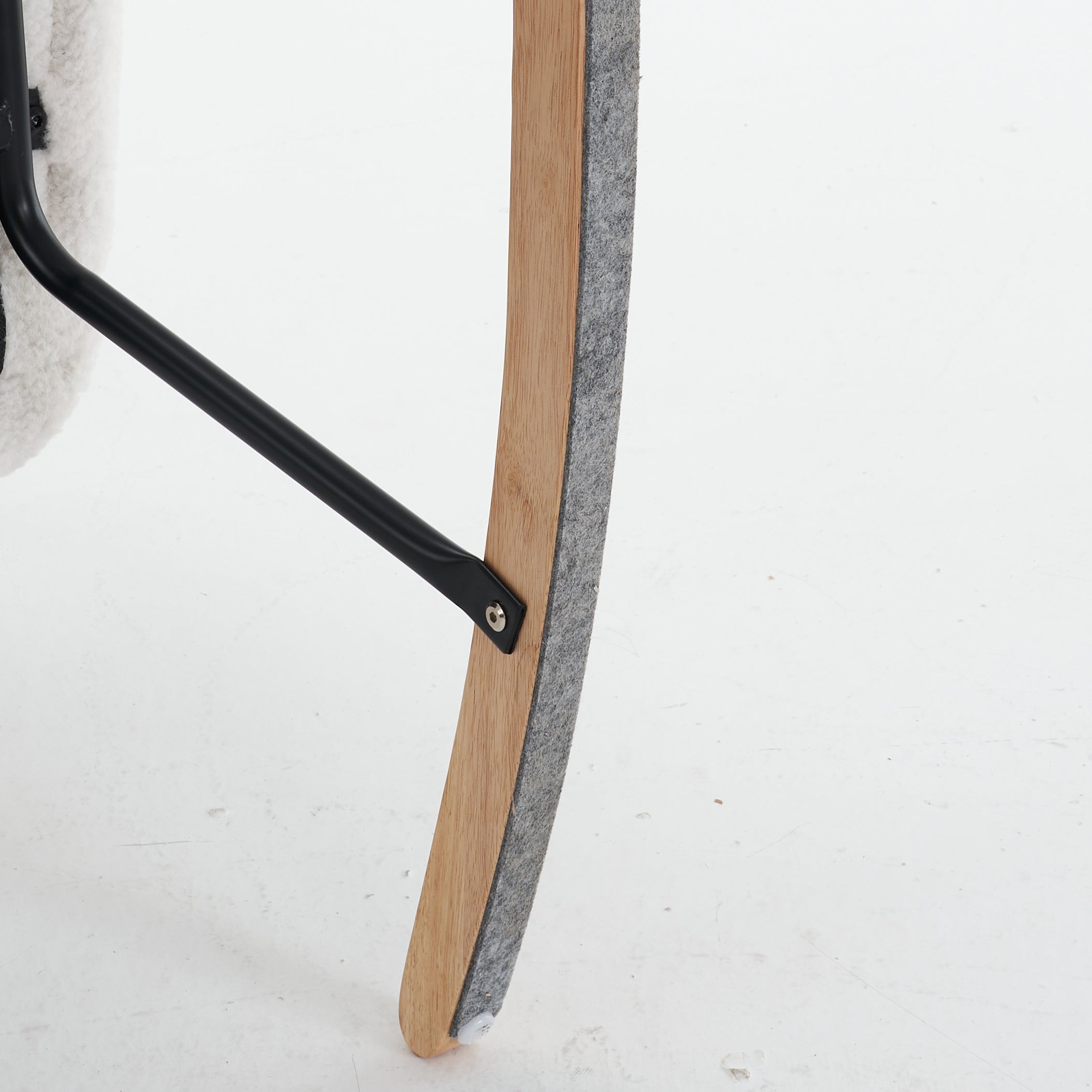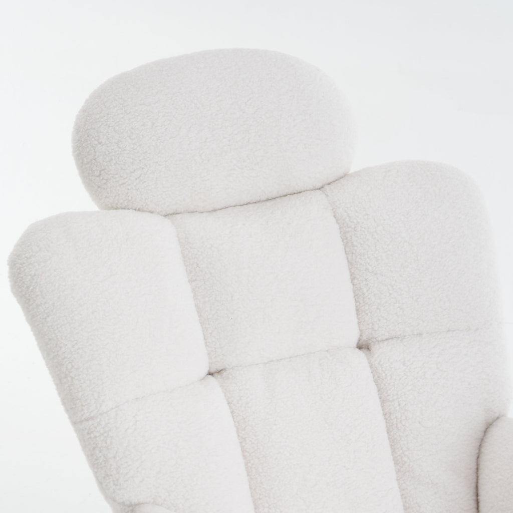 Teddy Fabric Rocking Chair, Tufted Upholstered with Headrest and Foldable Footrest, Ivory White