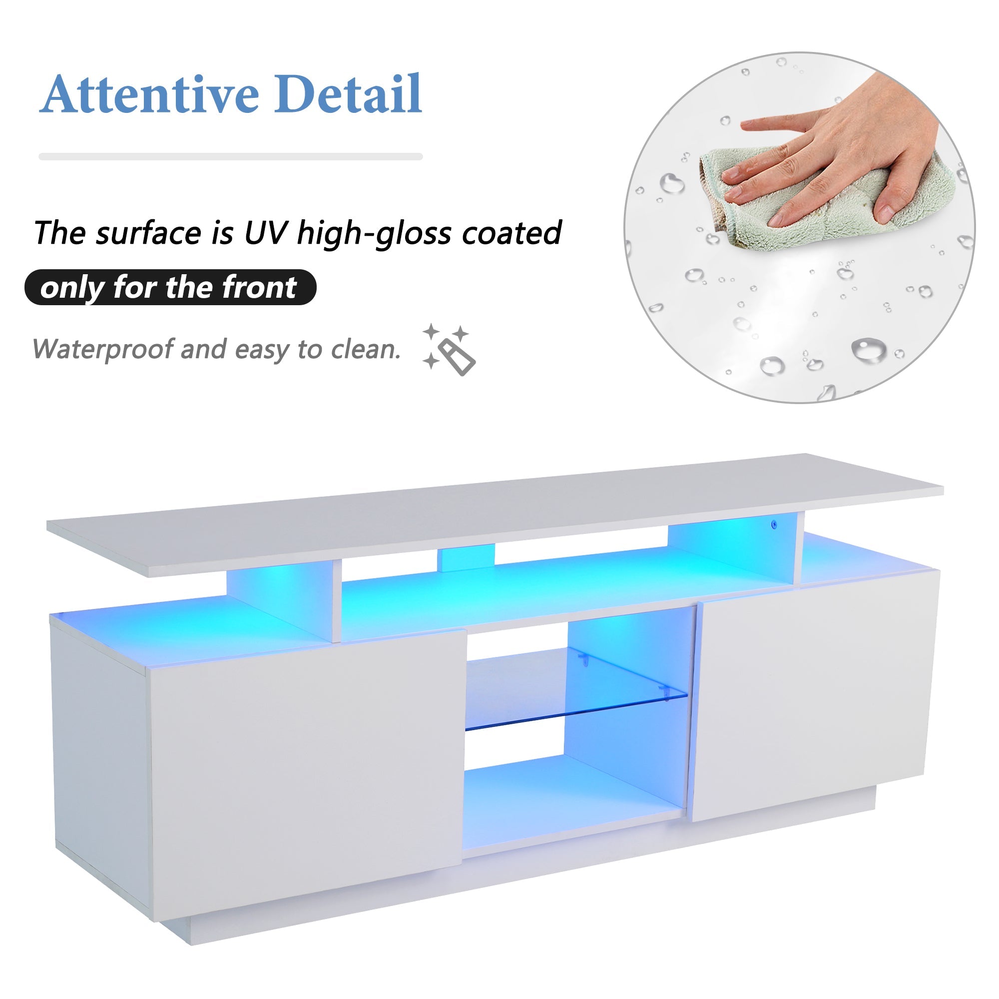 TV Cabinet, 1.4m Storage, 60-inch TV, 16-Color LED, White High-Gloss