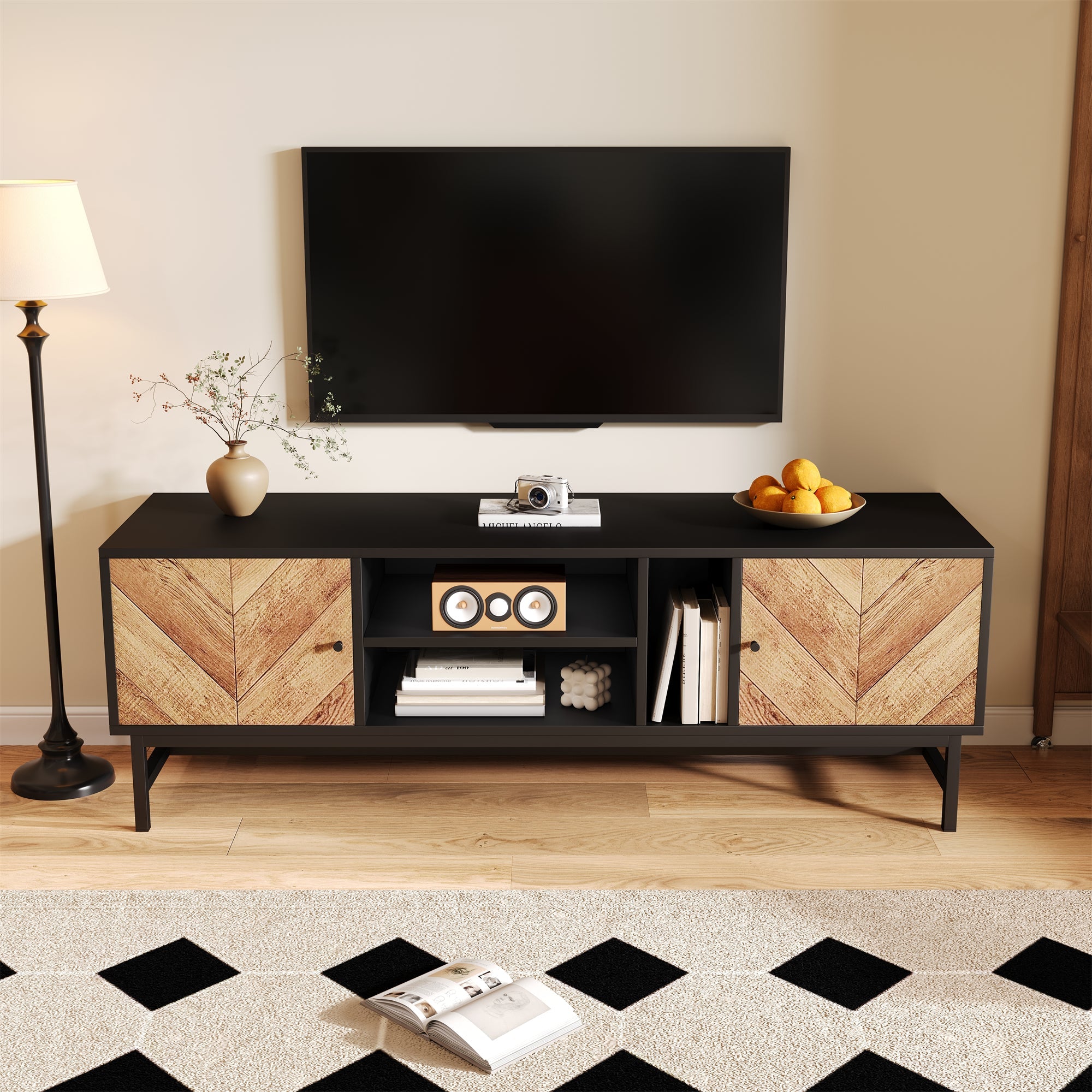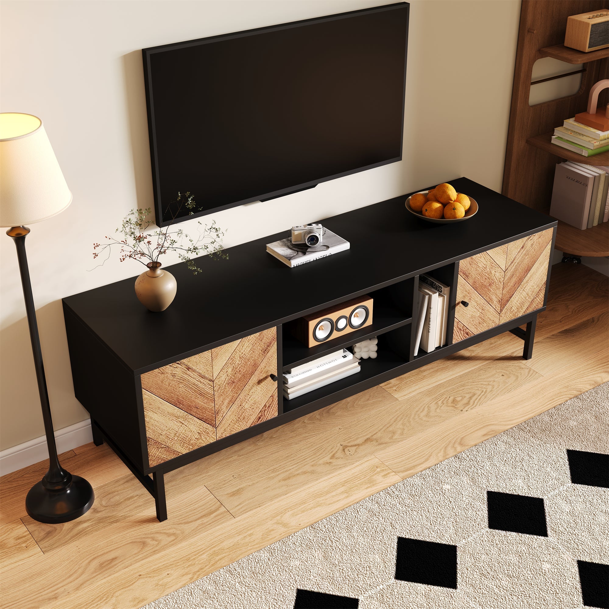TV Cabinet 150 cm, Versatile Storage with Cabinets & Compartments, Black & Wood