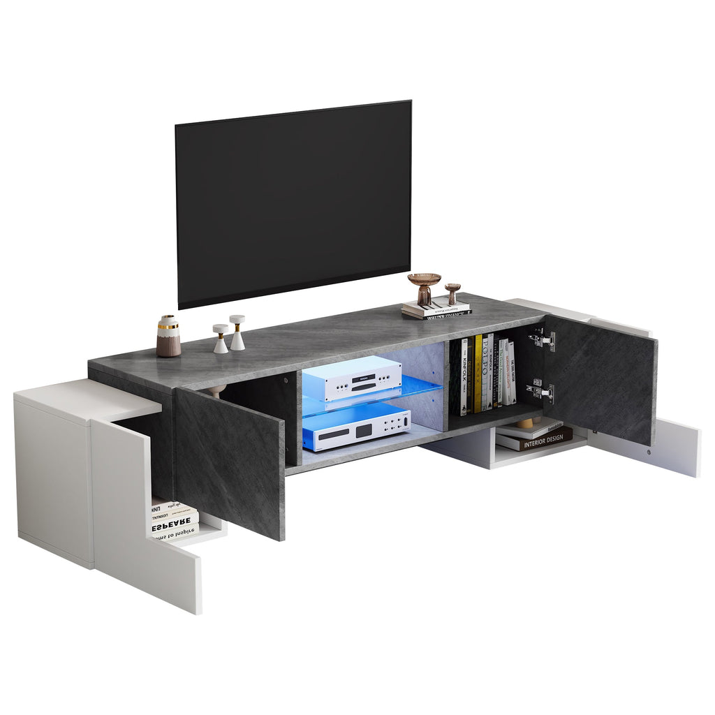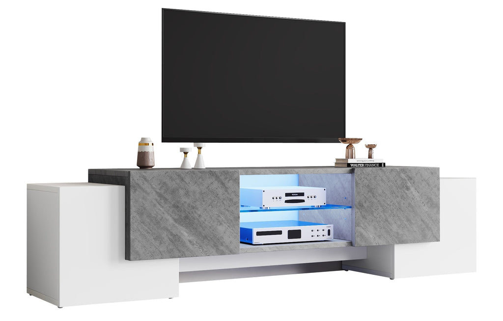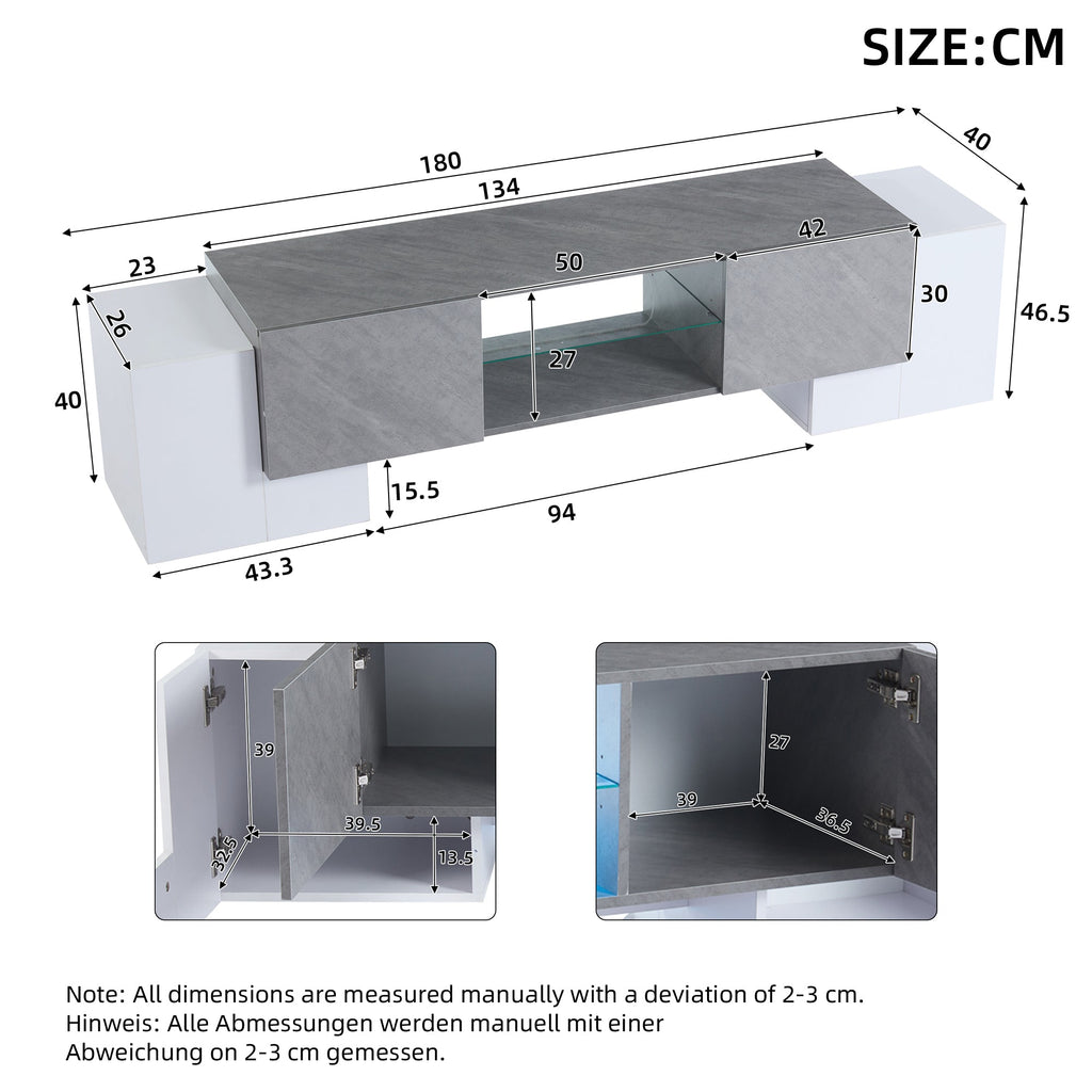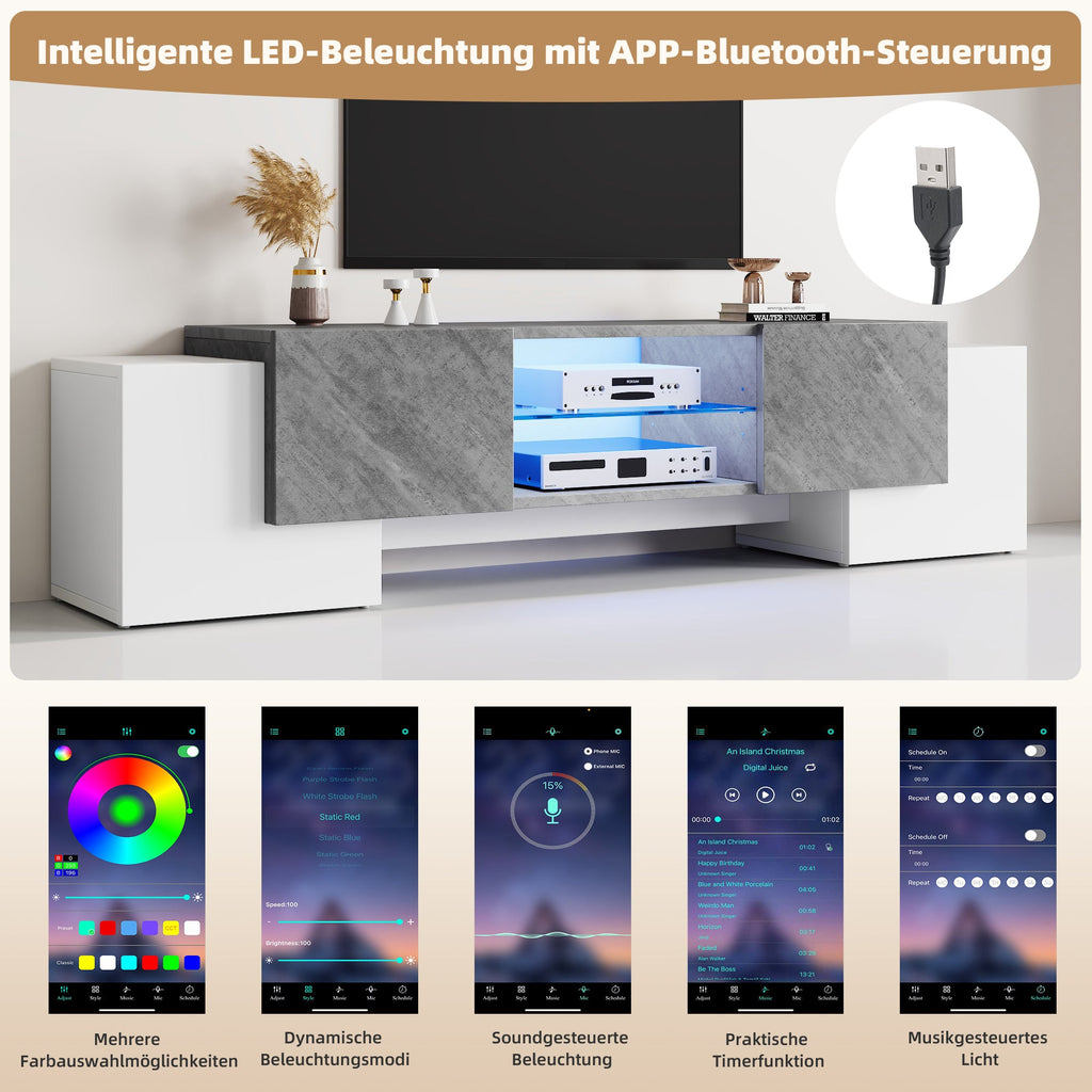 TV Cabinet 180*40*46.5cm, Lowboard with Bluetooth LED, White & Gray