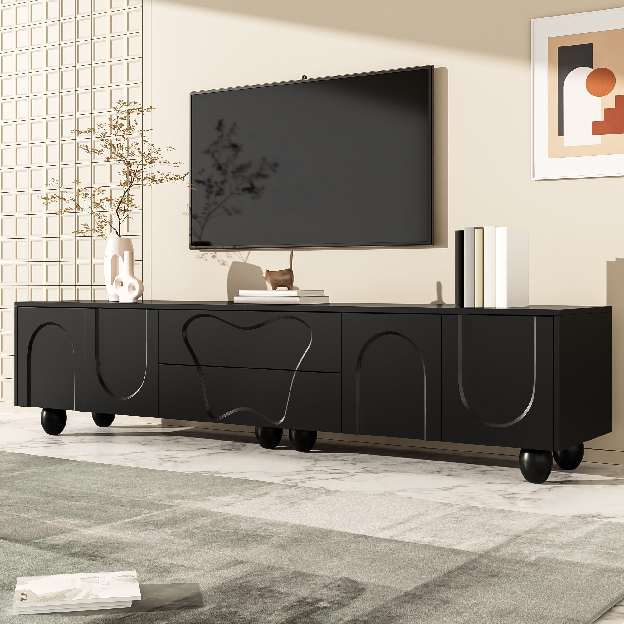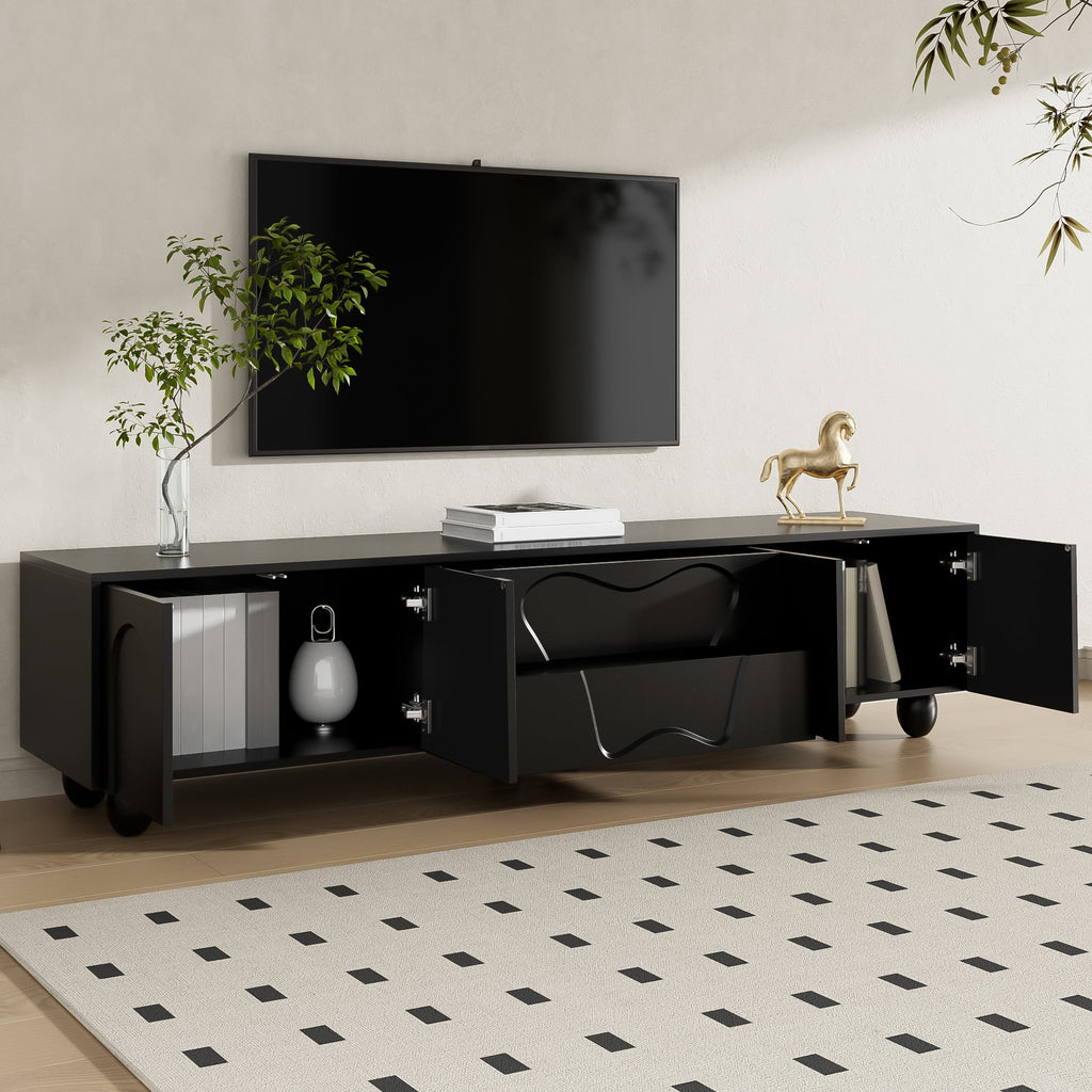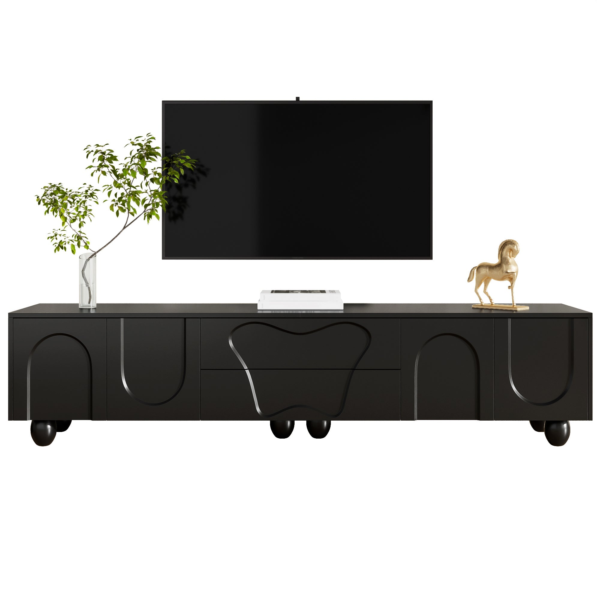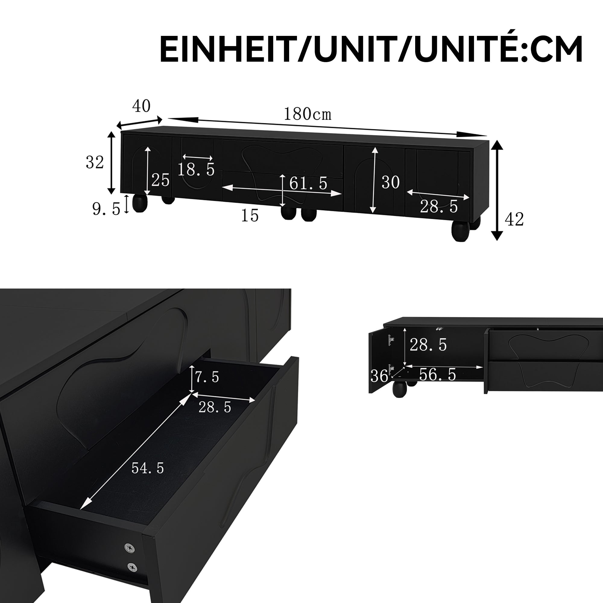 TV Cabinet, 180cm Minimalist Elegant Storage, Black Wooden