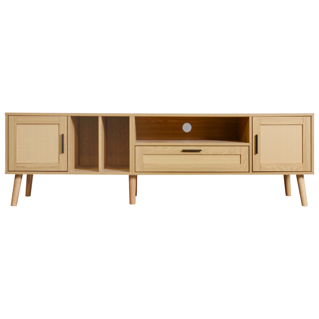TV Cabinet, 180cm Rattan with 2 Doors & 1 Drawer, Solid Wood
