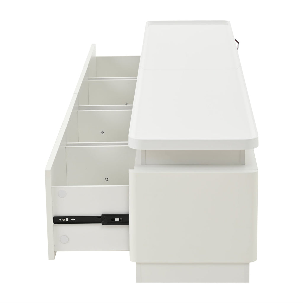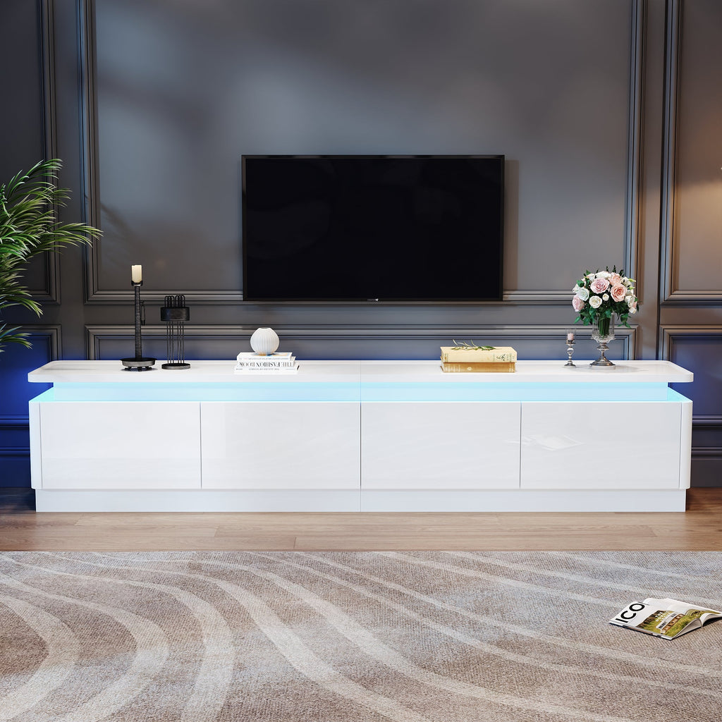 TV Cabinet, 180x34x40cm, 4 Drawers, LED, High-Gloss, for 80-inch TVs, White