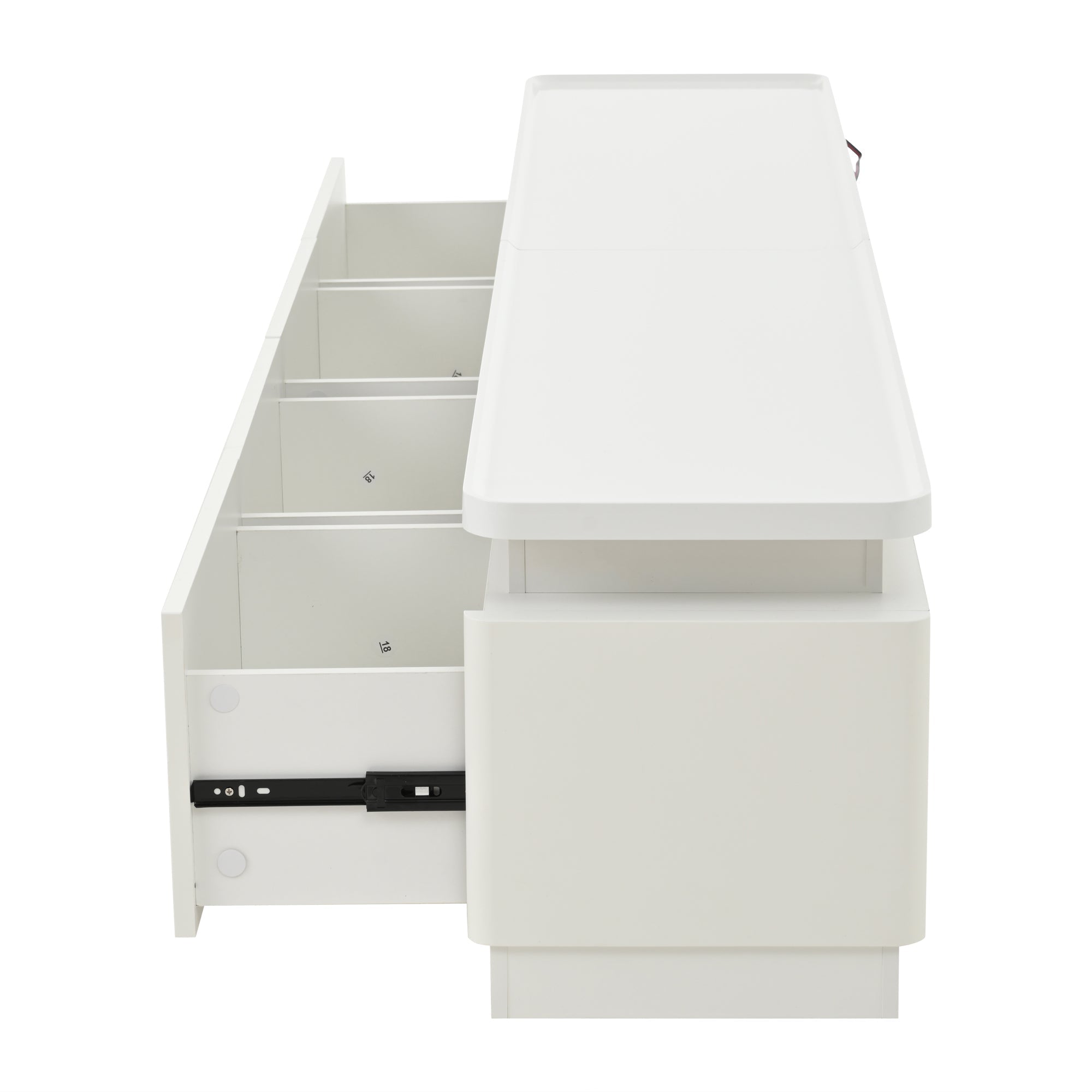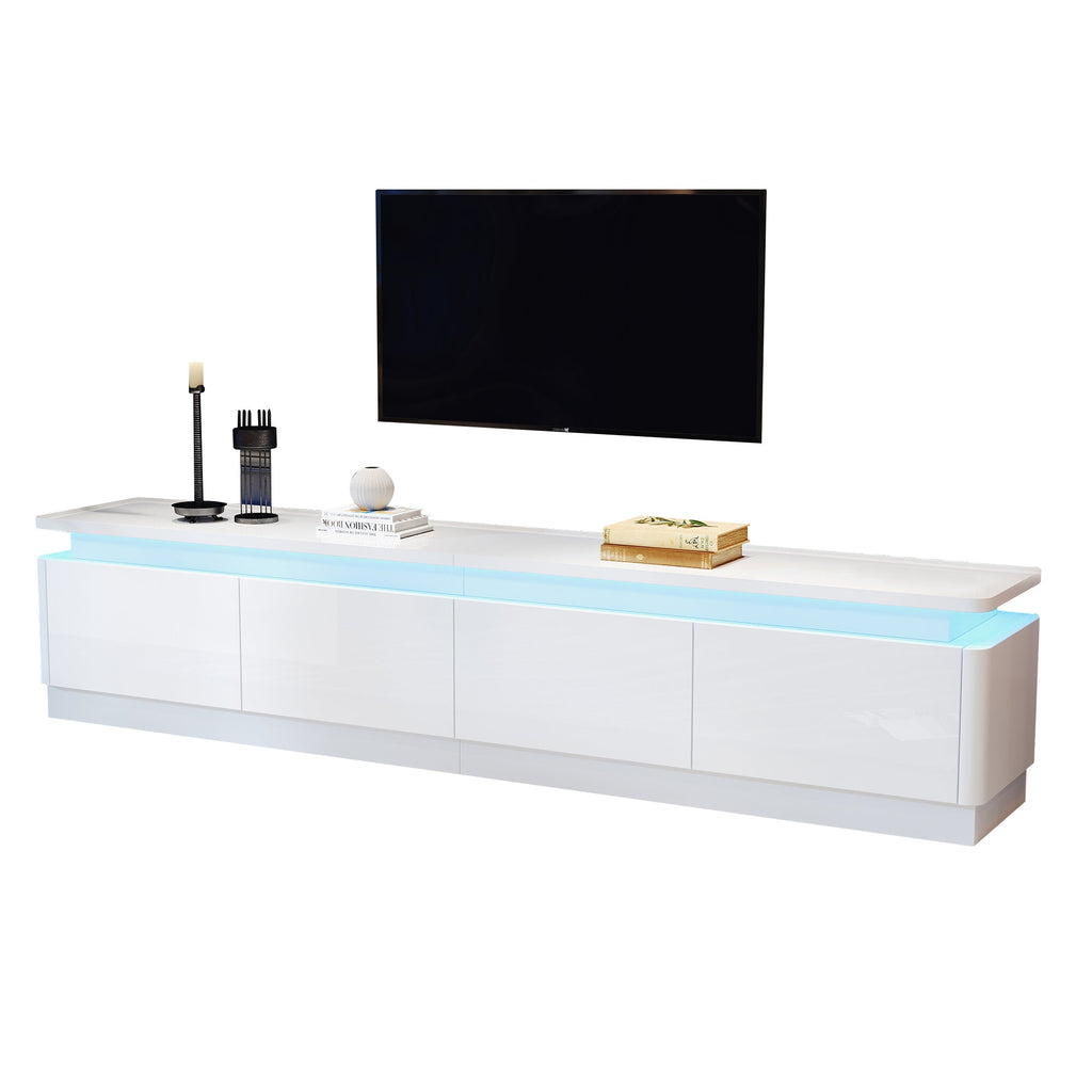 Selling Points: LED, High Gloss, 4 Drawers, Large Table, Curved Edge Design, Suitable for TVs up to 75 inches.