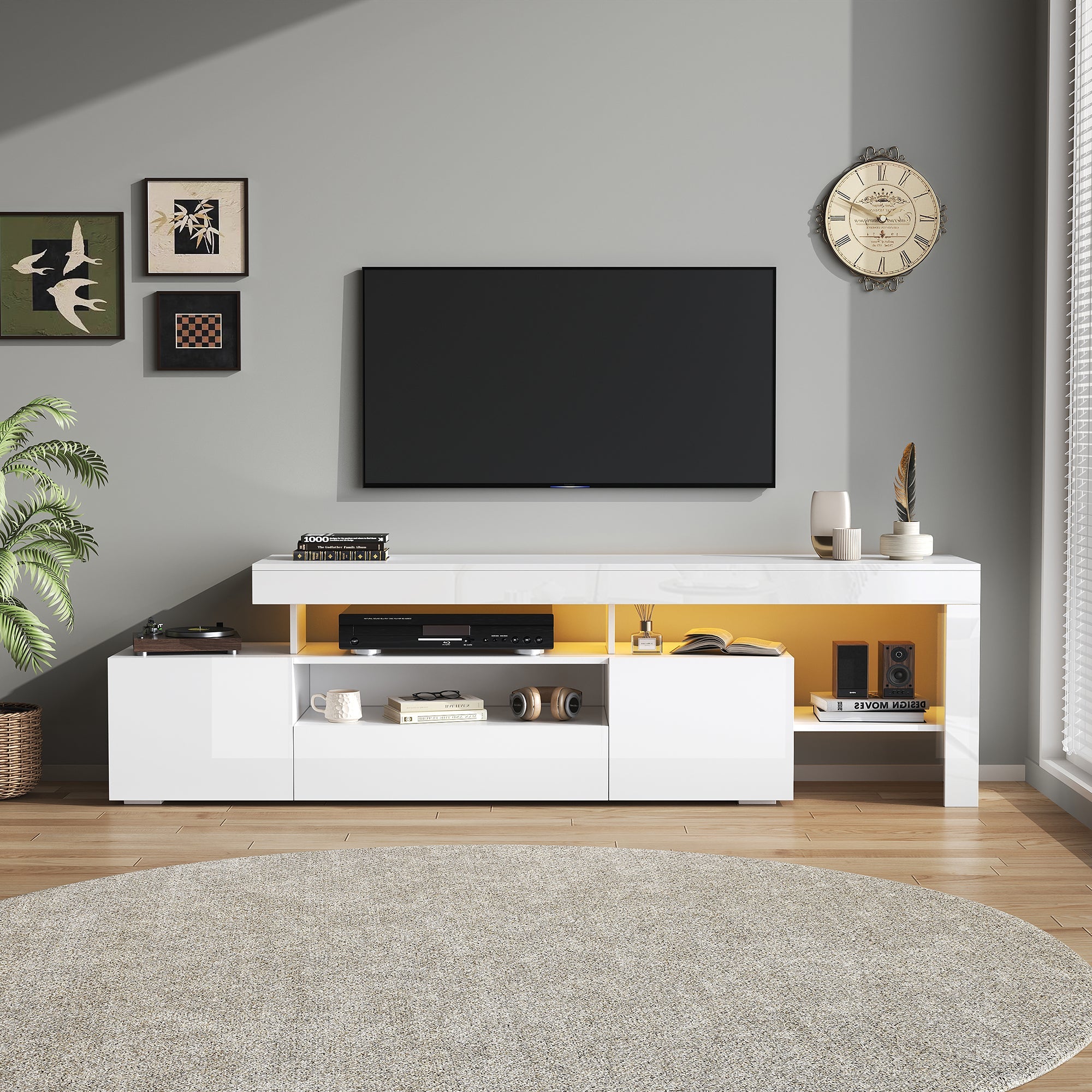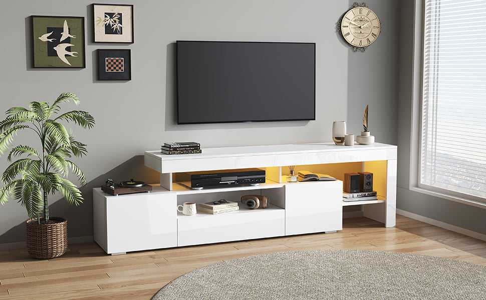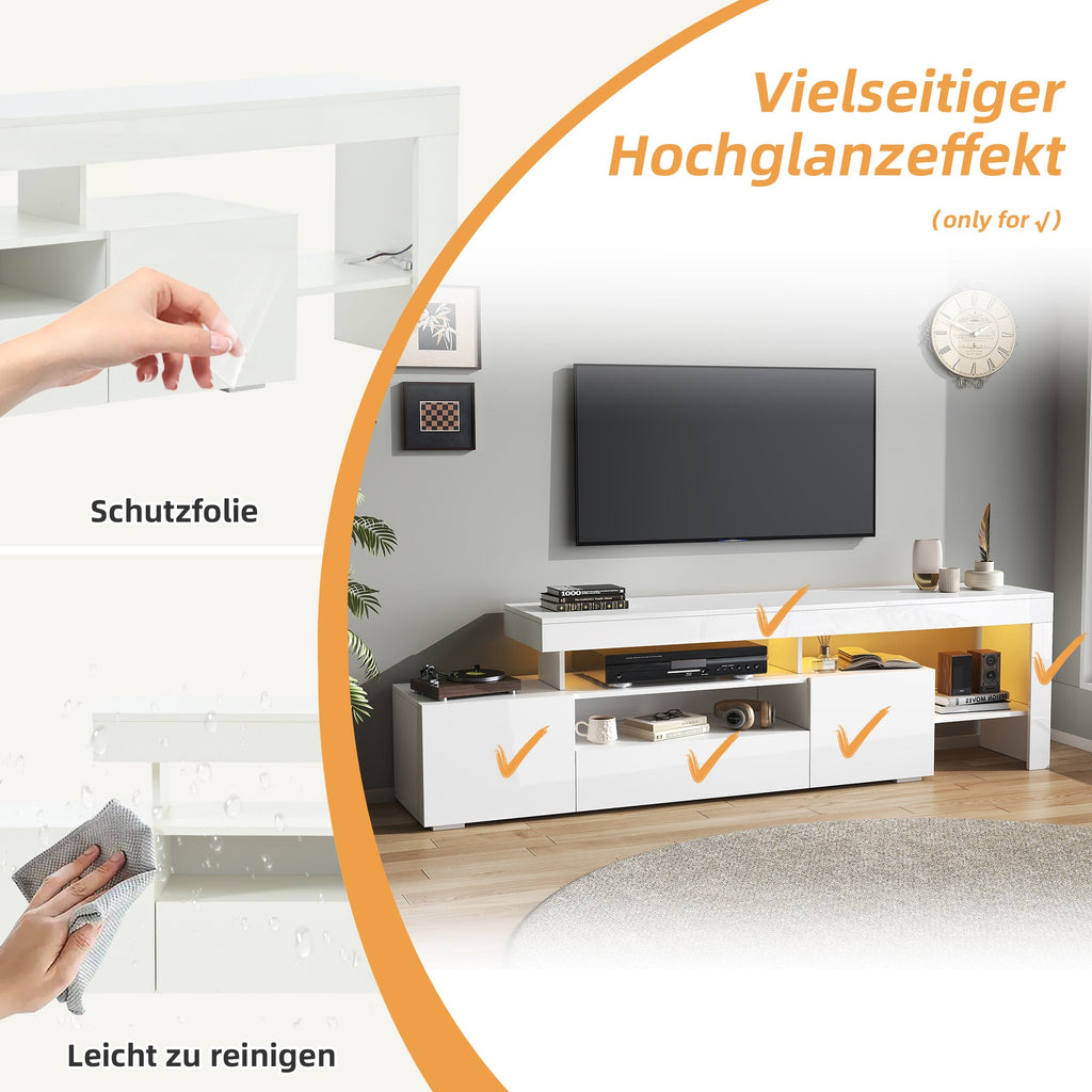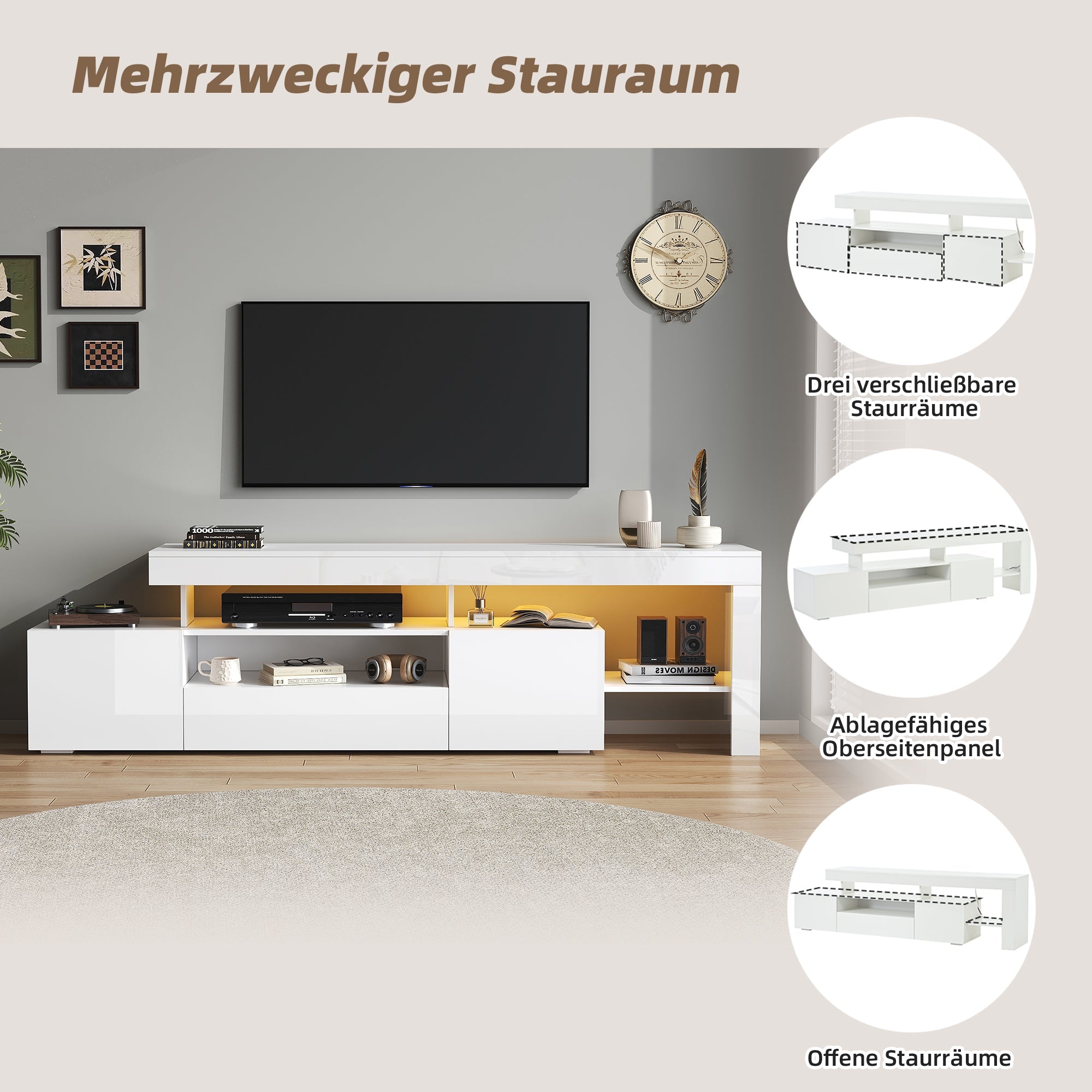 Selling points: High gloss, 3 cabinets, LED lighting, suitable for 85-inch TVs, open storage space.