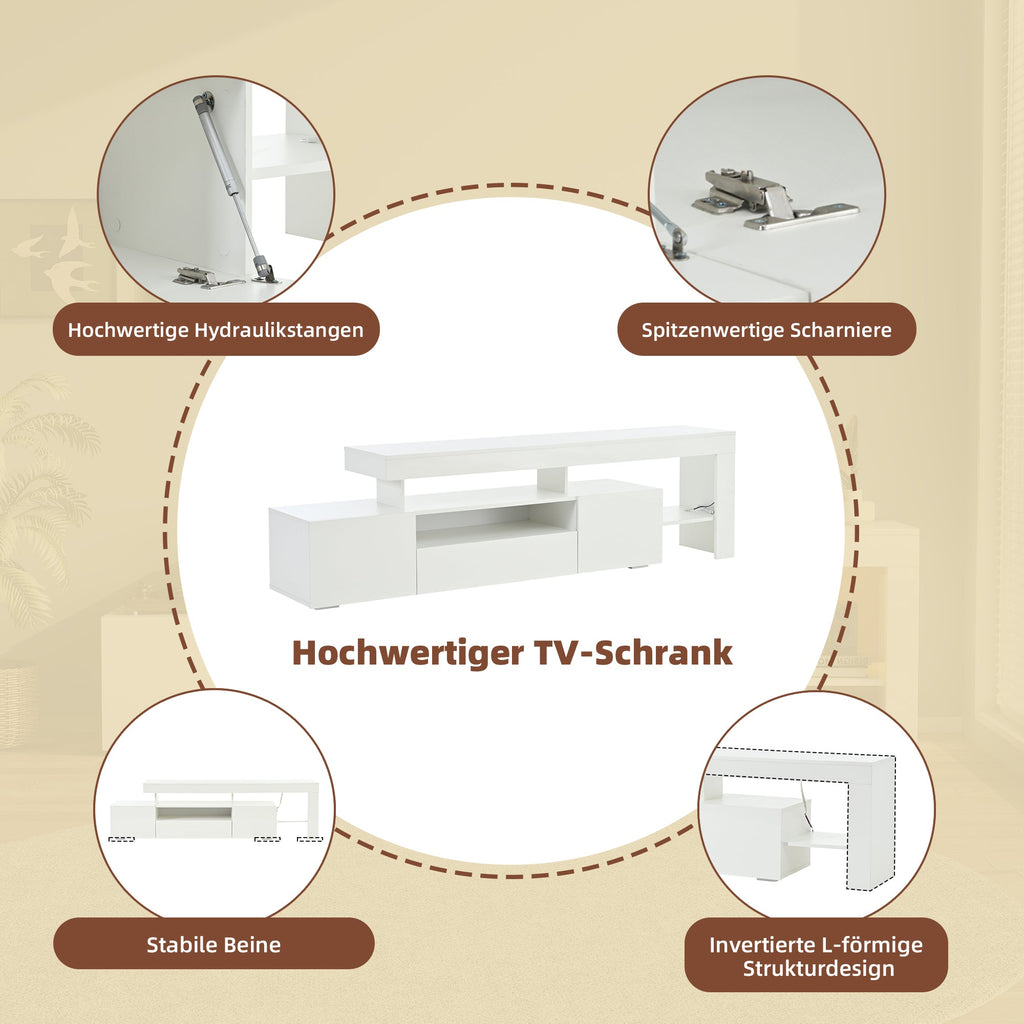 TV Cabinet, 192x37x53cm with 3 Cabinets, LED High-Gloss, White