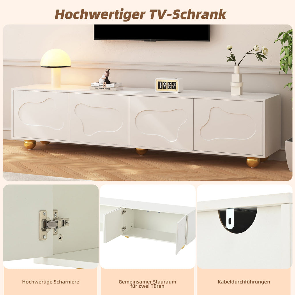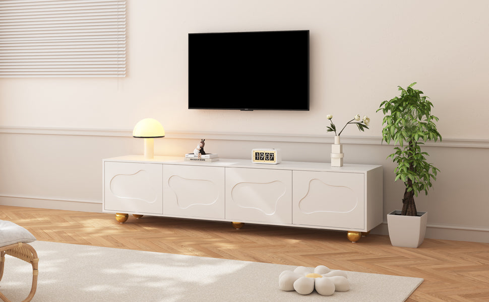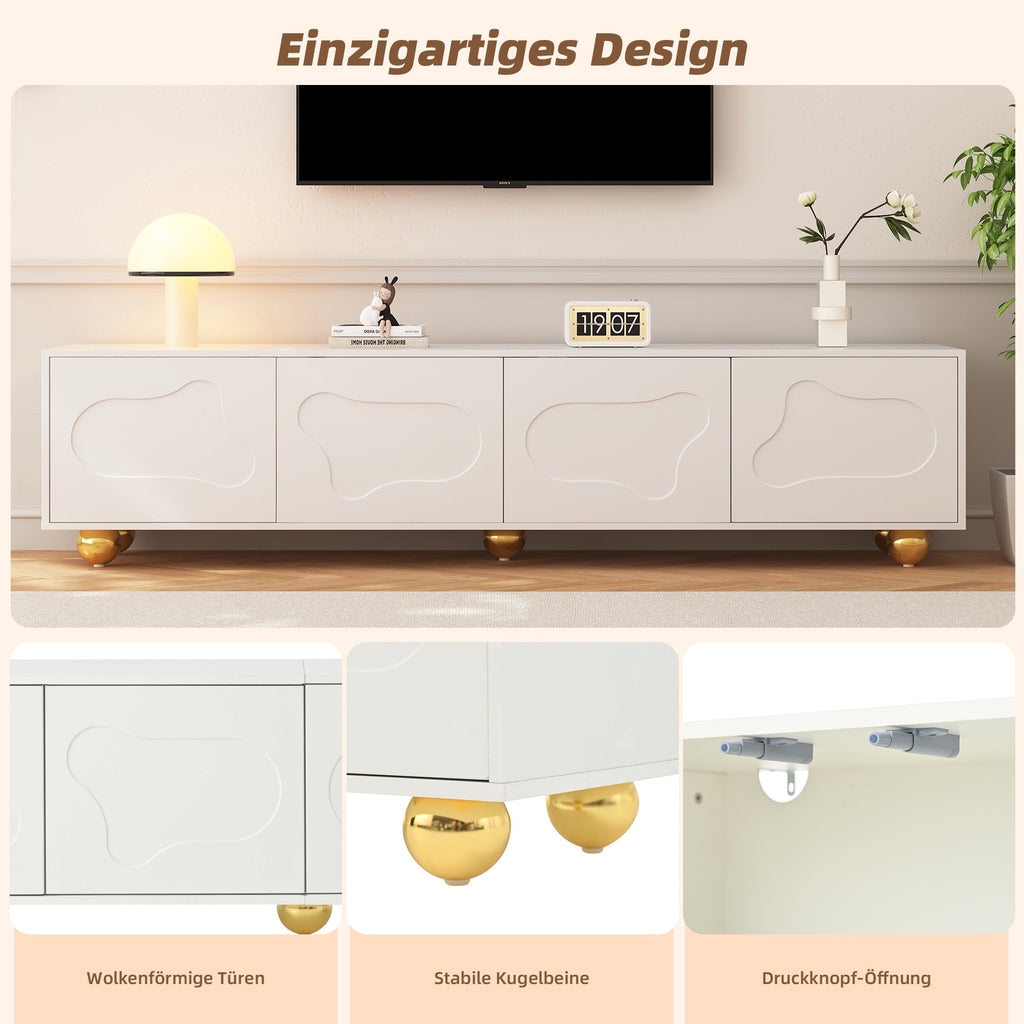TV Cabinet, Cloud-Shaped Lowboard with 2 Cabinets, 75-inch