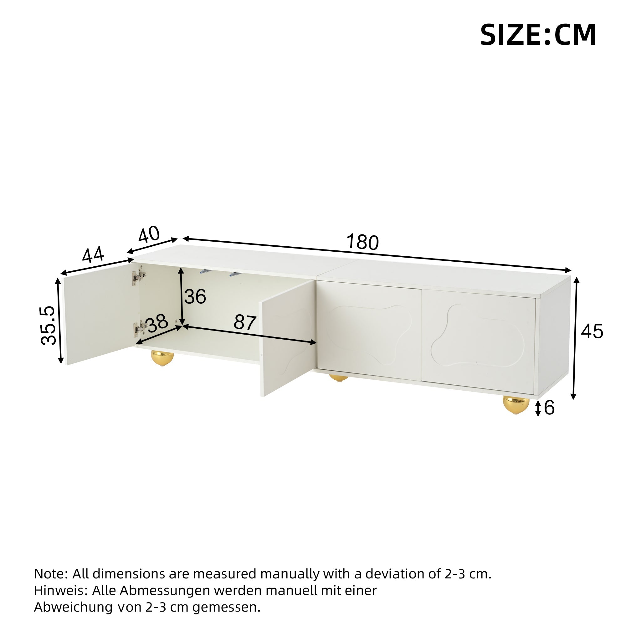 This TV cabinet measures 180 x 40 x 45 cm and features a charming cloud-shaped design. It includes two cabinets with a total of four doors, offering ample storage.