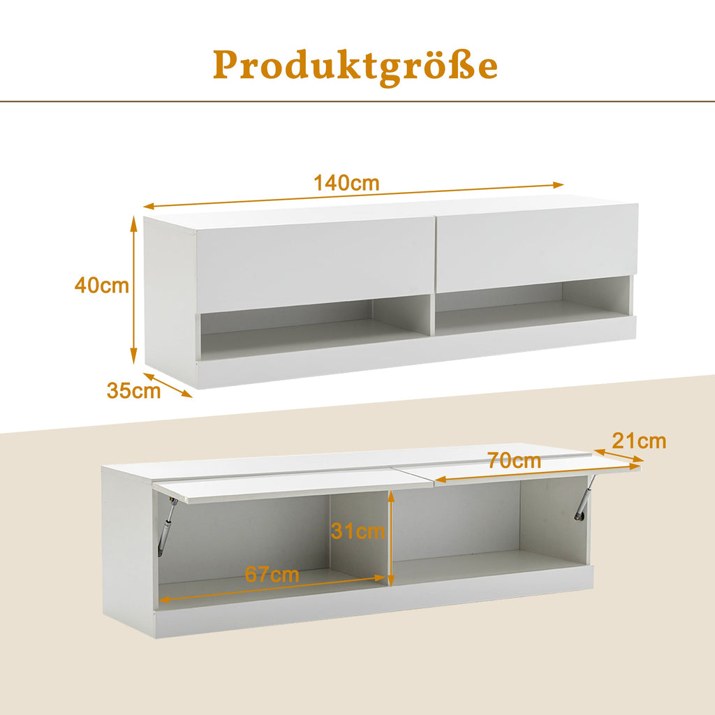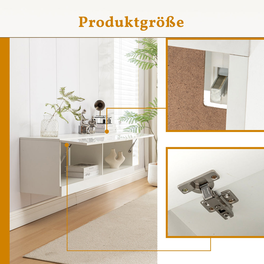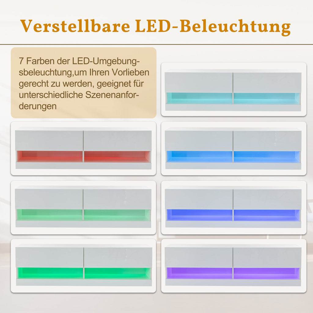 TV Cabinet, Lighting, 7 Colors Adjustable, Hanging, 140x35x40cm, White