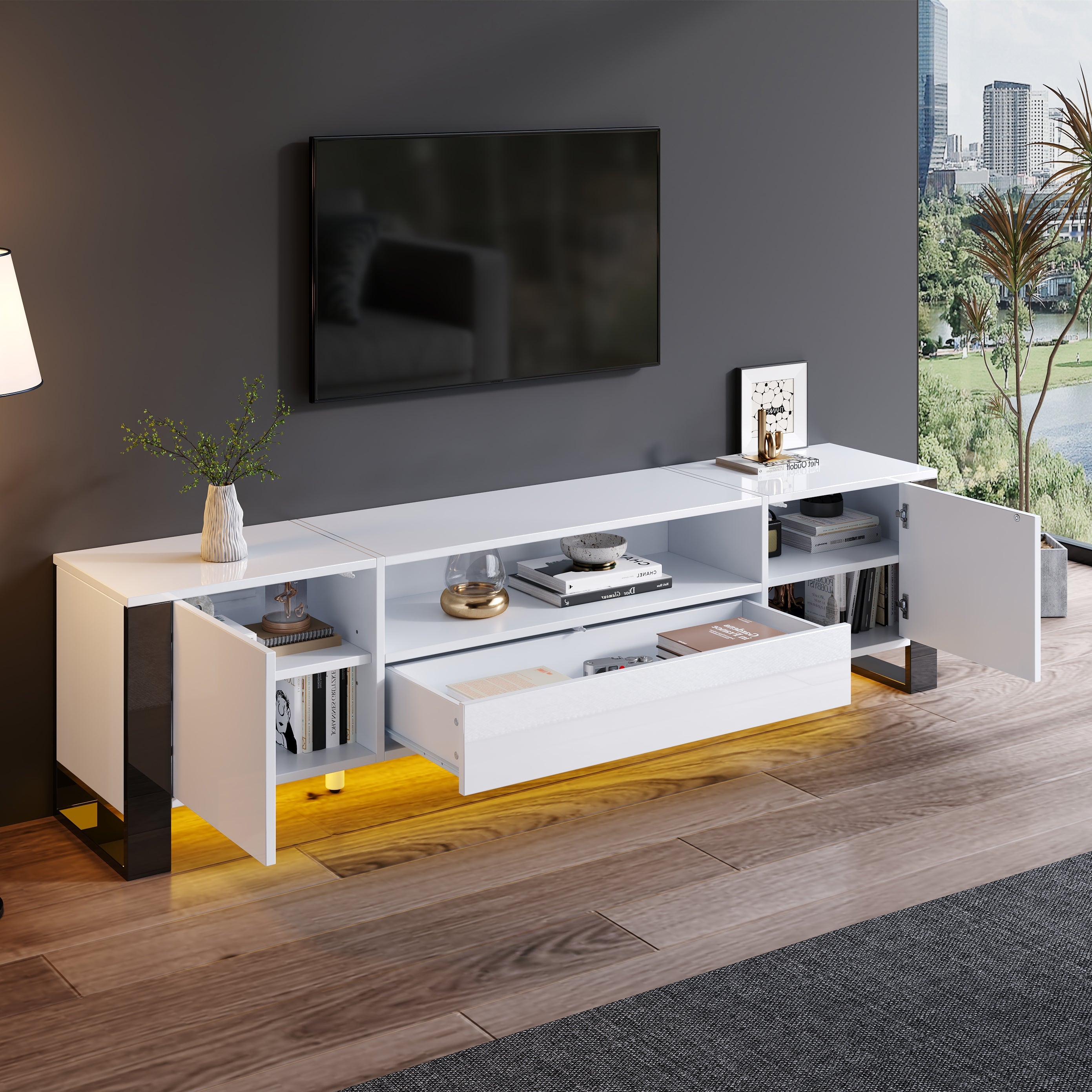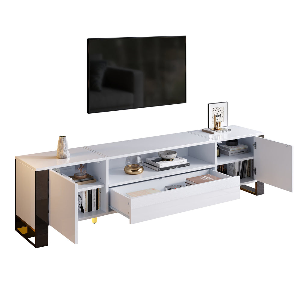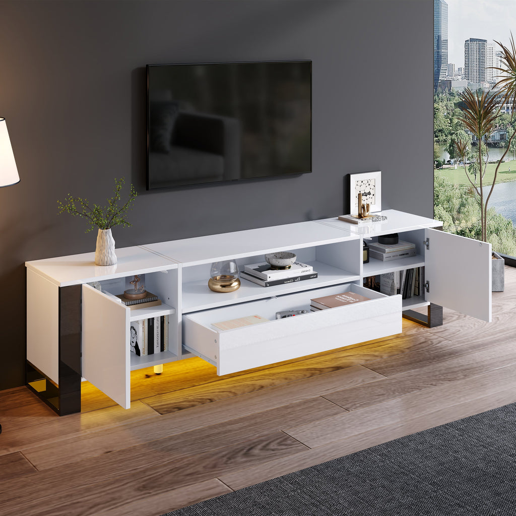 TV Cabinet, Modern High-Gloss with LED & Storage, White