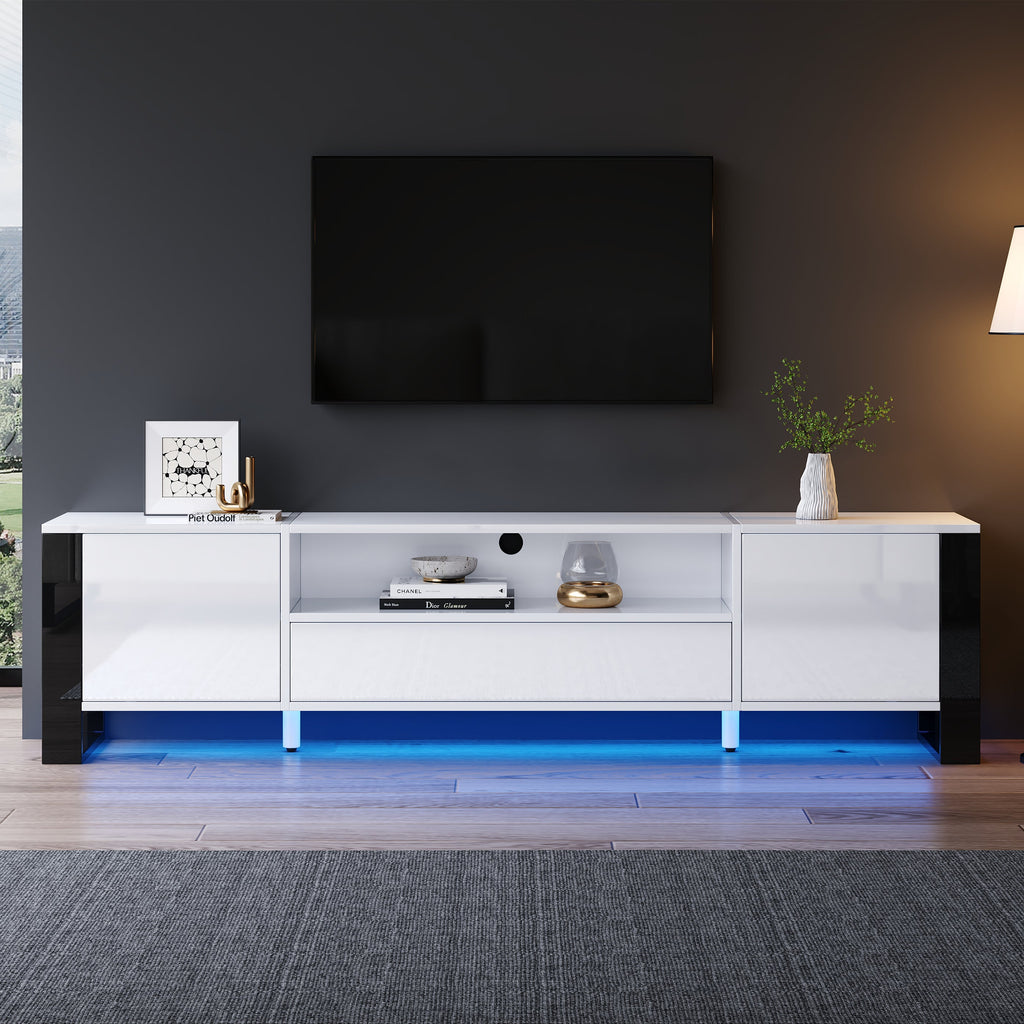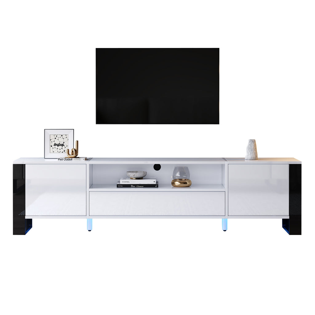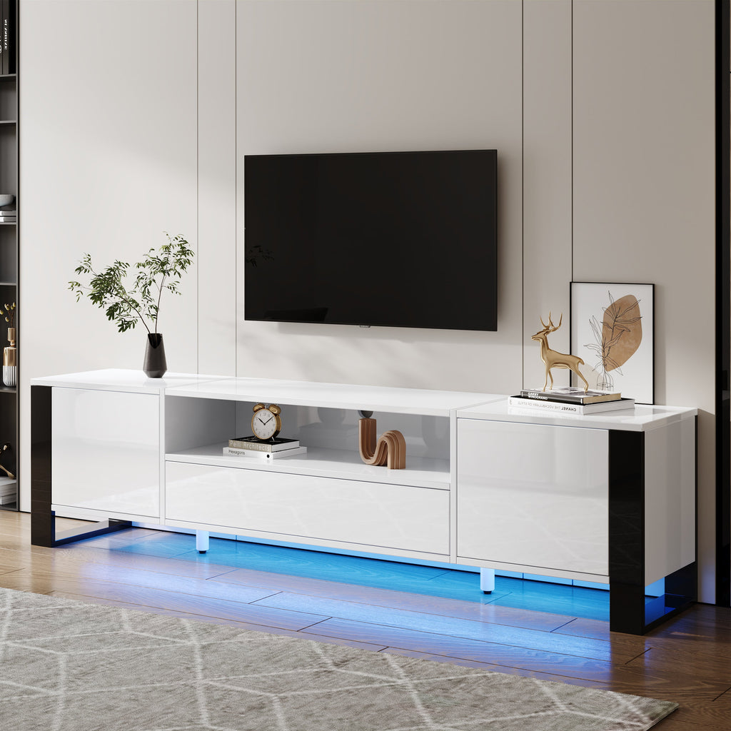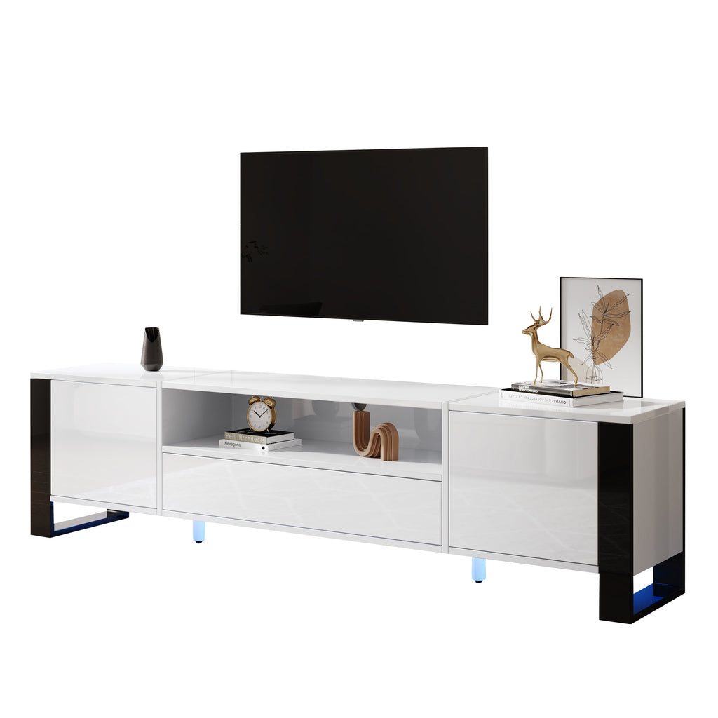 TV Cabinet, Modern High-Gloss with LED & Storage, White