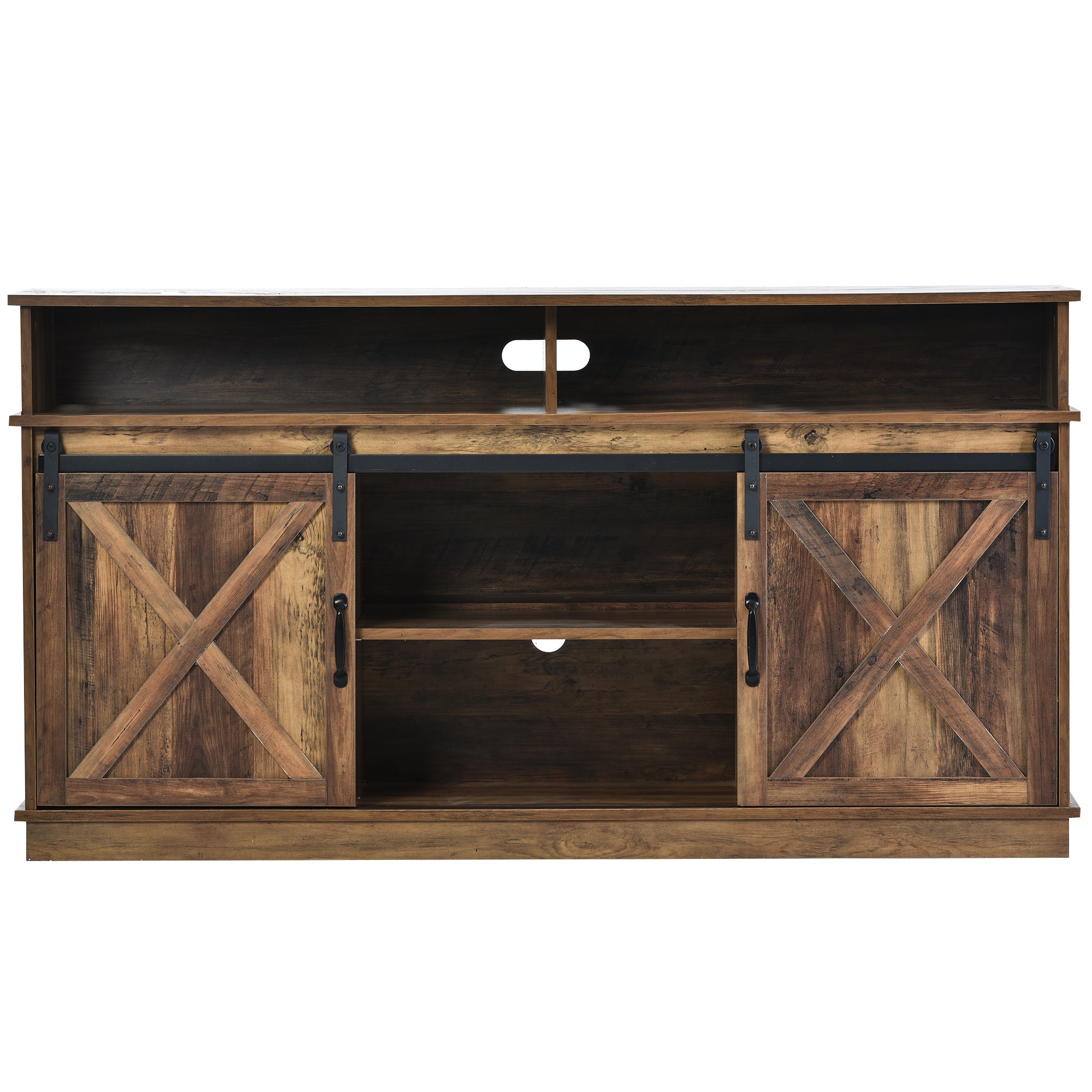 The sliding barn door design not only allows you to adjust the door position to your needs but also adds an aesthetic touch. This TV stand features a clear, beautiful wood grain that complements any bedroom or living room decor, whether your style is industrial, modern, or traditional.