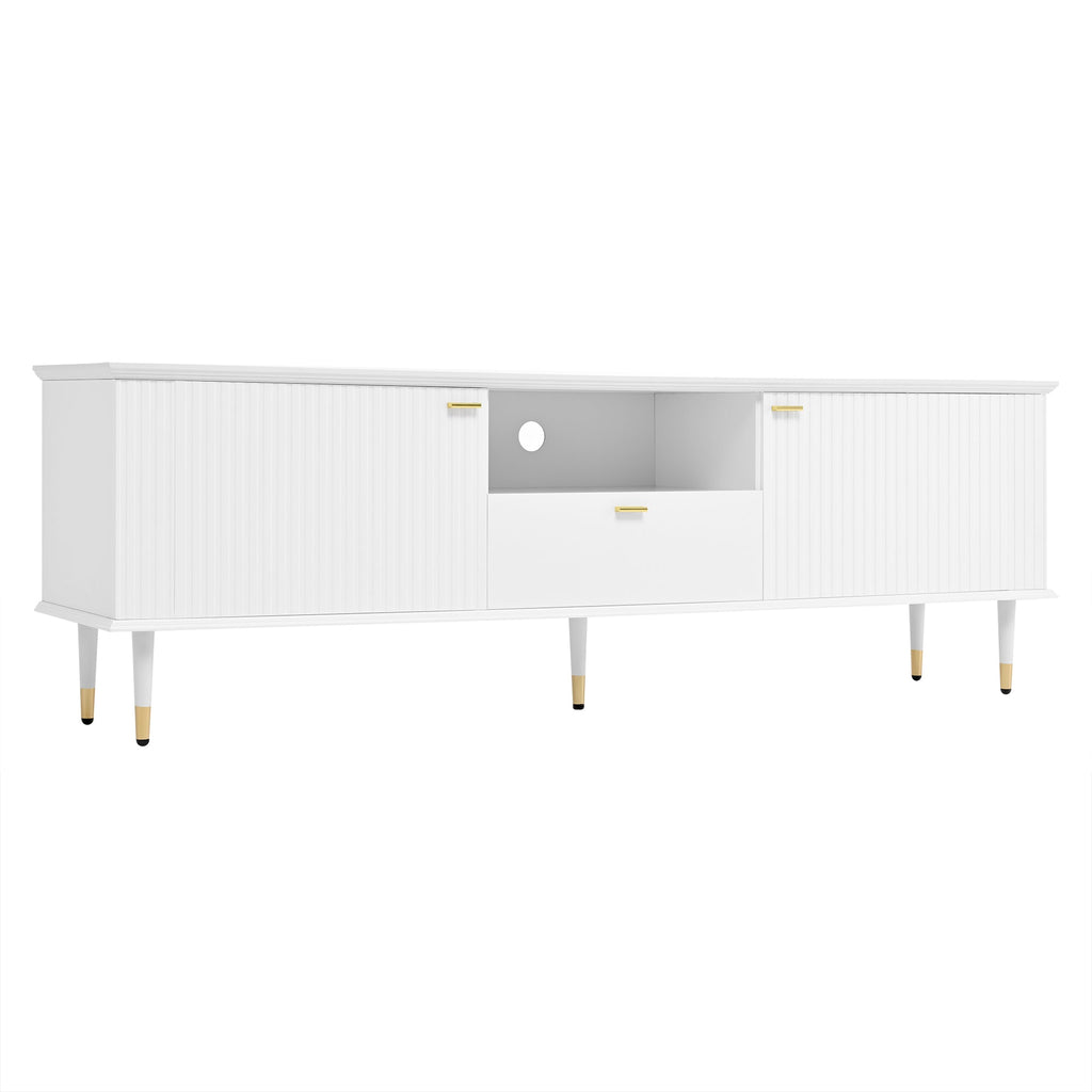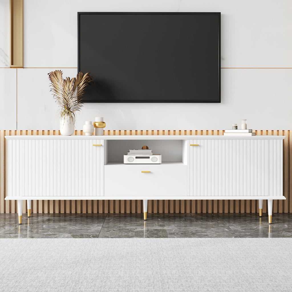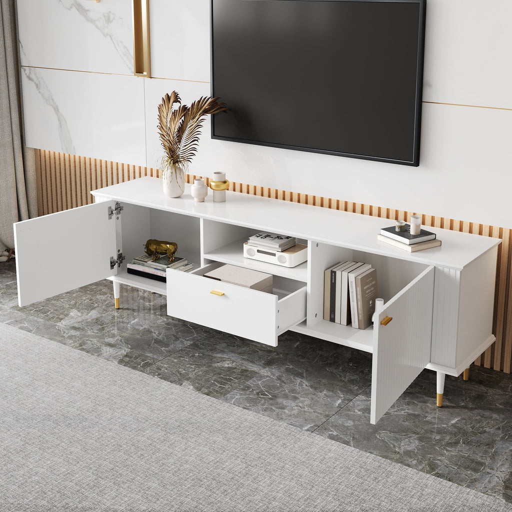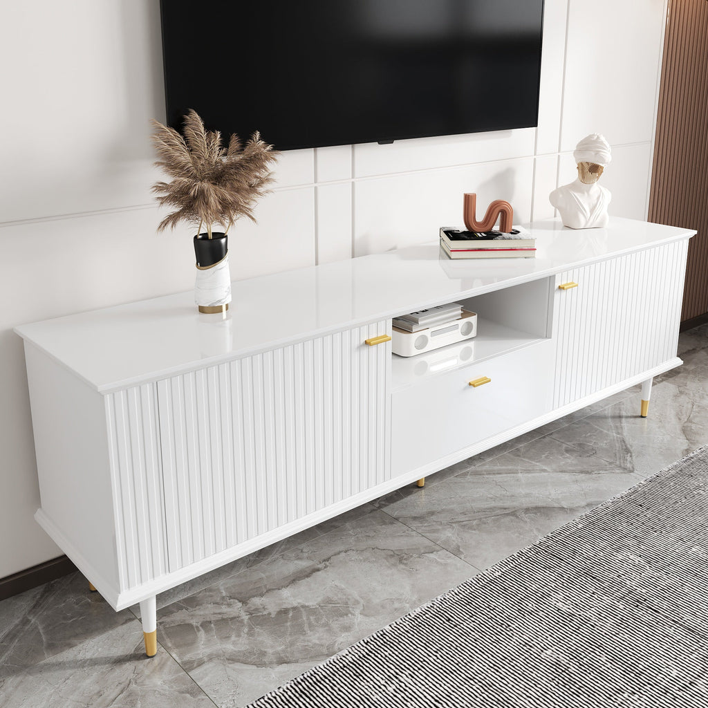 TV Cabinet with Open Compartments, Drawers, Soft-Close Hinges, Lacquered Textured Surface
