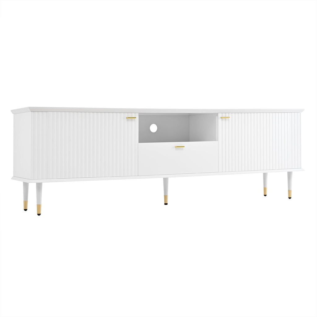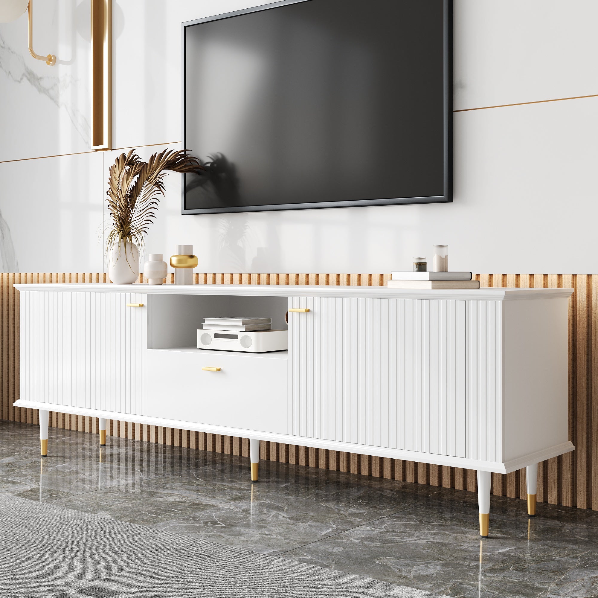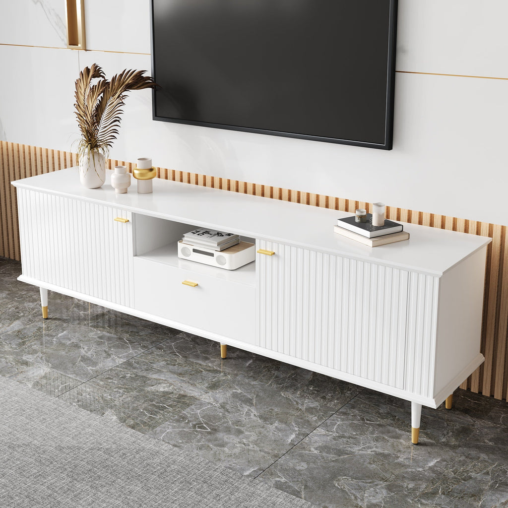 TV Cabinet with Open Compartments, Drawers, Soft-Close Hinges, Lacquered Textured Surface