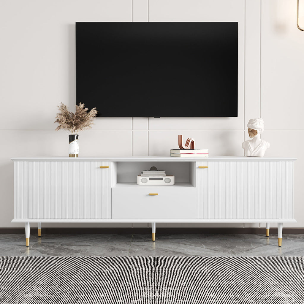 With two doors, an open compartment, and a drawer, this stand offers versatile storage space. It is perfect for organizing TV accessories, books, or decorative items, meeting various needs in your living area.