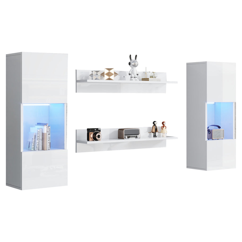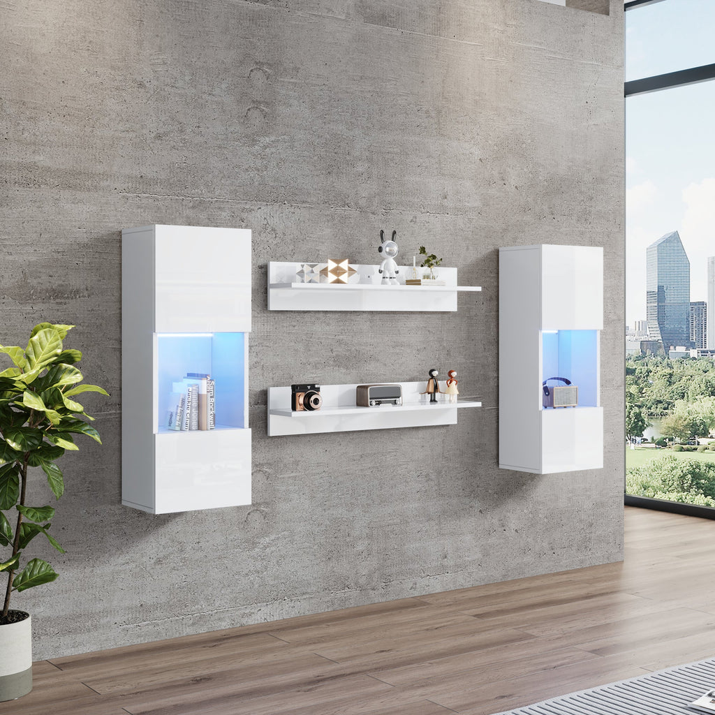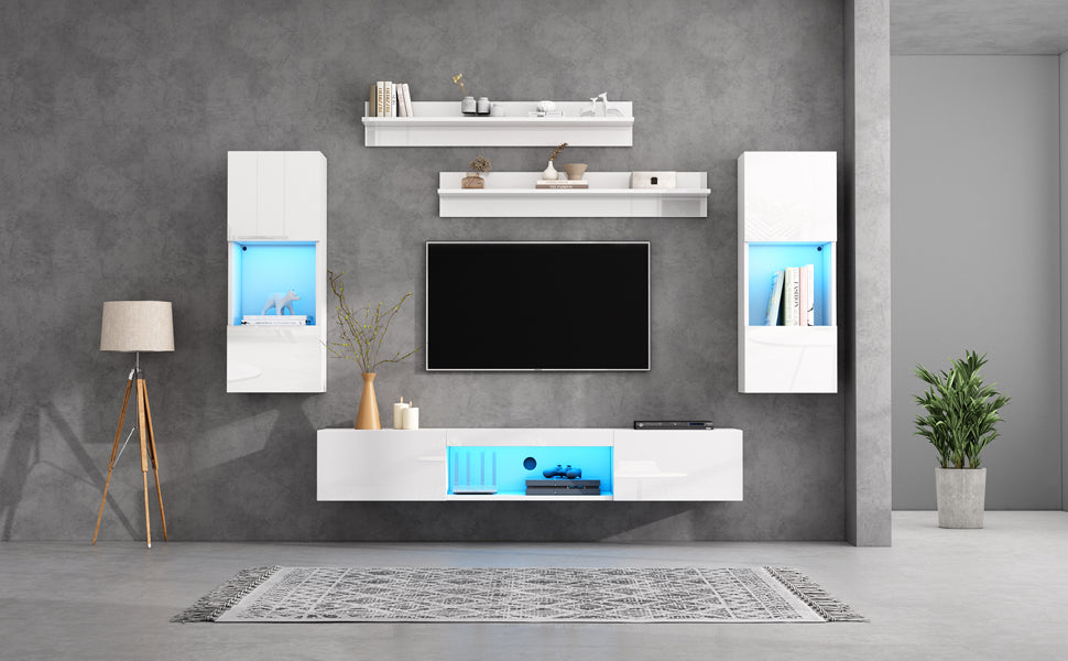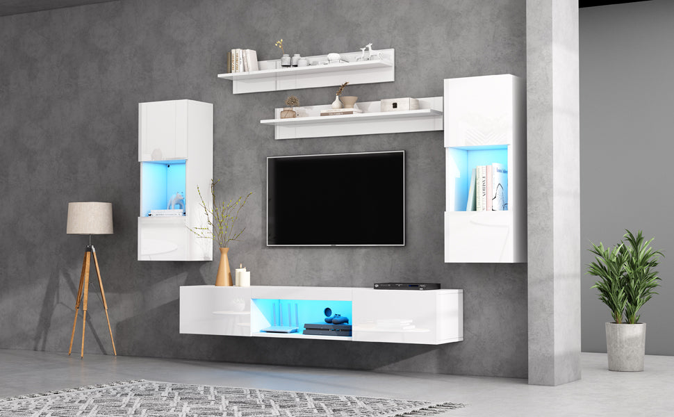 TV Wall Unit Set, 5-Piece with LED Lighting & Storage for 70-inch TVs, High-Gloss White