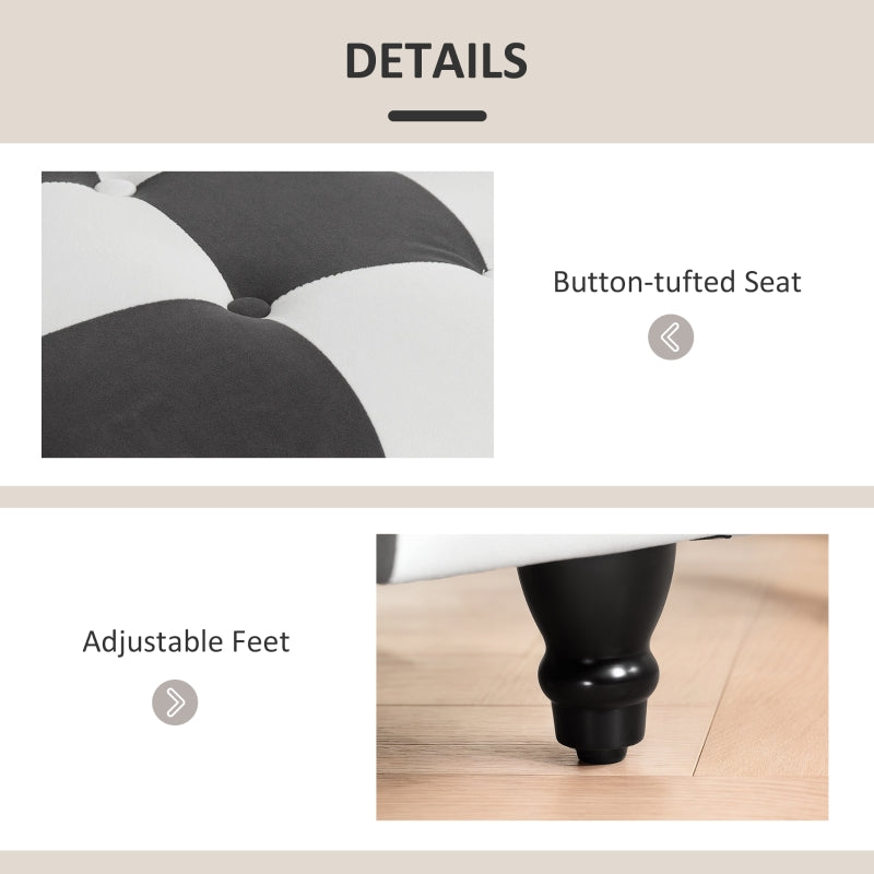 Velvet Storage Ottoman, 114 x 47 x 47cm Button-tufted Footstool Chest, Dark Grey and White